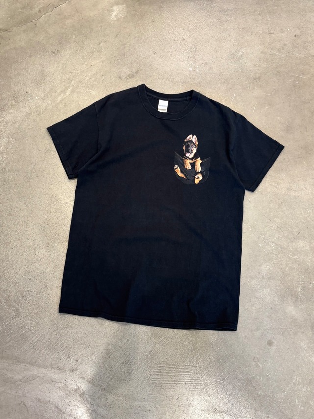 【こちらは北口店の入荷商品となります】 ※通販をご利用の際はWEB SHOPのHOMEトップにある《通販の注意事項》を必ずお読みください 【商品詳細】 ”GERMAN SHEPHERD“ Animal Tee ¥5900 tax in ジャーマン・シェパードが胸ポケットに入った構図の珍しいタイプのアニマル物 大きめにプリントされたワンポイントが可愛らしい1着 〈素材〉 100%コットン 〈ダメージ等〉 特になし サイズ表記:M 実寸 肩幅:47.5cm 身幅:50.5cm 着丈:70cm 袖丈:17cm