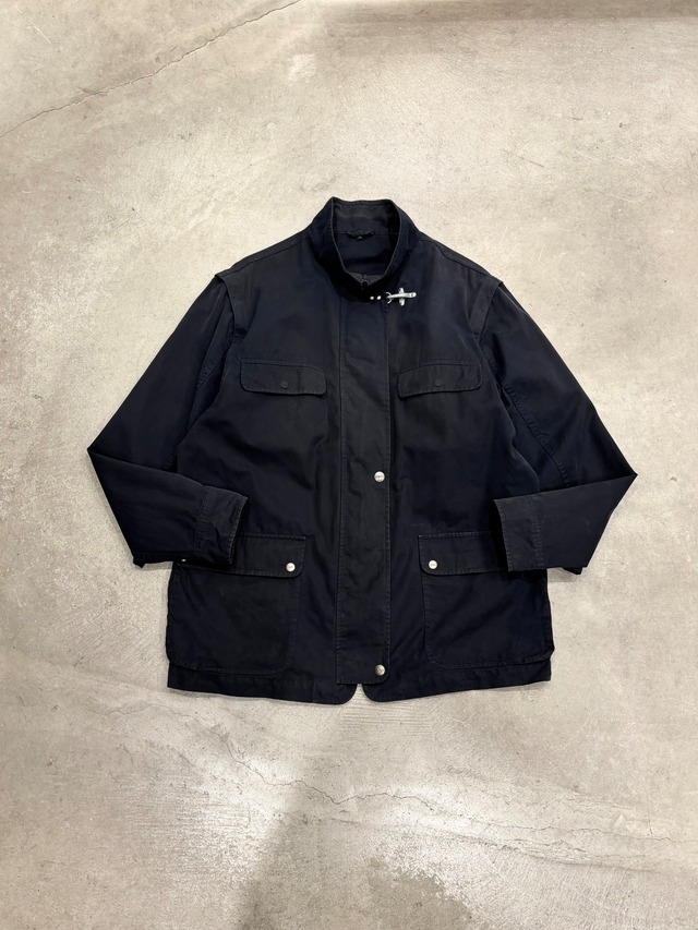 【こちらは北口店の入荷商品となります】 ※通販をご利用の際はWEB SHOPのHOMEトップにある《通販の注意事項》を必ずお読みください 【商品詳細】 ”Fay“ Detachable Sleeve Fireman Hook Jacket ¥13900 tax in 消防士のユニフォームにインスパイアされたイタリアのブランド、フェイのファイヤーマンフックジャケット 袖が取り外し可能でベストとしても使える1着 首元のファイヤーマンフックがポイントです 表記がないですがメインマテリアルはコットンかと思われます 気になった方は是非 〈素材〉 表記なし 〈ダメージ等〉 左袖に色抜け 襟裏、バック首元に色ムラ サイズ表記:XL 実寸 肩幅:52cm 身幅:63.5cm 着丈:77.5cm 袖丈:64.5cm