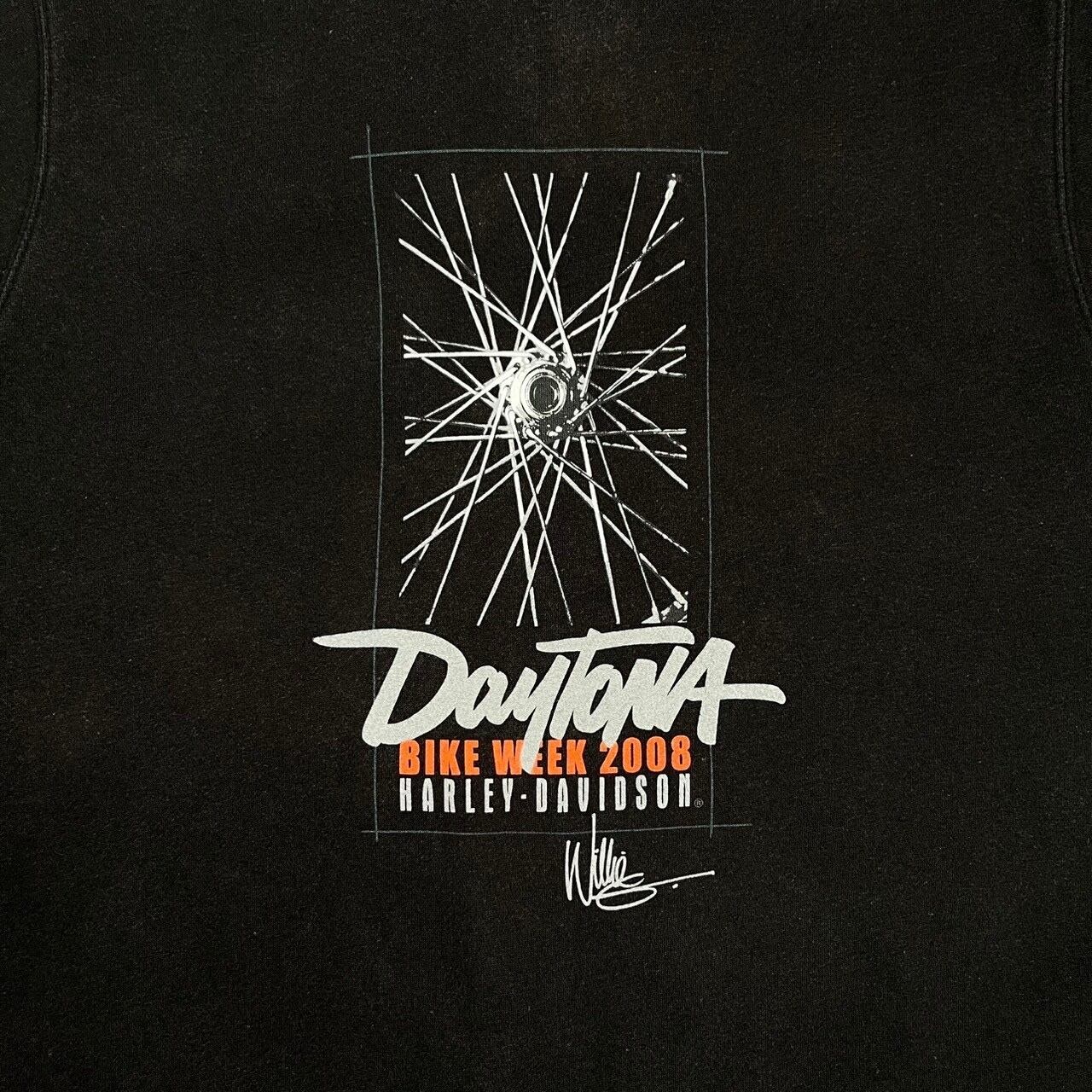 こちらは2008年のイベント時のアイテム、お馴染みのバー&シールドではなく、ホイールのスポークが描かれたのロゴが同色でプリントされた1着