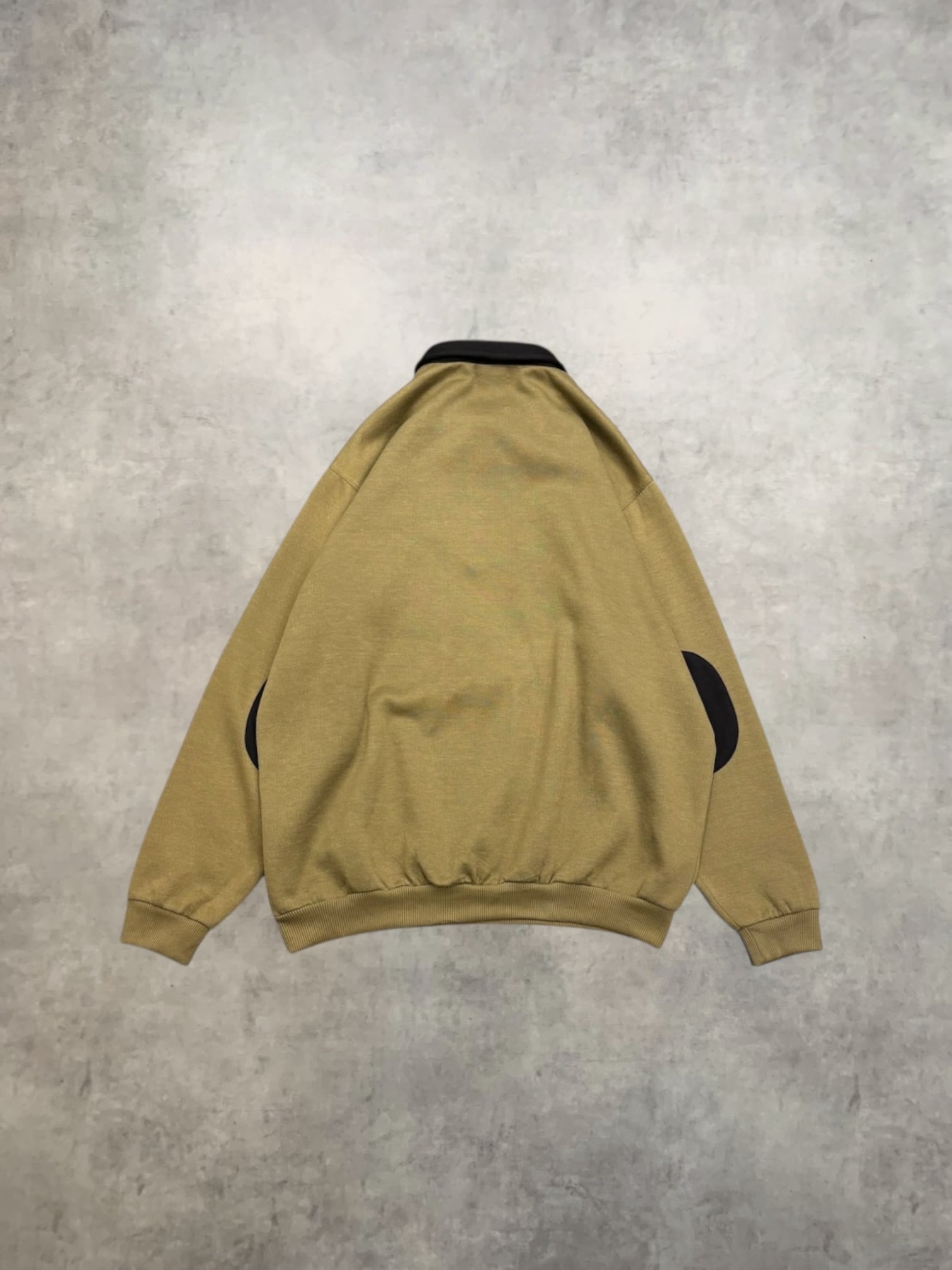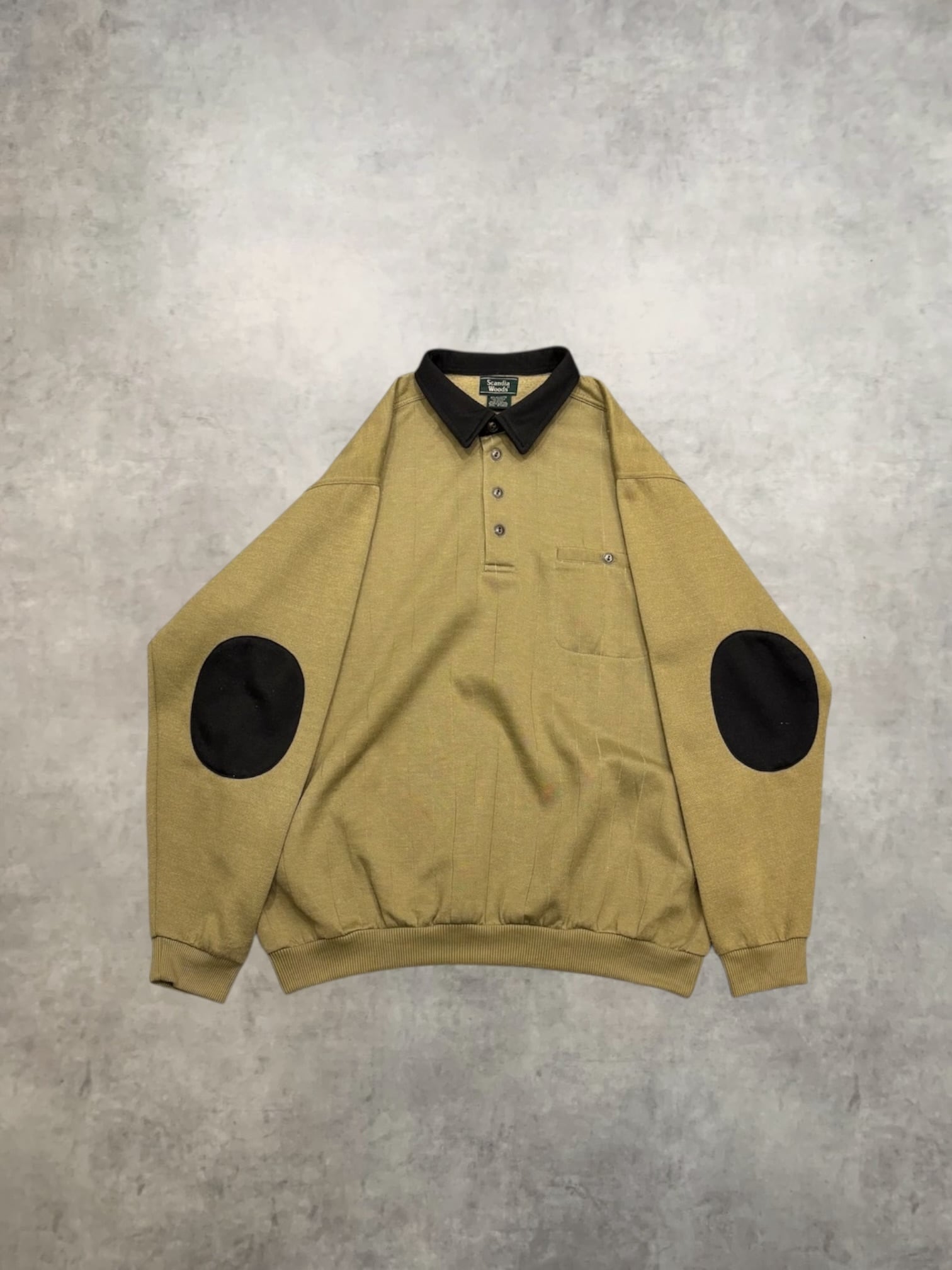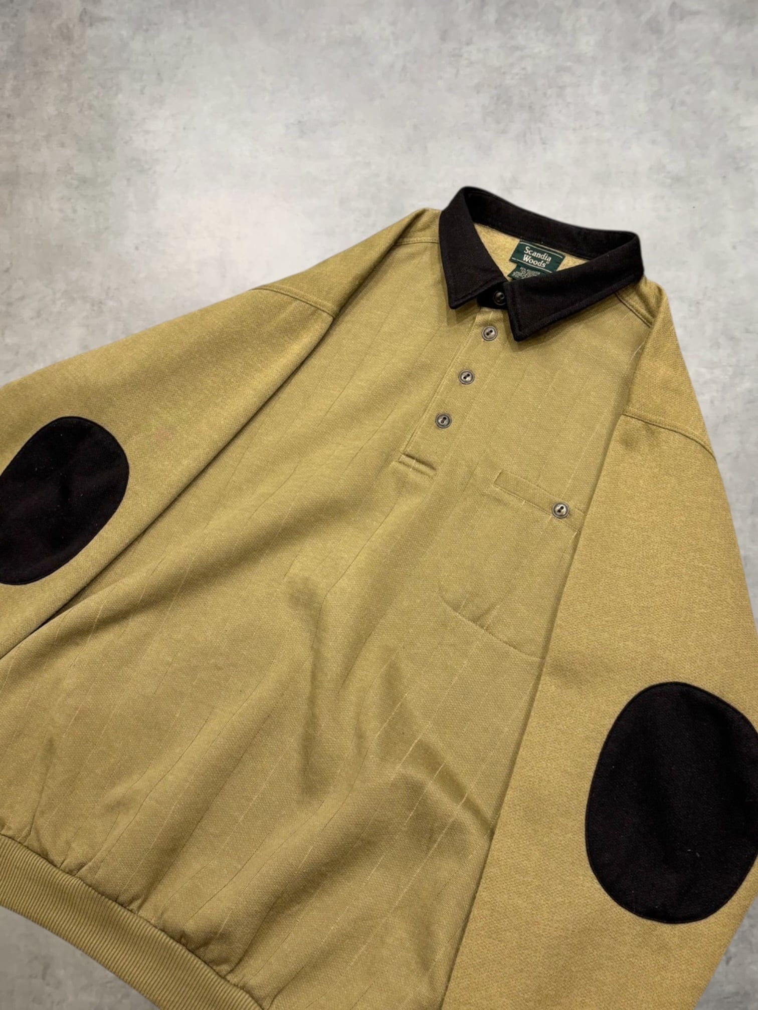 襟付きヘンリーネック、針抜き、エルボーパッチがポイントのスウェット