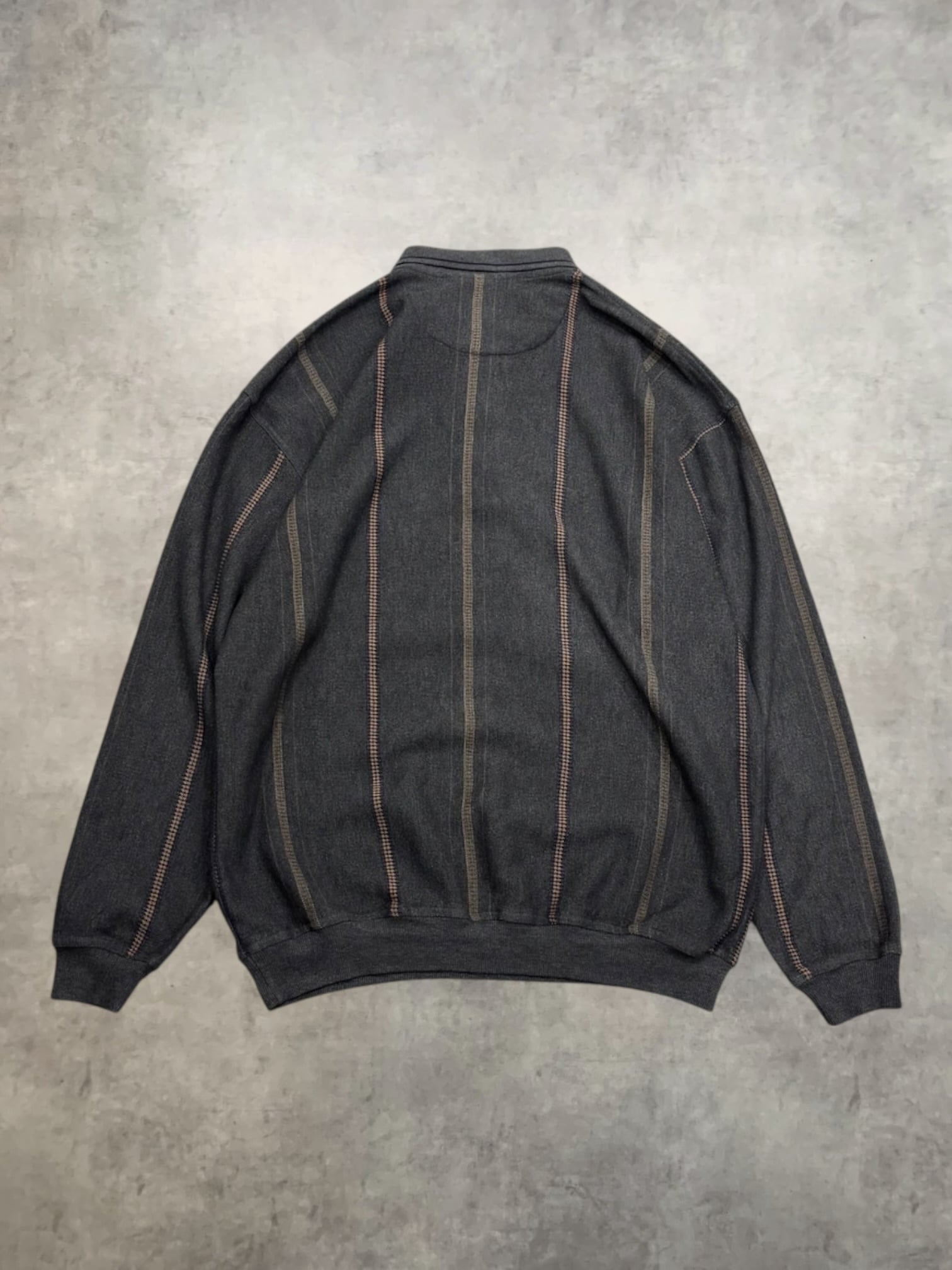 襟付きヘンリーネックのストライプスウェット