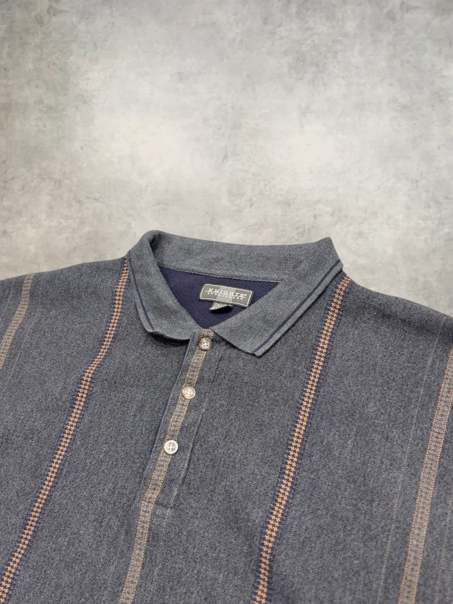 ”KNIGHTS“ Henley Neck with Collar Stripe Sweat Shirt
