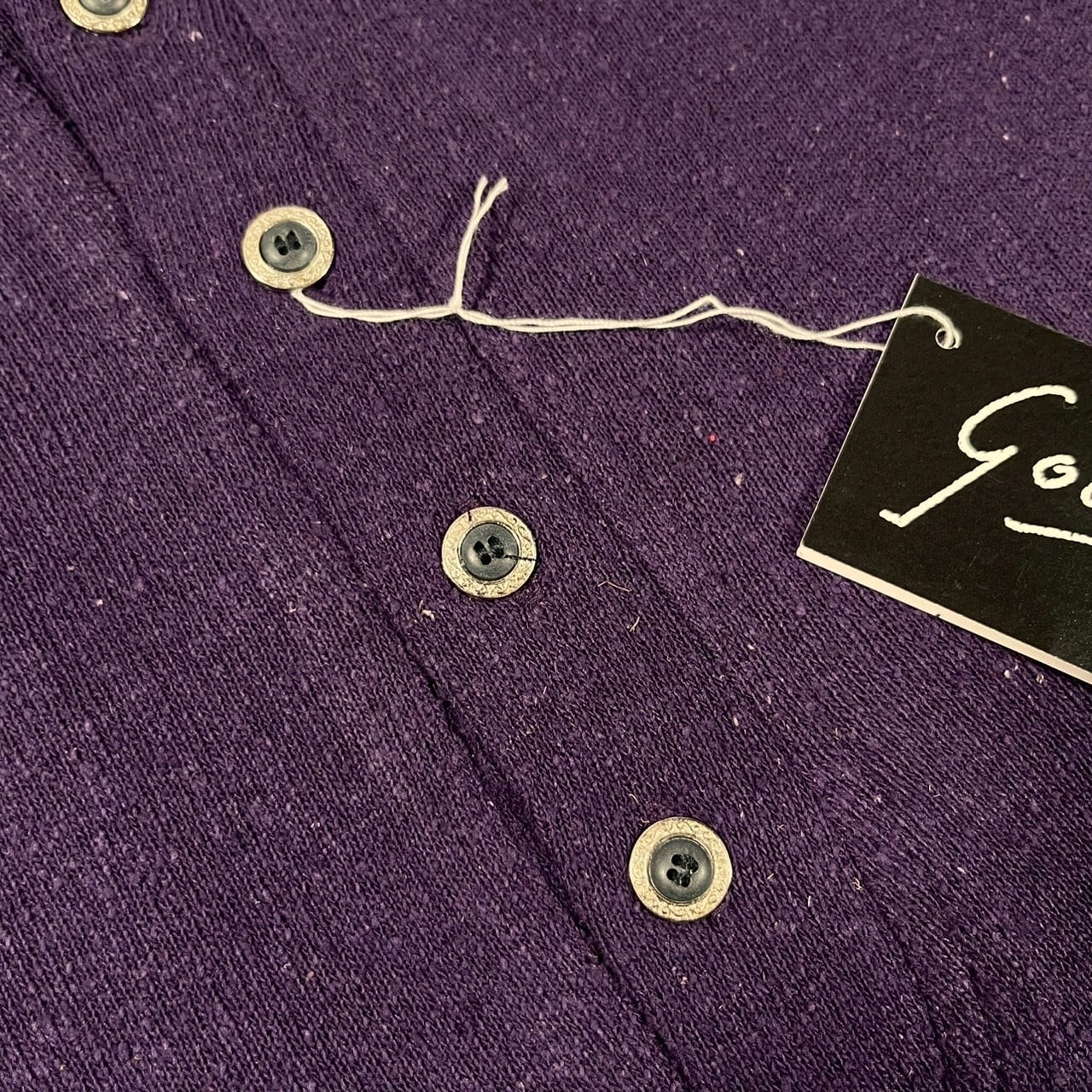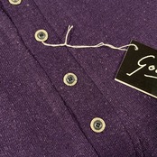シンプルに見えますが生地にネップが混ざっており動きのある生地感になります、装飾ボタンもこだわりを感じます
