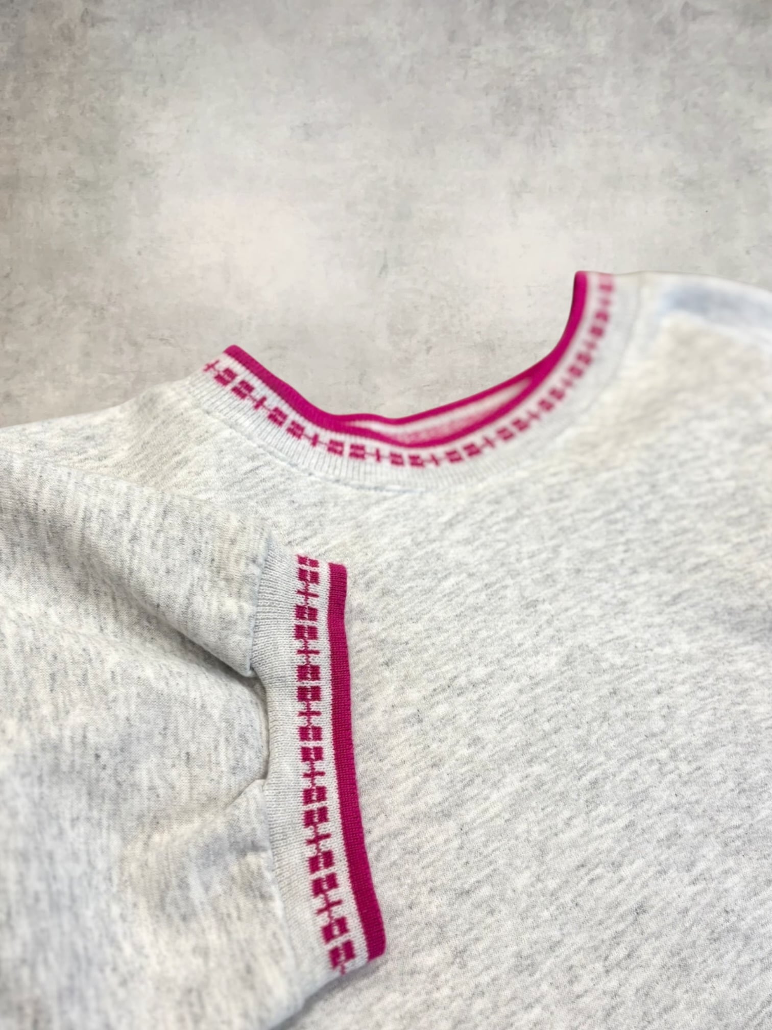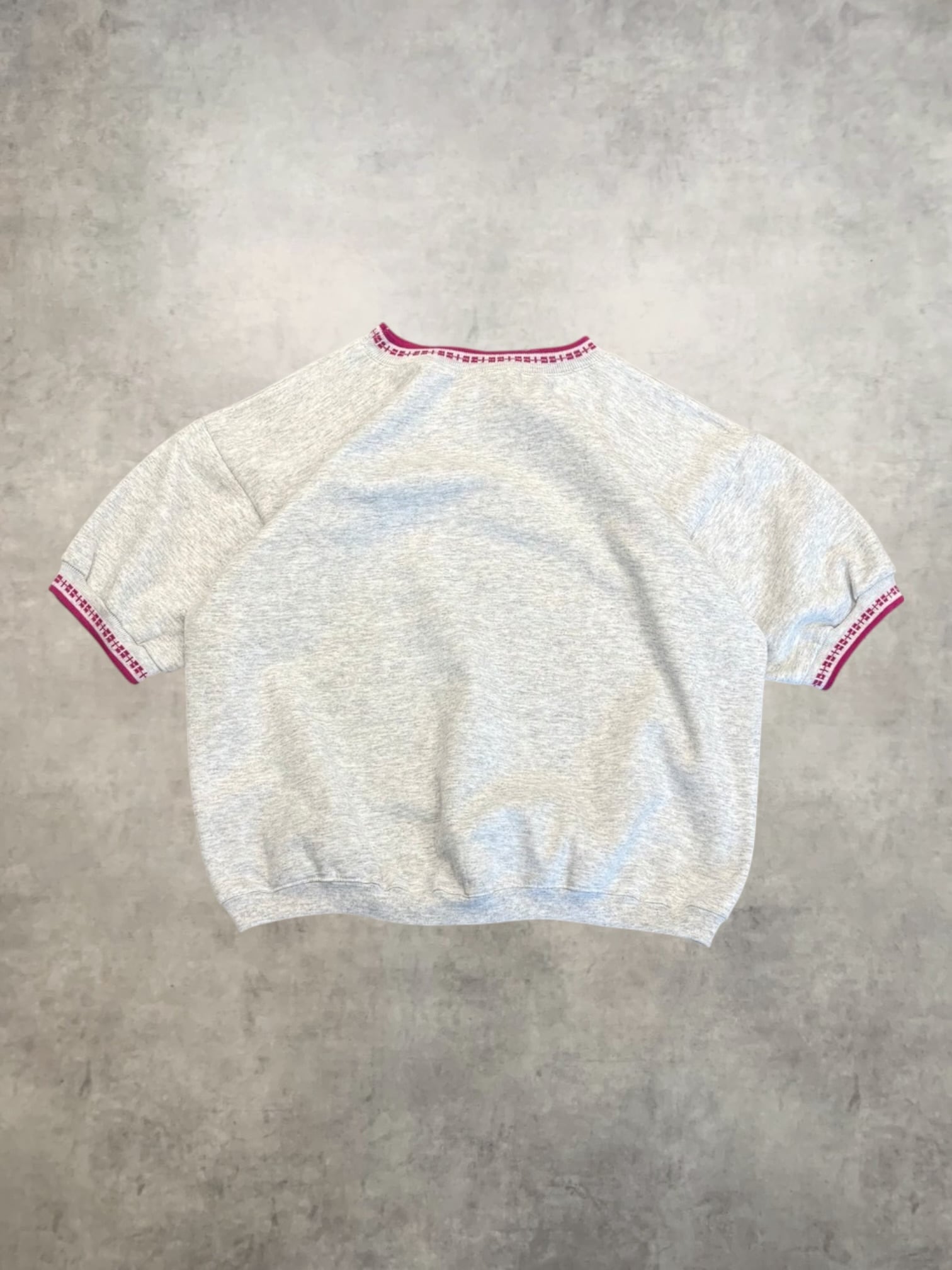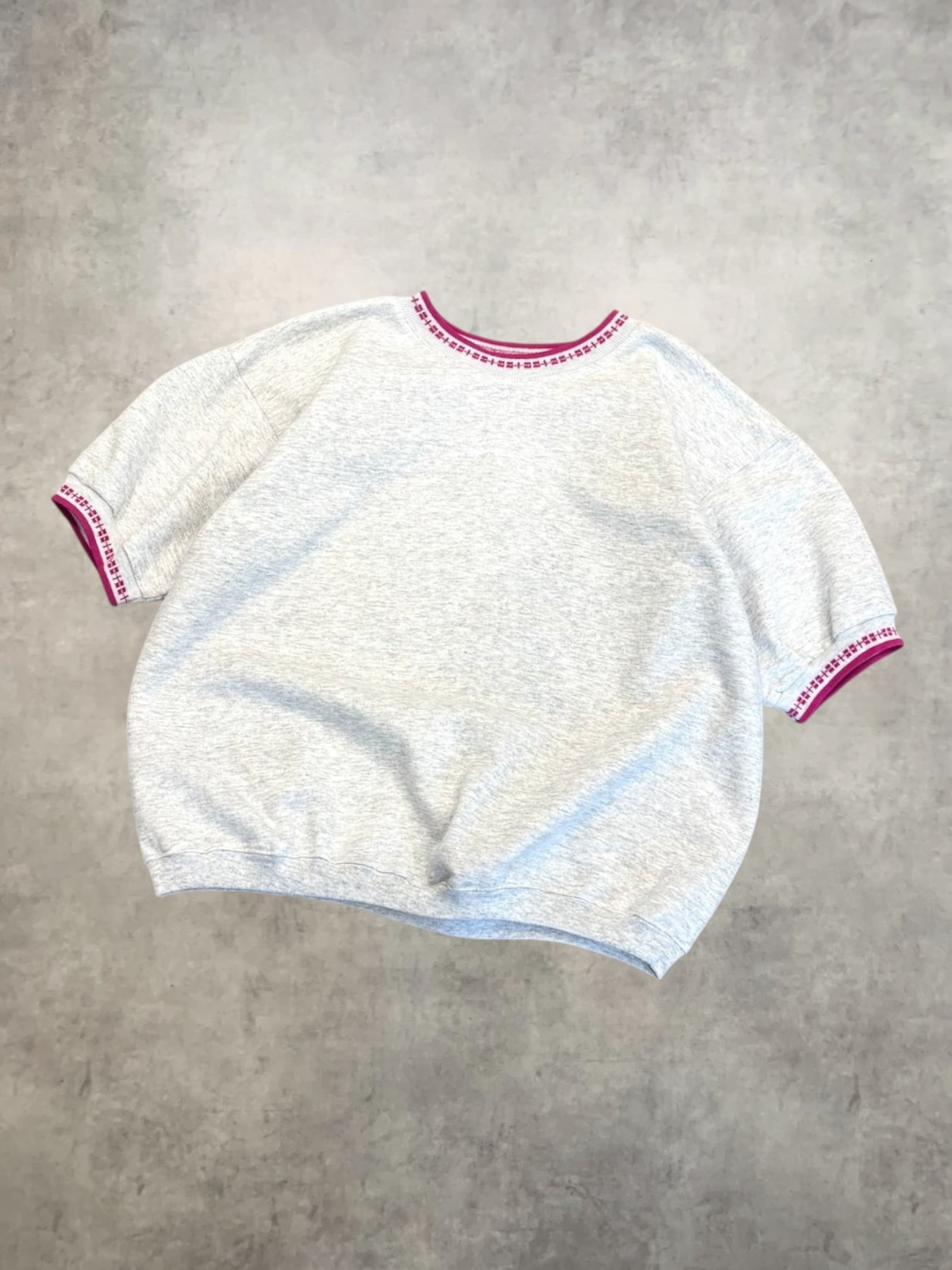 90sアメリカ製、リブにラインと模様が入ったS/Sスウェット