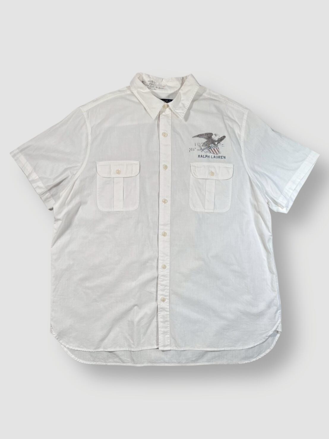 マチ付きの裾仕様、チンストラップなど、ヴィンテージシャツに見られるディテールも盛り込まれており、ラルフローレンらしいこだわりを感じる1枚です