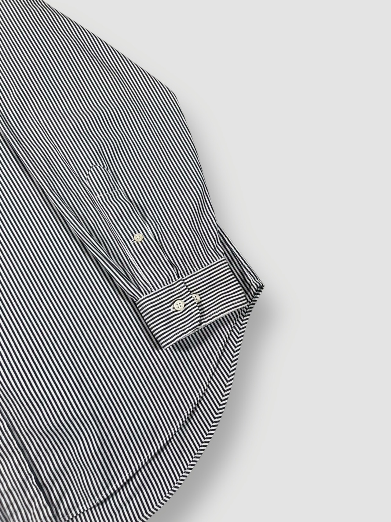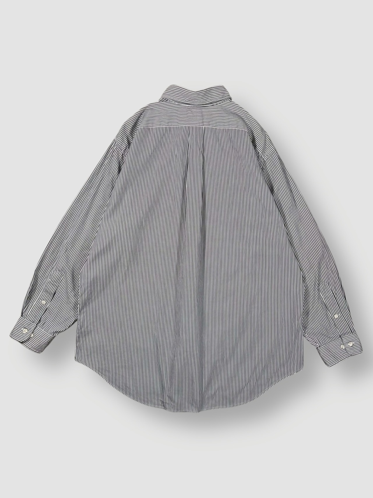 ホワイト×チャコールっぽいブラックの清潔感のあるストライプにマルチポニーがアクセントになった王道のボタンダウンシャツ
