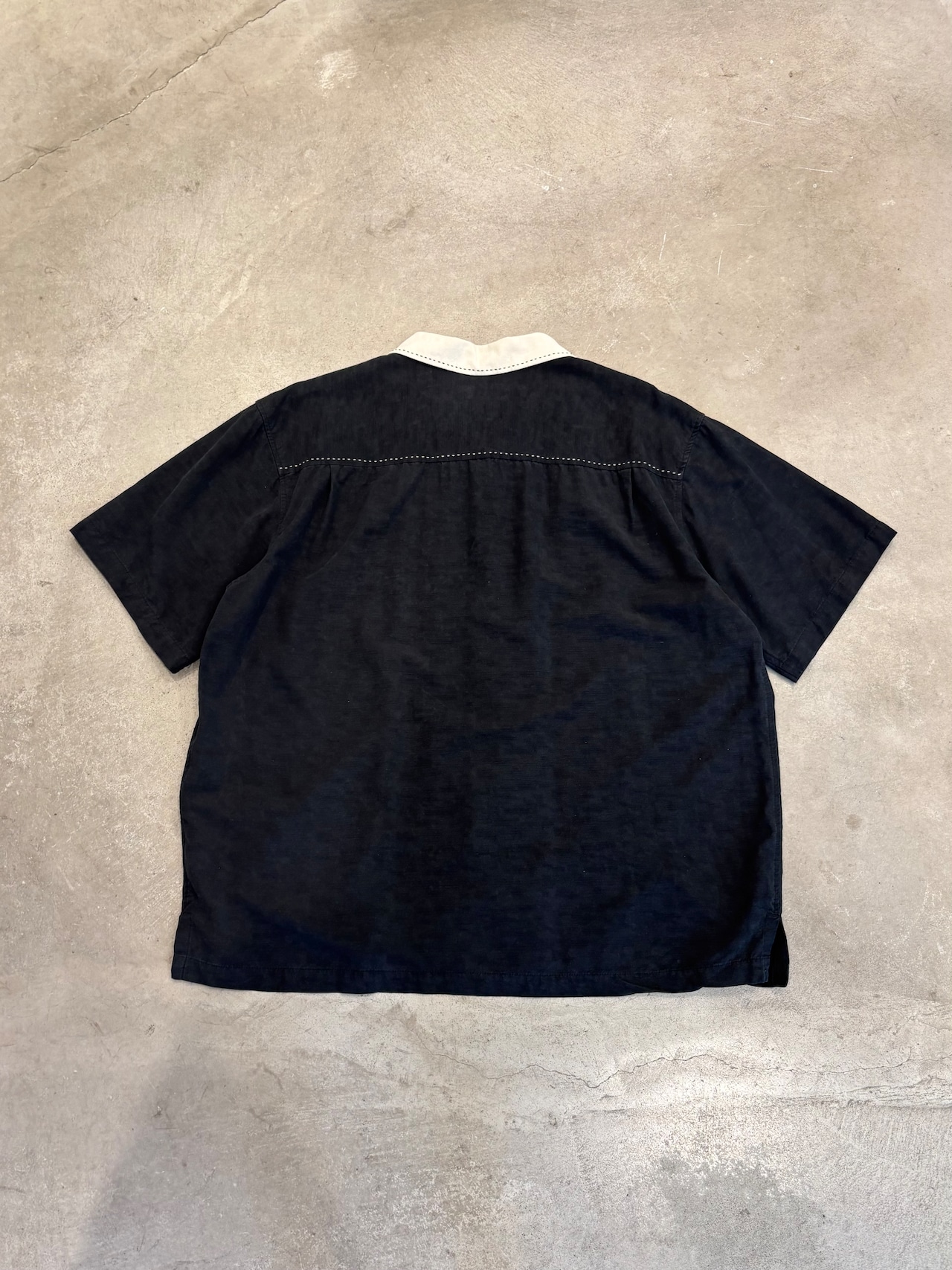 装飾のステッチが入るシルクシャツ