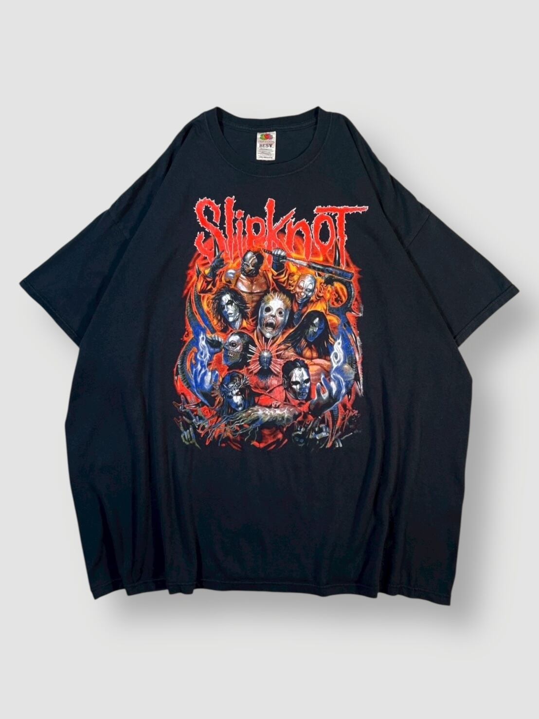 こちらもグロテスクなマスク姿のメンバーが円状にレイアウトされた、存在感のあるフロントプリントが目を引く1枚