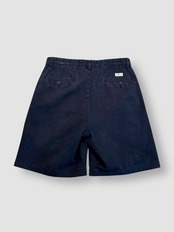 汎用性の高いネイビーで、2タック仕様、やや深めの股上とゆとりあるワタリで穿きやすく取り入れやすいショートパンツです