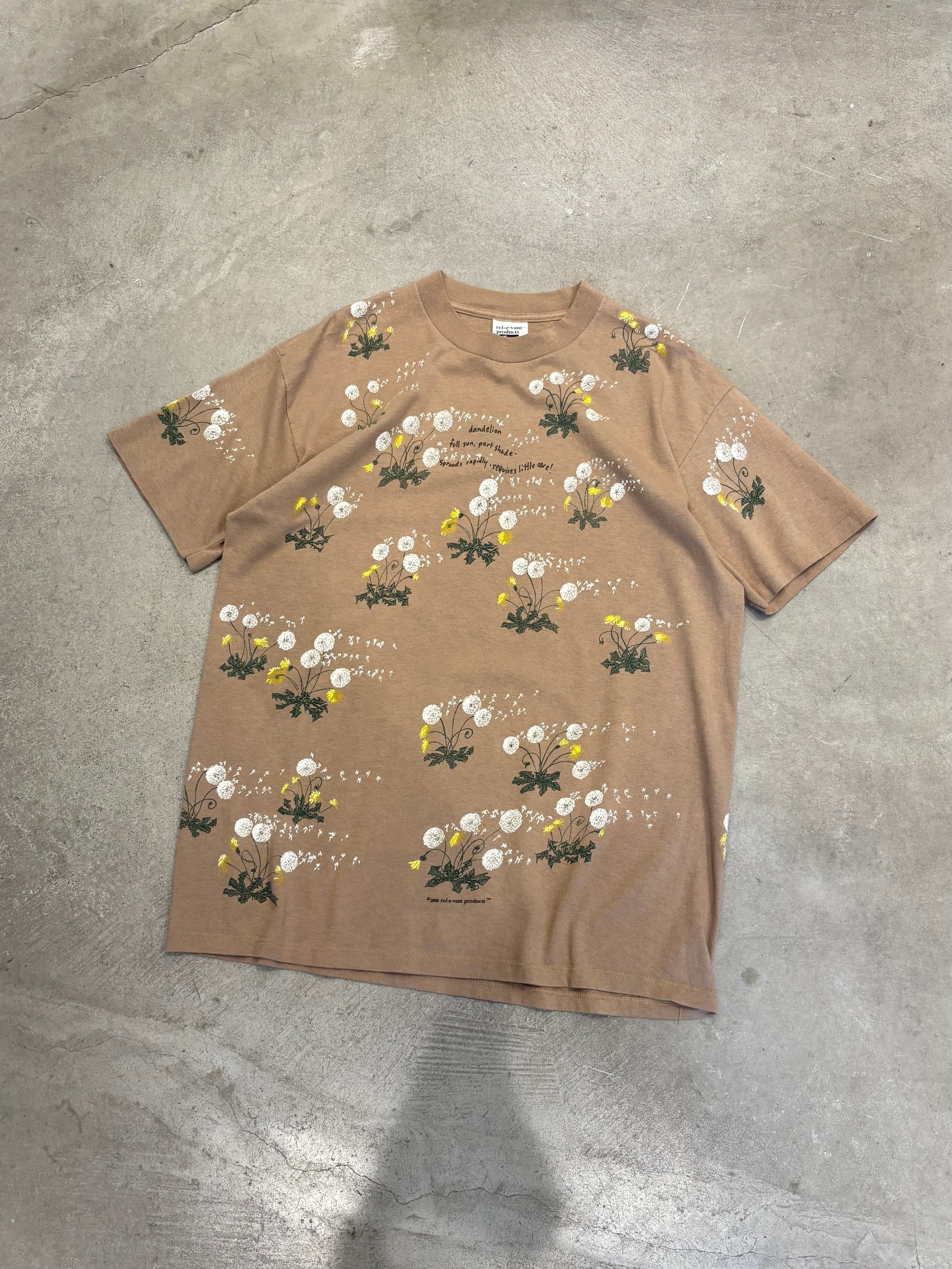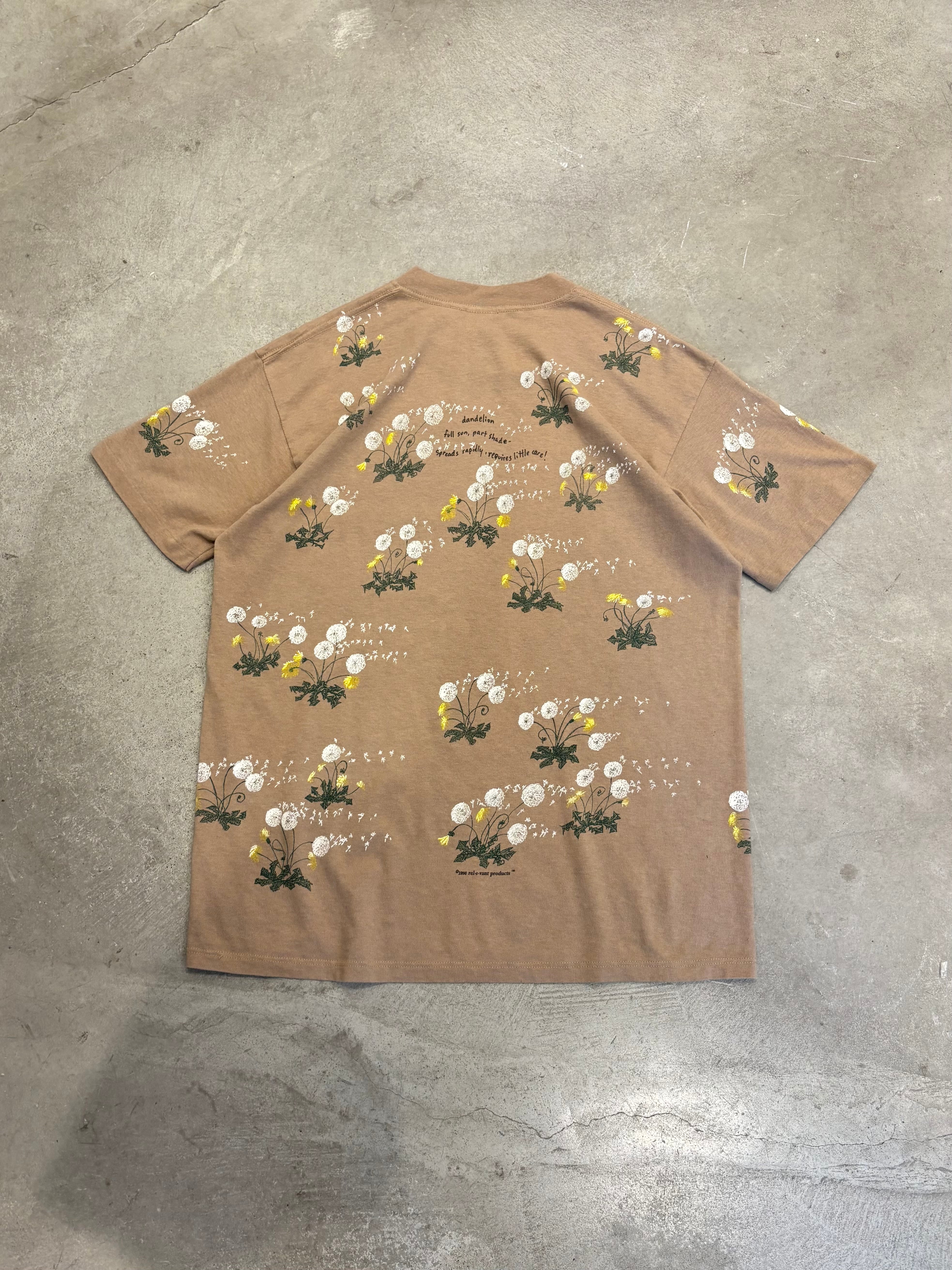 90s “rel・e・vant products” Dandelion Full Print Tee MADE IN USA