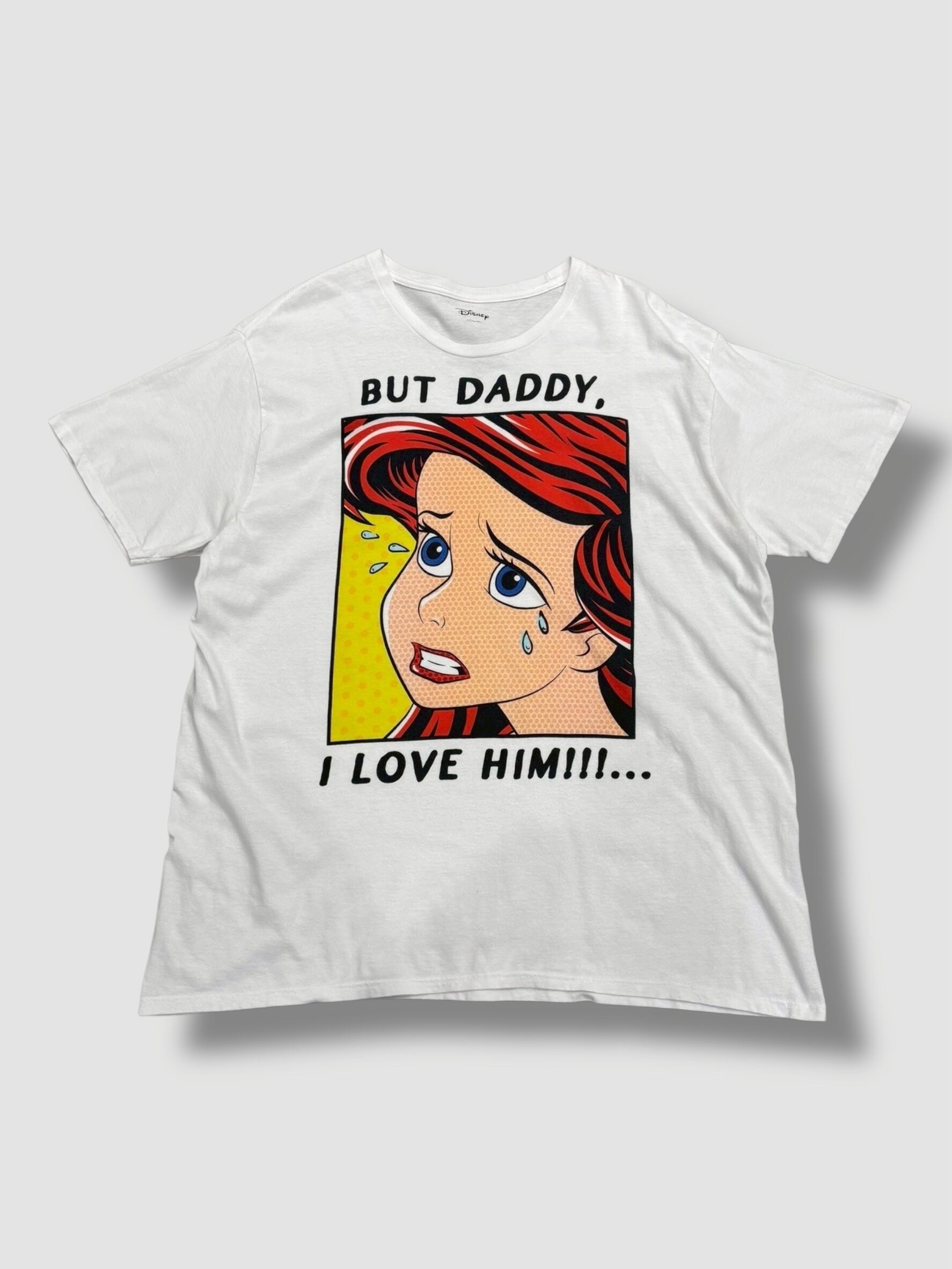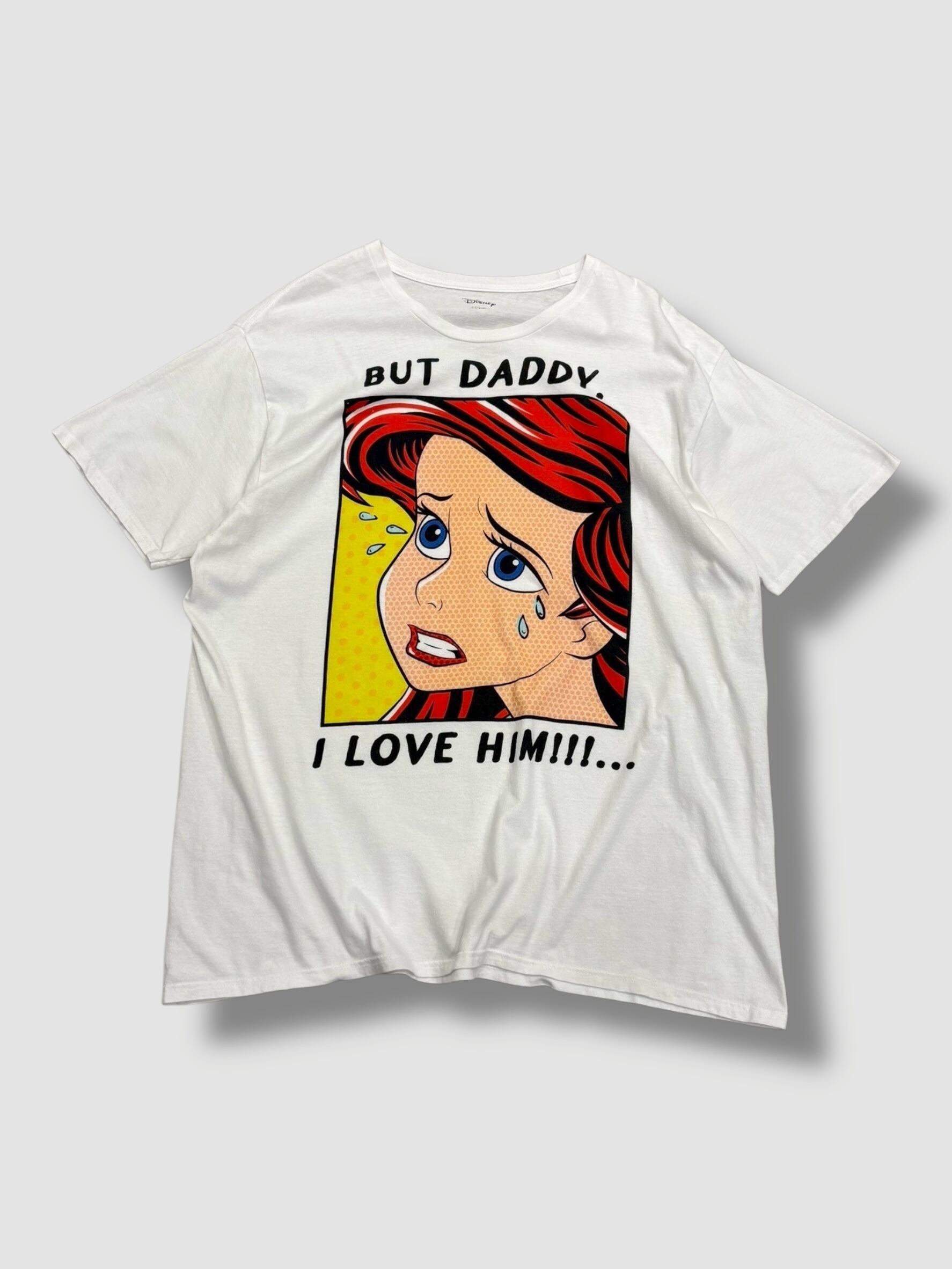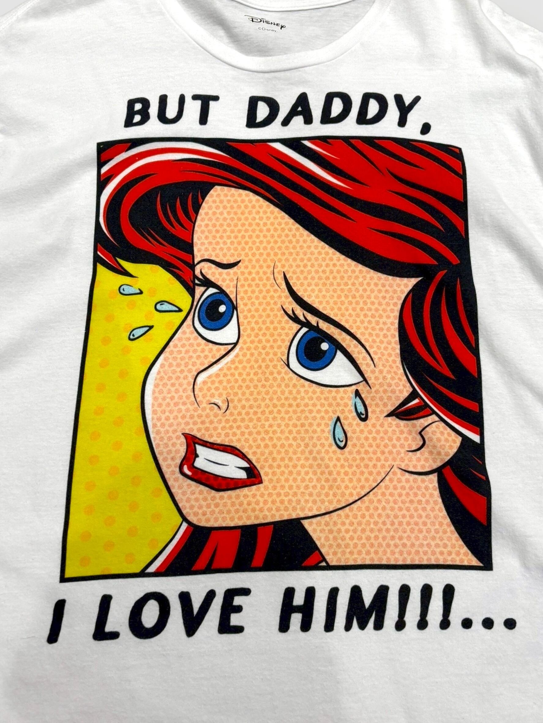 劇中の父トリトン王との会話シーン「BUT DADDY, I LOVE HIM!!!…(でもお父さん、彼を愛しているの)」という印象的なセリフがプリントされており、作品ファンにはたまらないかと