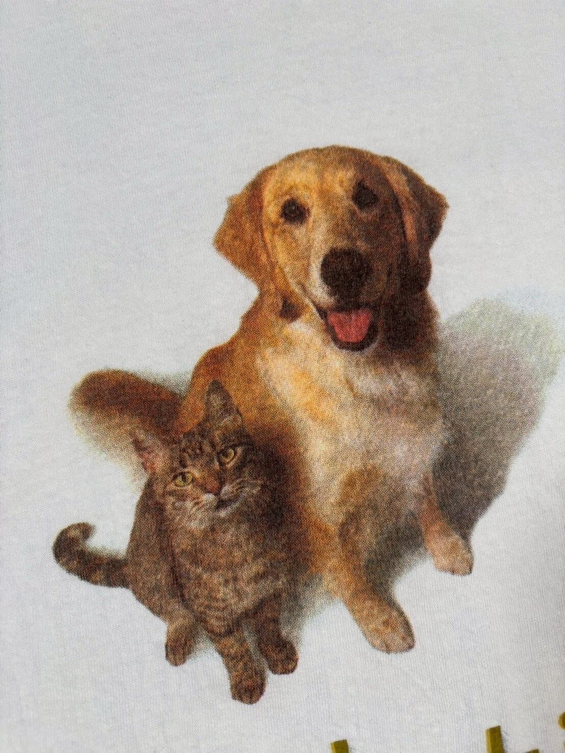 フロントには犬と猫のプリントに加え、寄生虫予防薬「Revolution」のブランドロゴが入った1枚