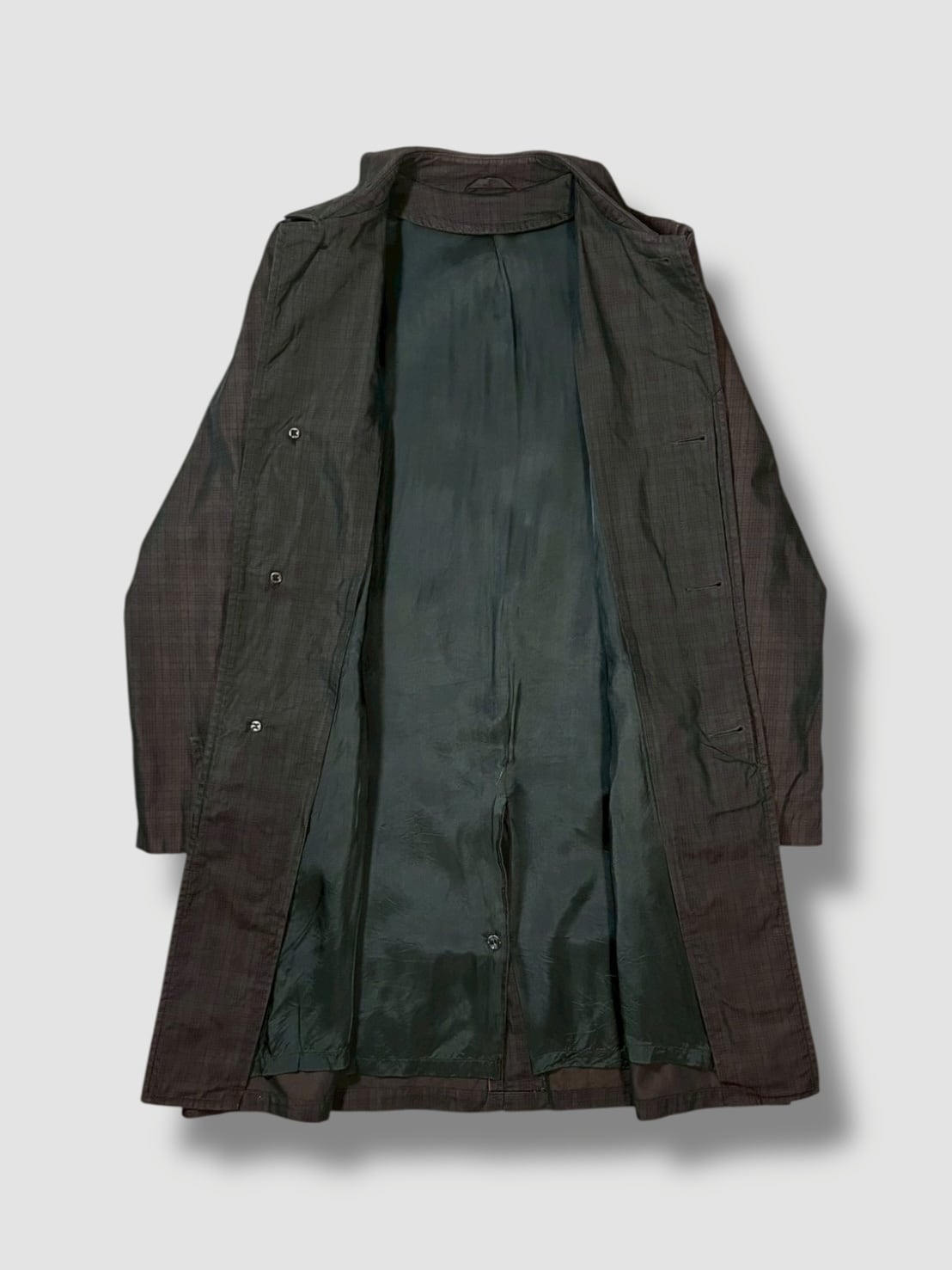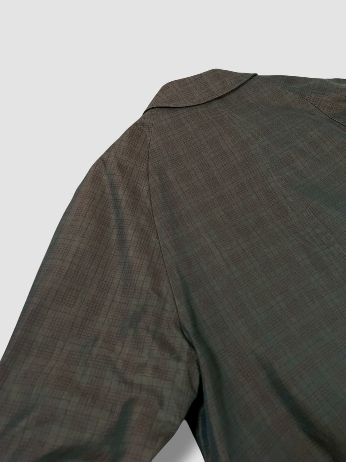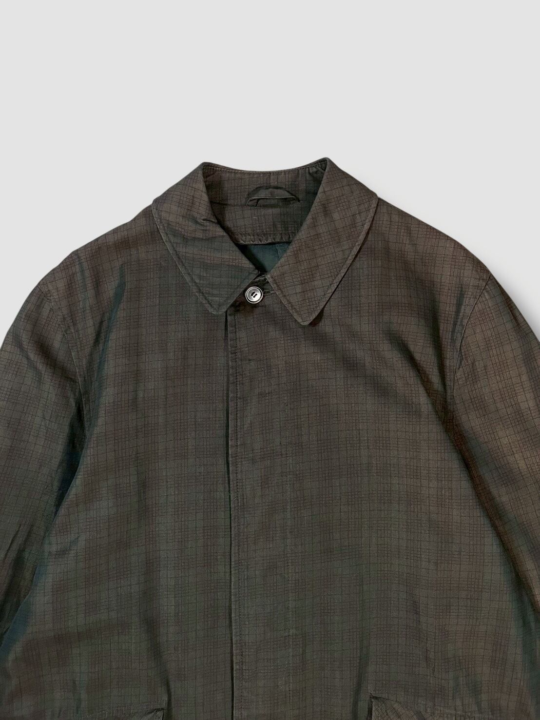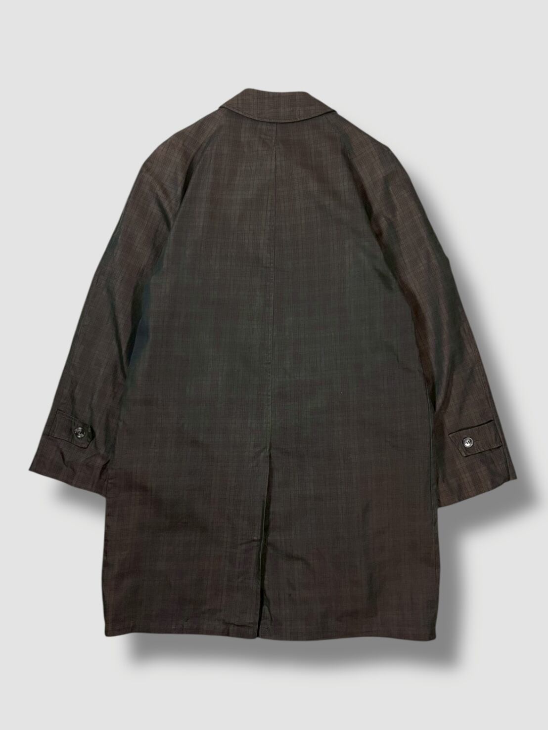 クラシカルな雰囲気漂うバルマカーンコートで玉虫色のチェック柄が光の加減でさりげなく表情を変える珍しい1着
