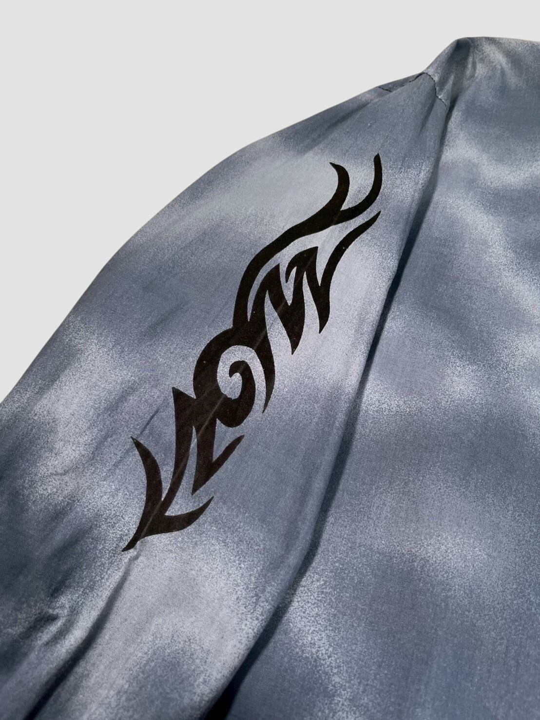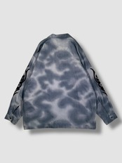 独特なタイダイ風のブルーボディに、トライバル柄のプリントを袖と胸ポケットに入ったデザインがカッコいい1着
