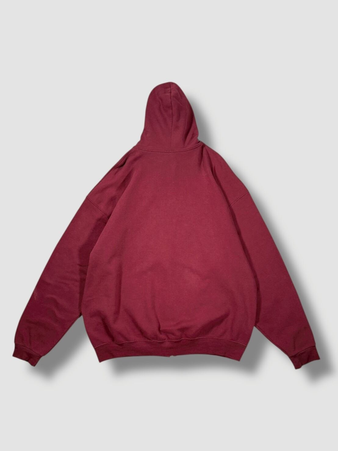 こちらは落ち着いたバーガンディーのジップパーカー