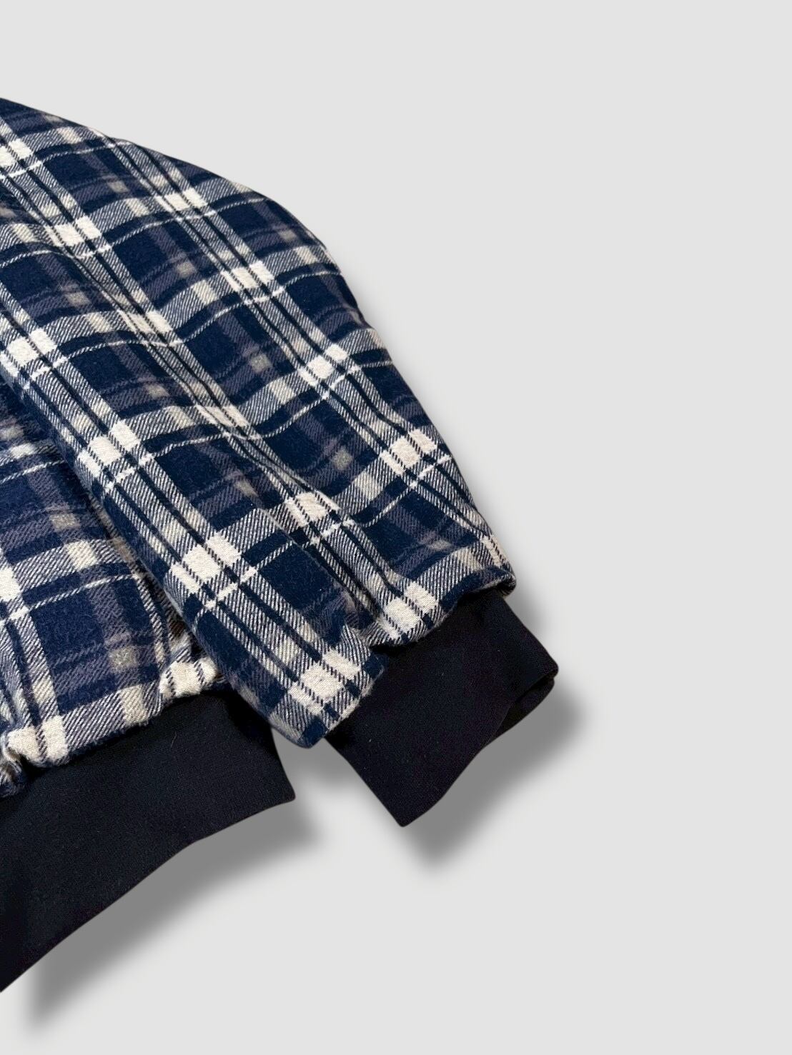 表はチェック柄のフランネル生地仕様、裏は無地スウェット仕様で、気分に合わせて着用できる2WAYデザインです