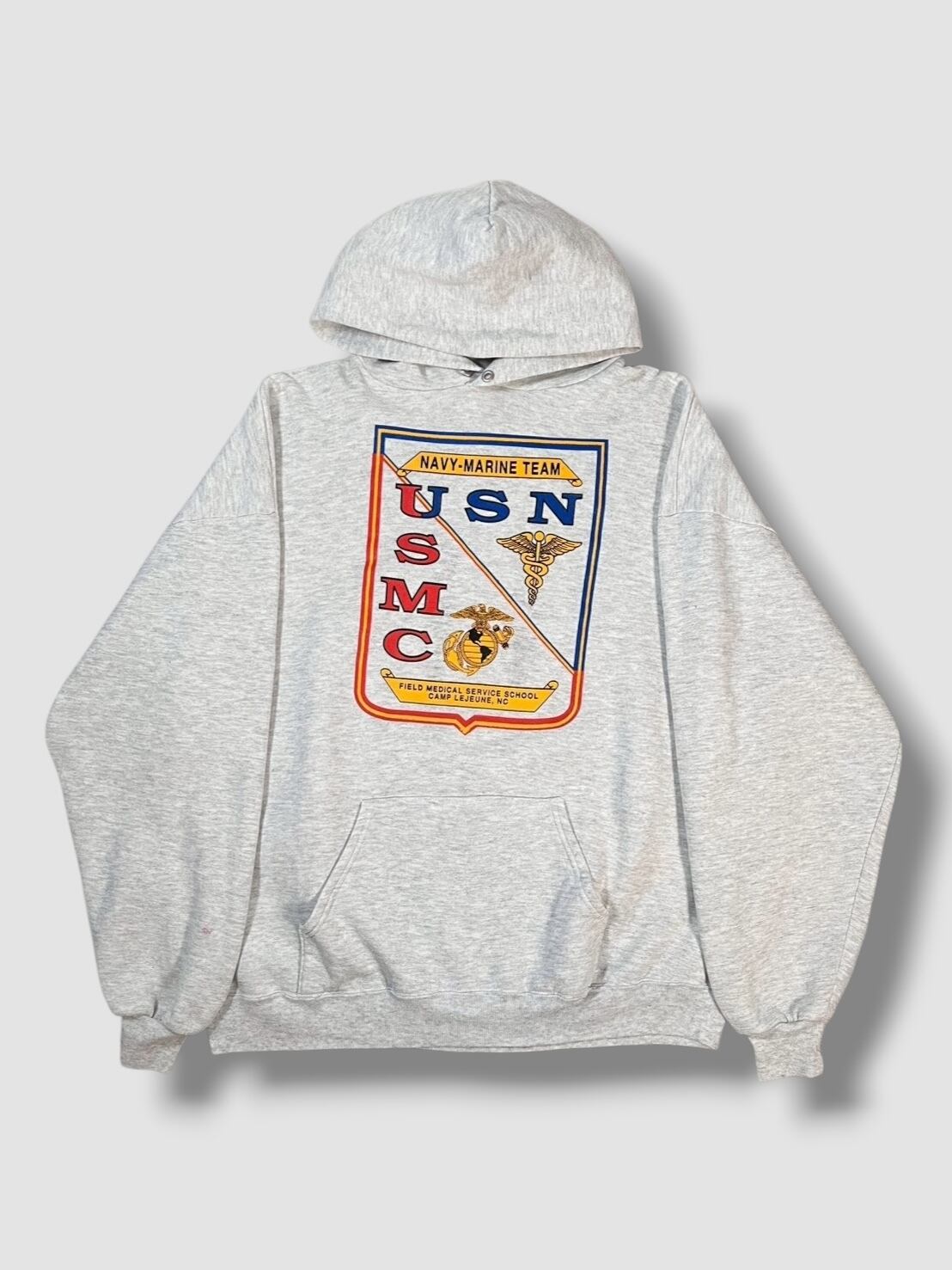 90’s “USN USMC” Double Sided Print Hoodie Made in USA