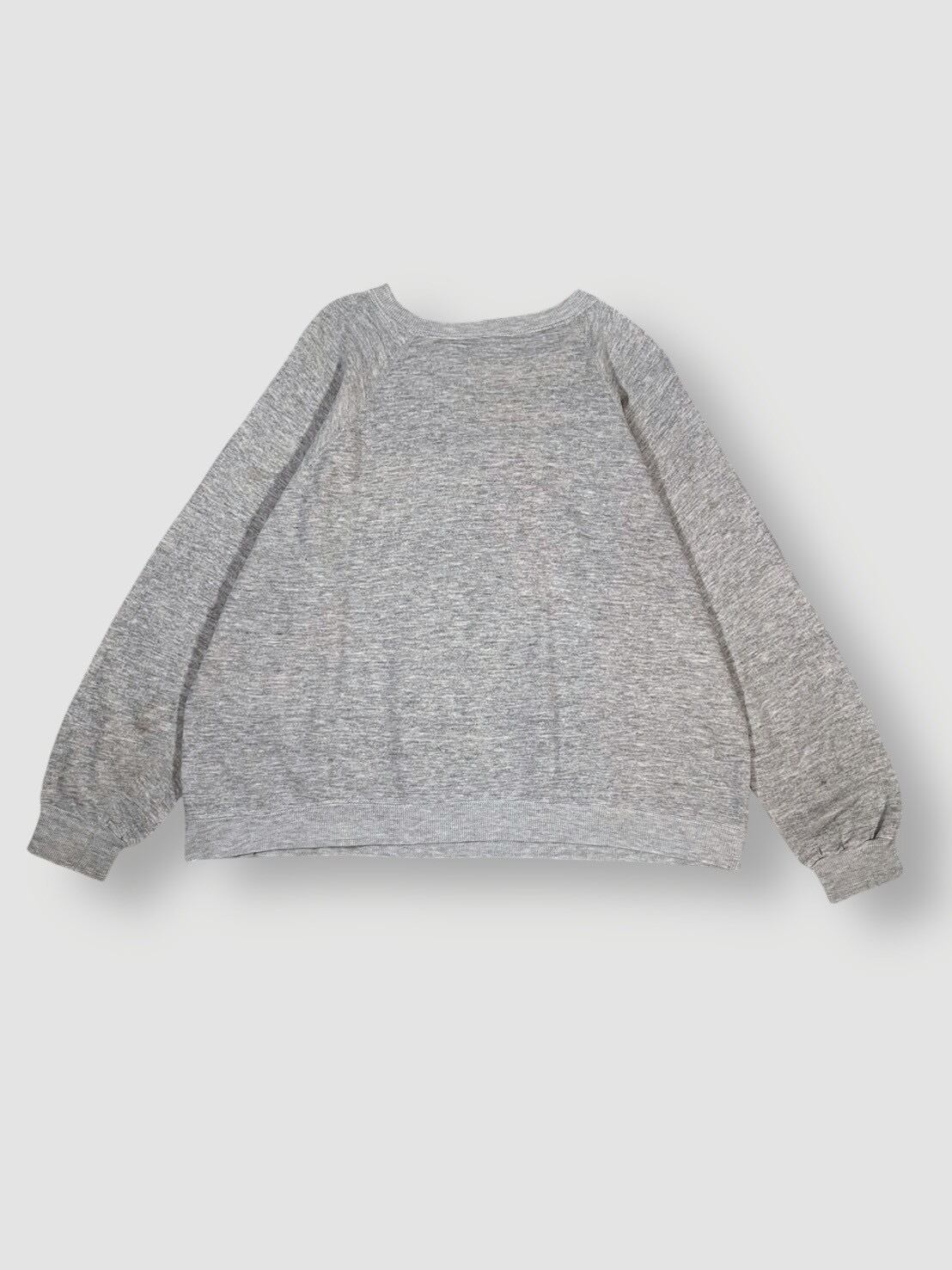霜降りグレーにバーガンディのプリントが映える、クラシックなカレッジスウェットらしい仕上がりです