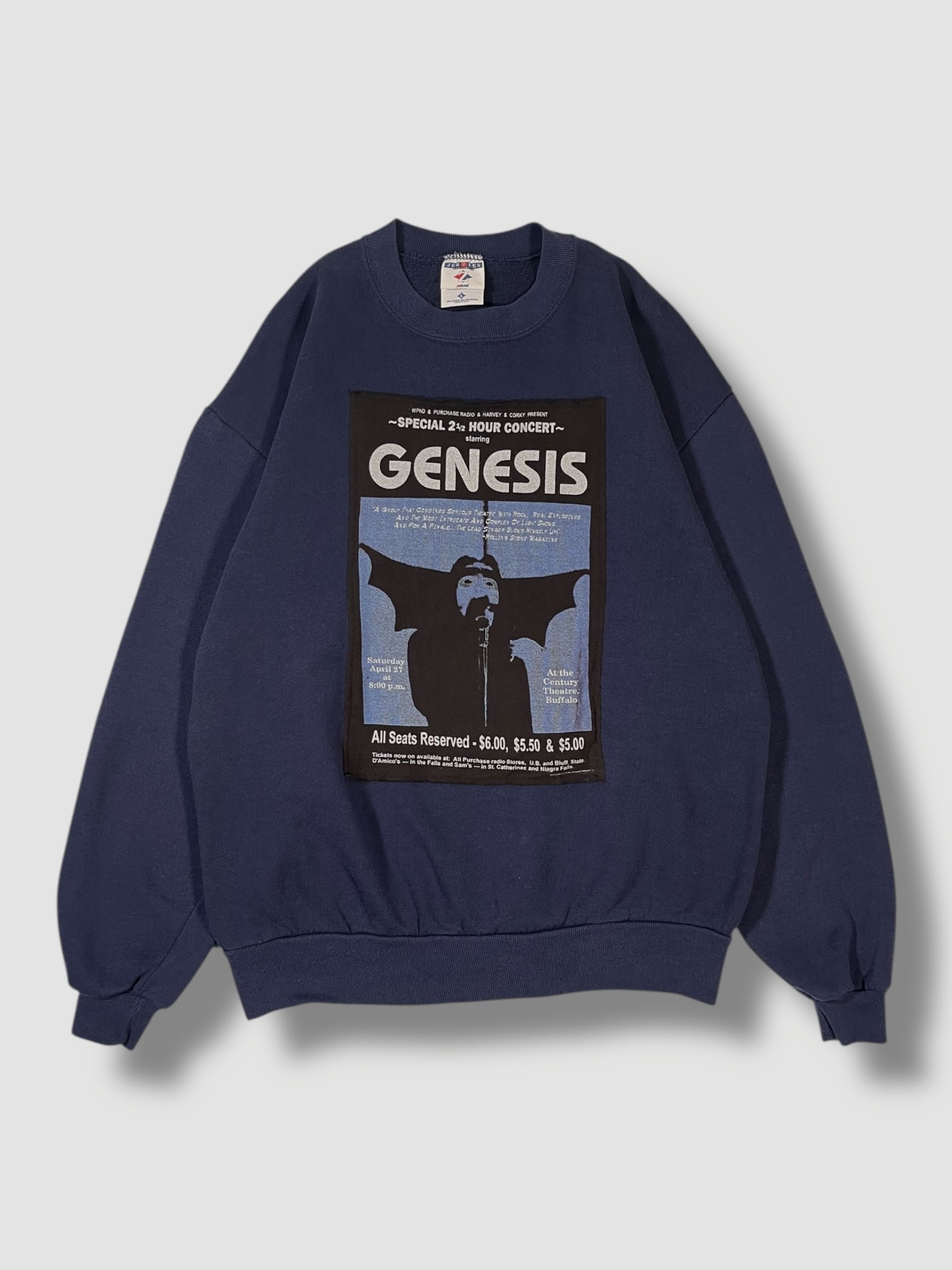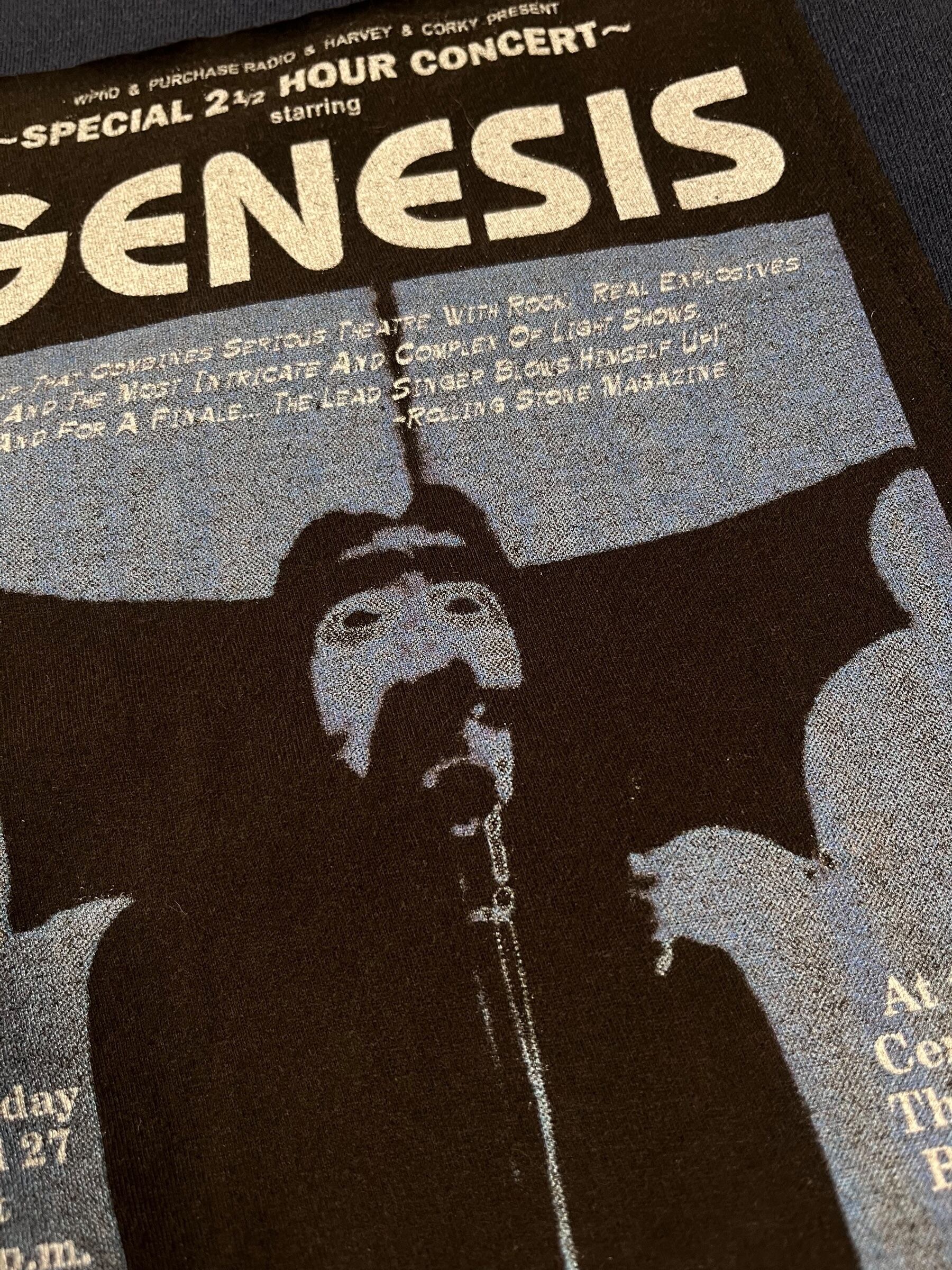 こちらはイングランドのロックバンド、ジェネシスのプリント、1974年に行われたコンサートのポスターデザインを落とし込んだ1着です