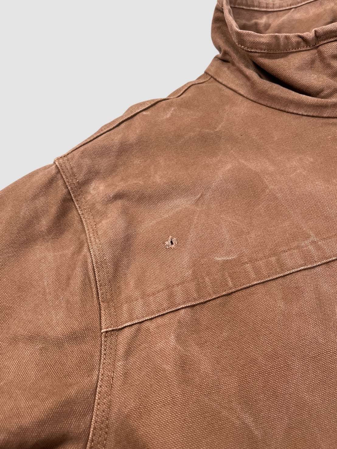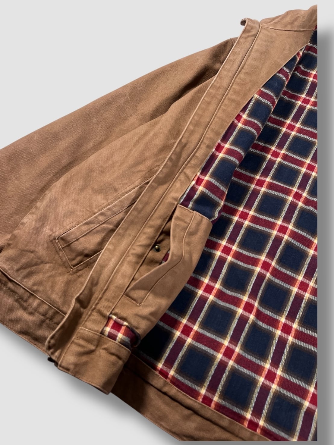 この手のジャケットは大体カーハートのモデルを原型にしていますが、こちらは珍しいスタンドカラータイプです