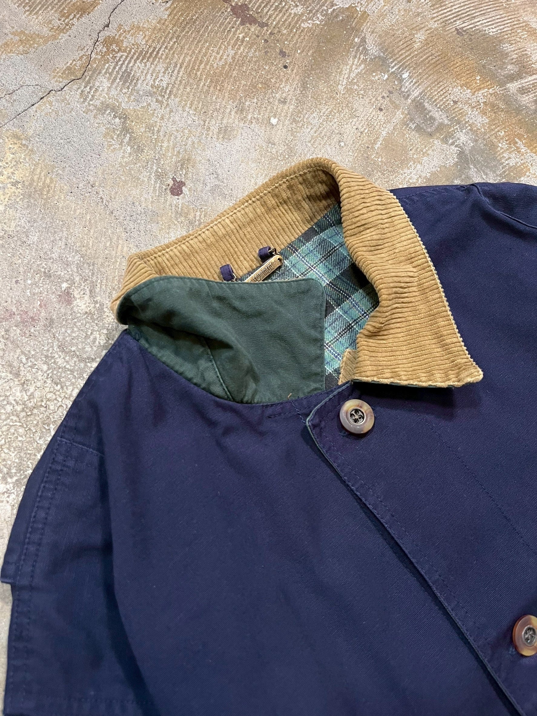 ネイビーボディーにブラウンのコーデュロイ、袖裏はグリーンになっています