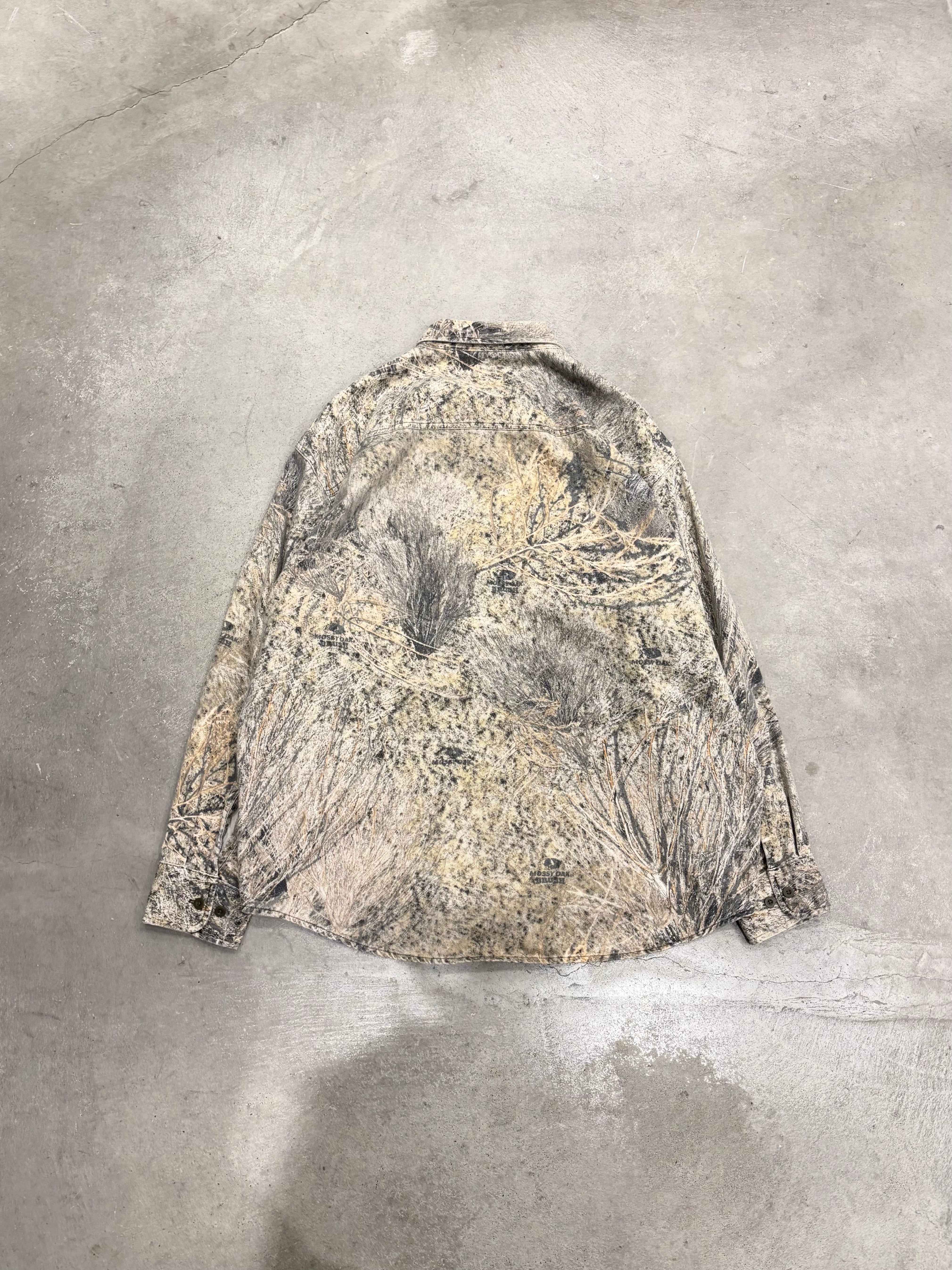 モッシーオーク社が展開する木の枝や茂み、土の色を模した非常にリアルで立体感のあるカモフラージュ柄の一種を使用した1着