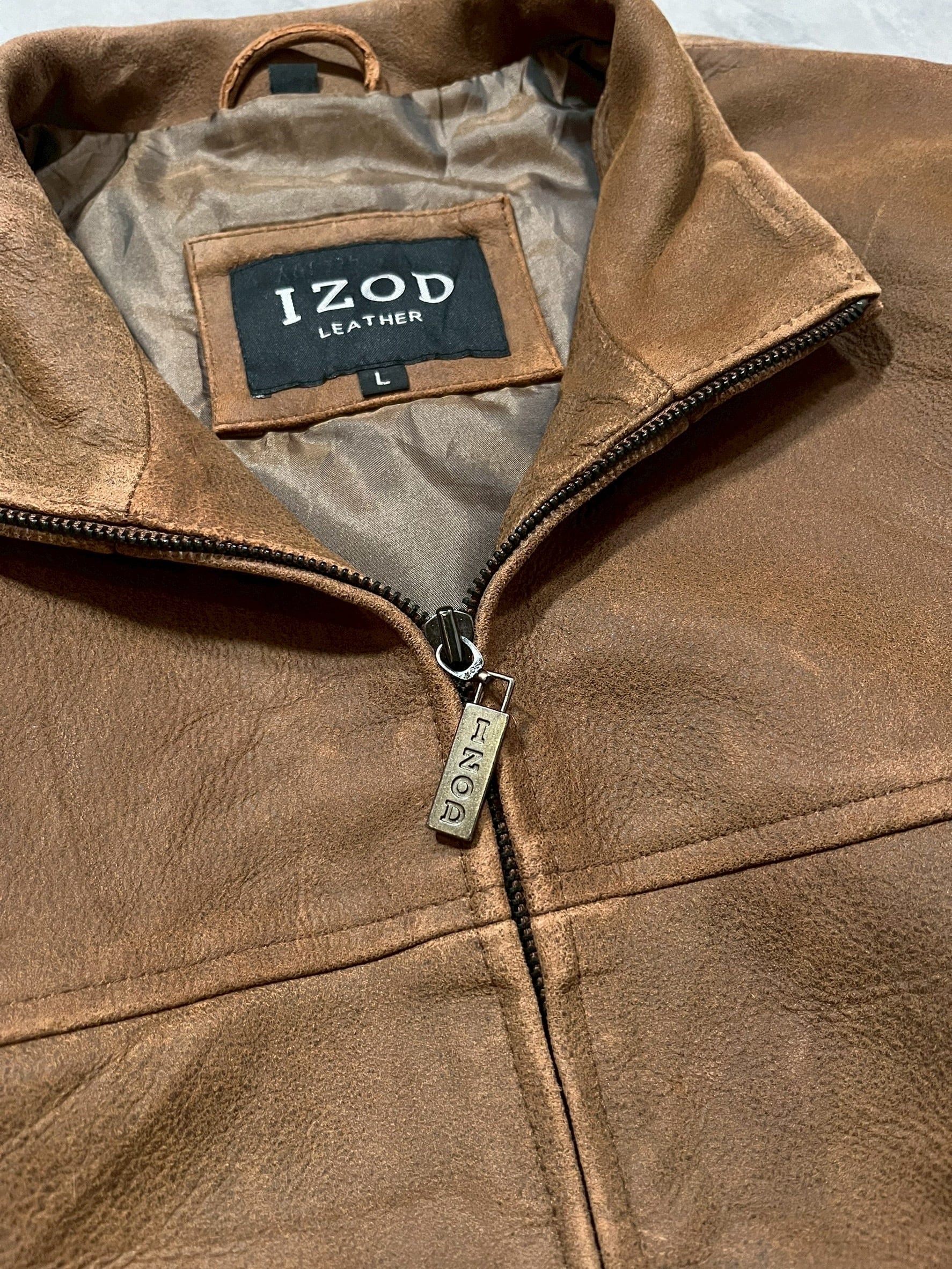 “IZOD” Stand Collar Leather Jacket DEAD STOCK