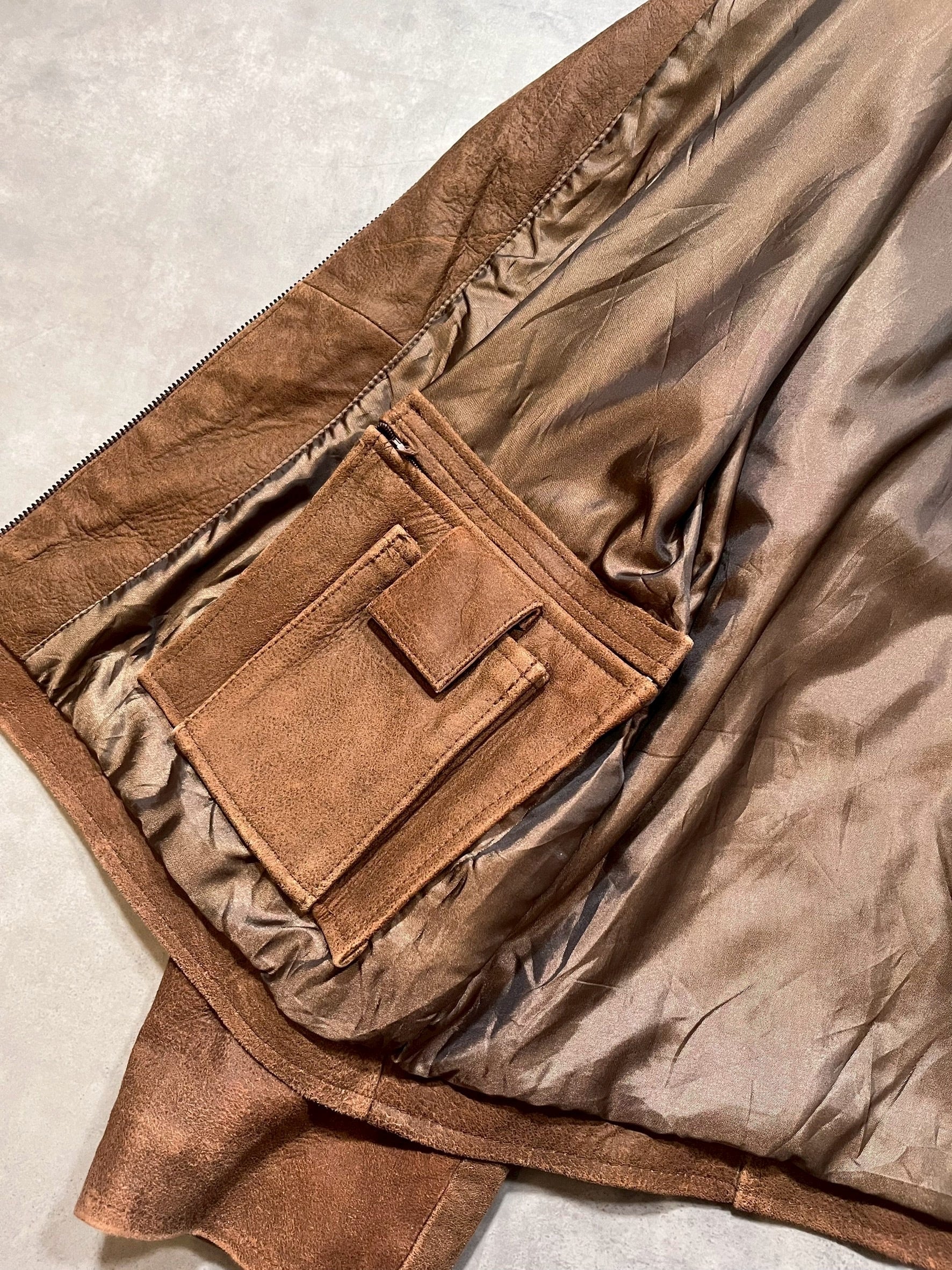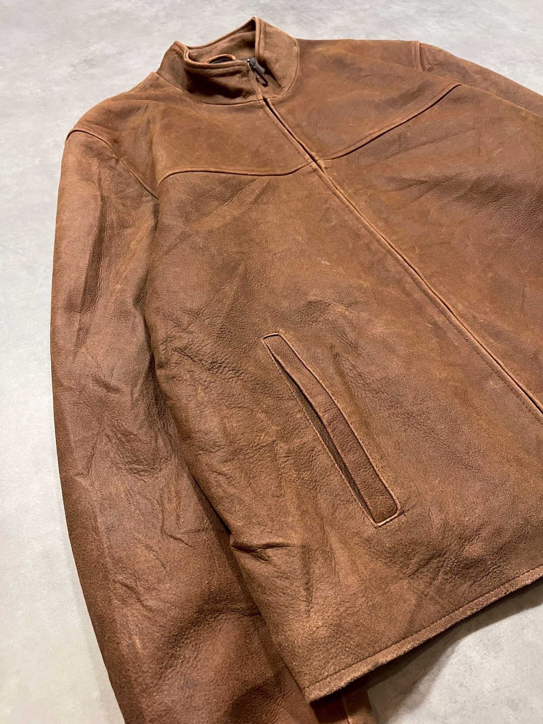 クラックしたような表情のレザーを使用しており味のある1着