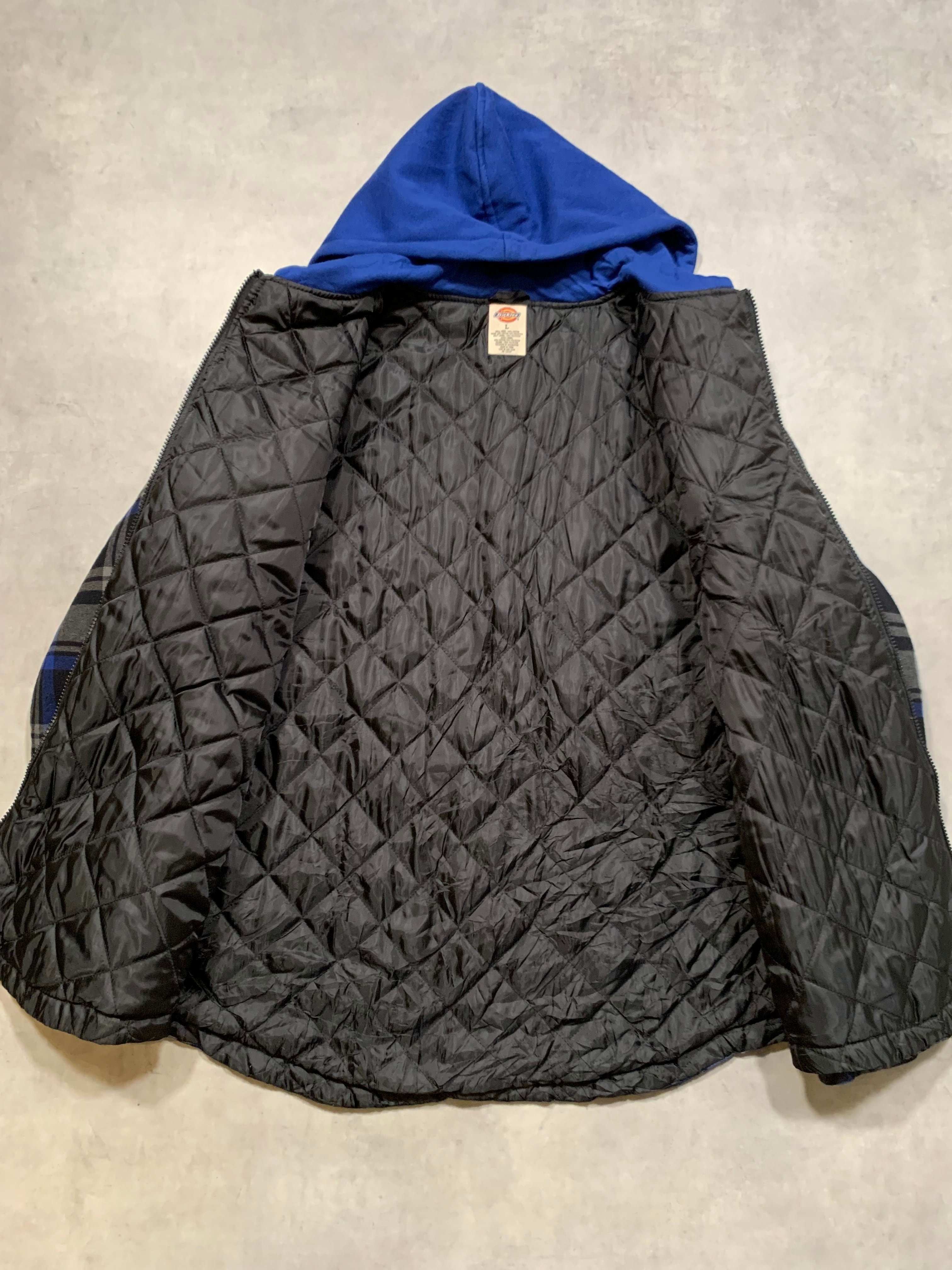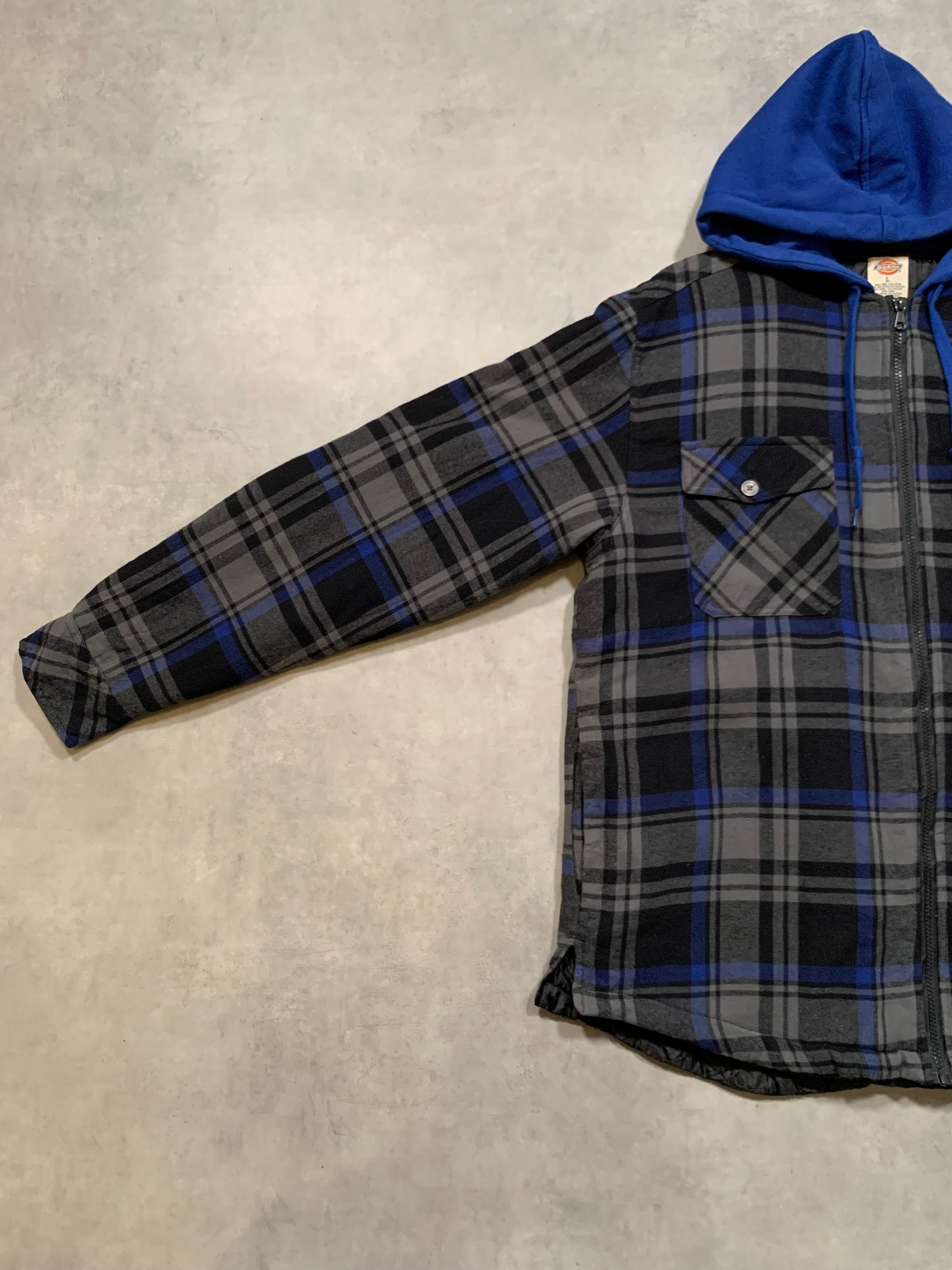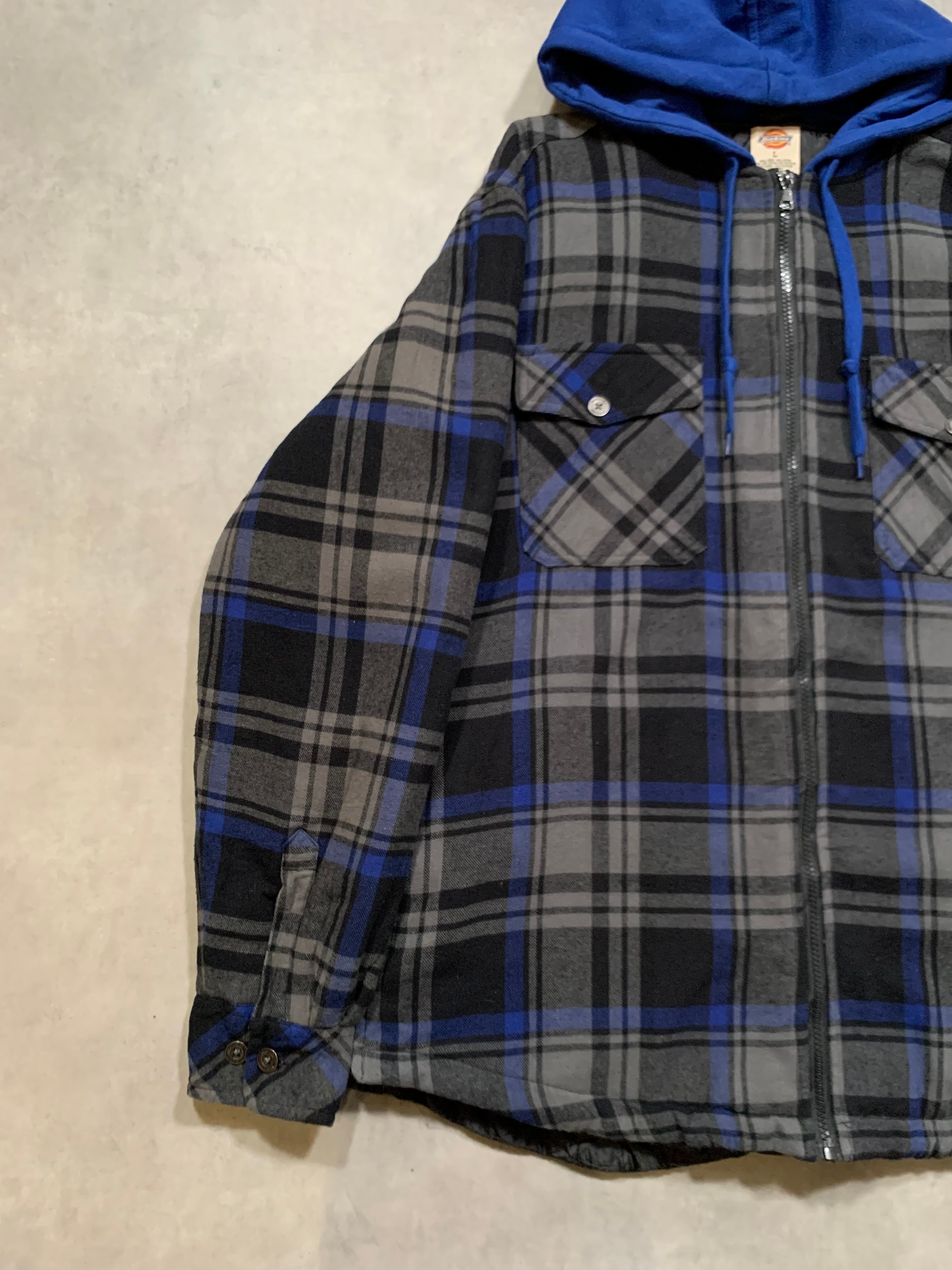 “Dickies” Padded Flannel Hoodie BLACK×BLUE