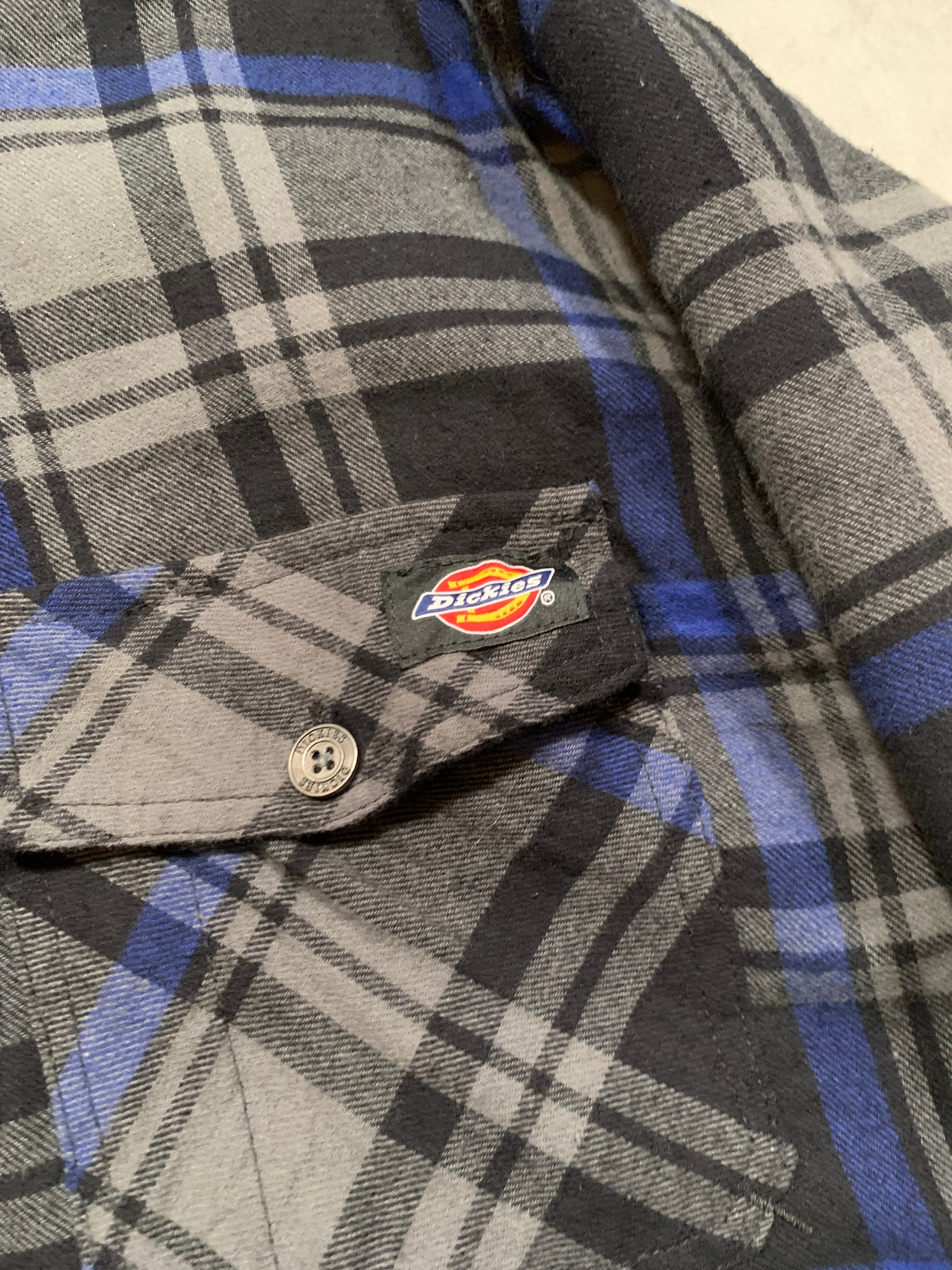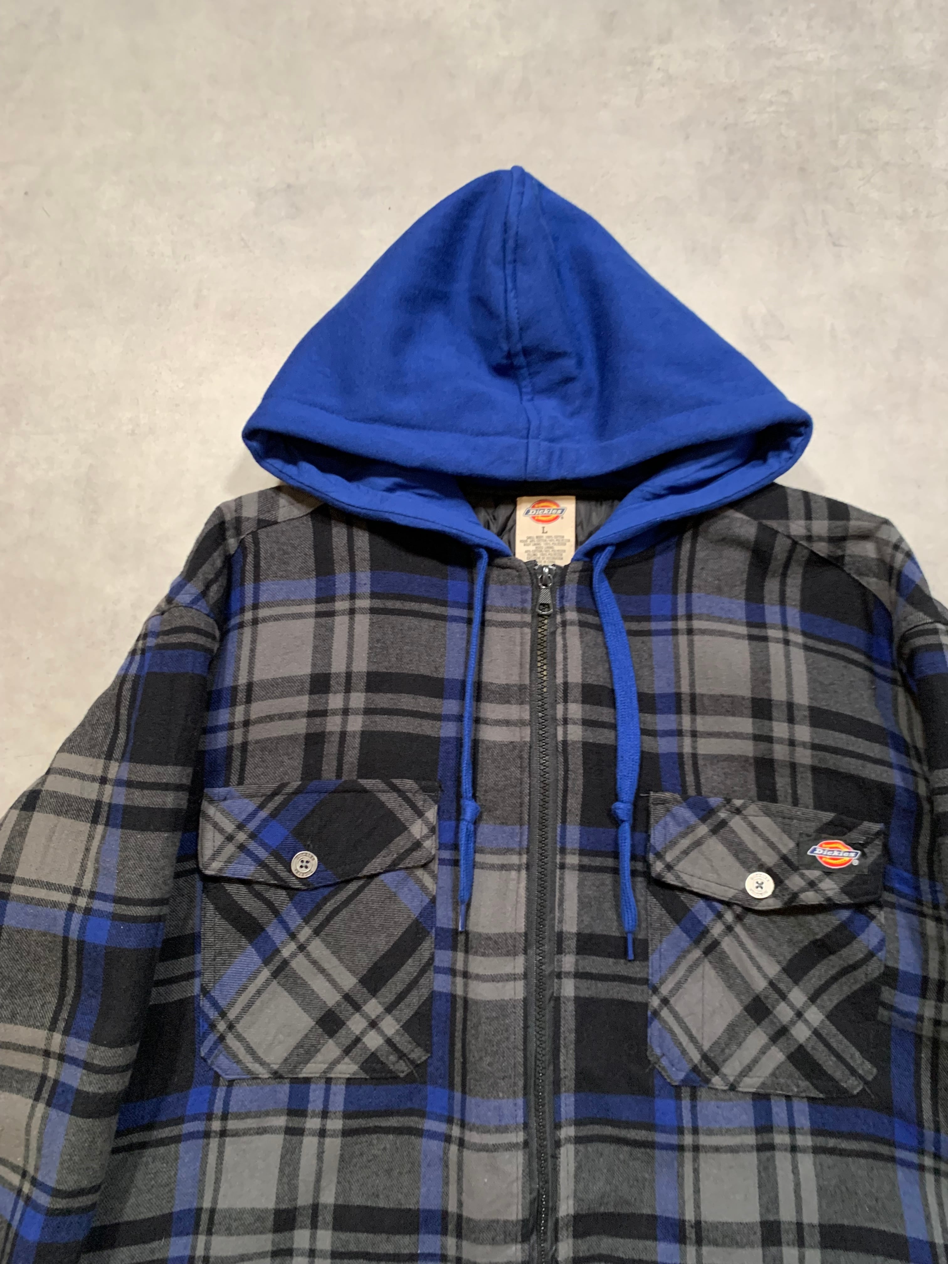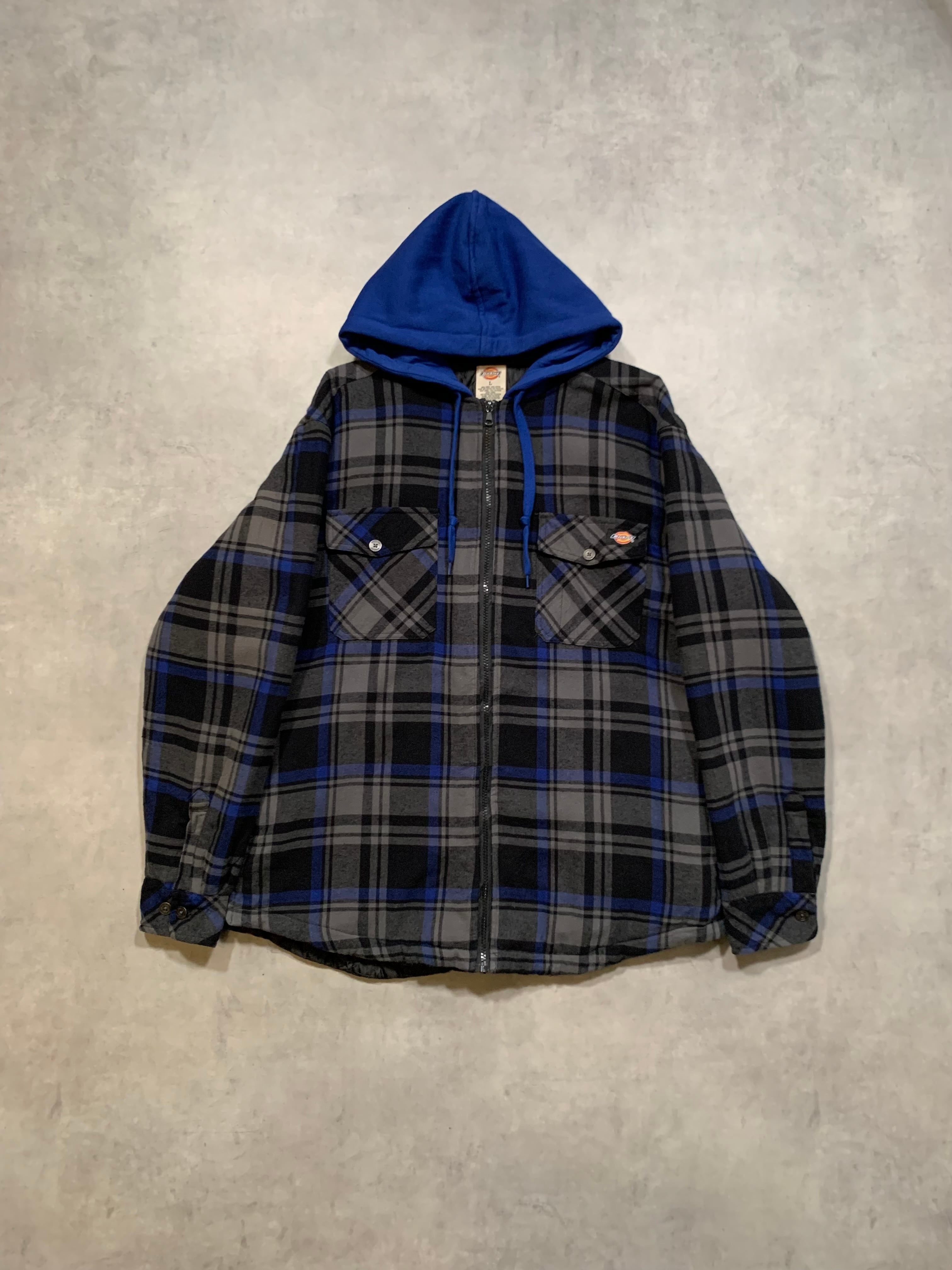“Dickies” Padded Flannel Hoodie BLACK×BLUE