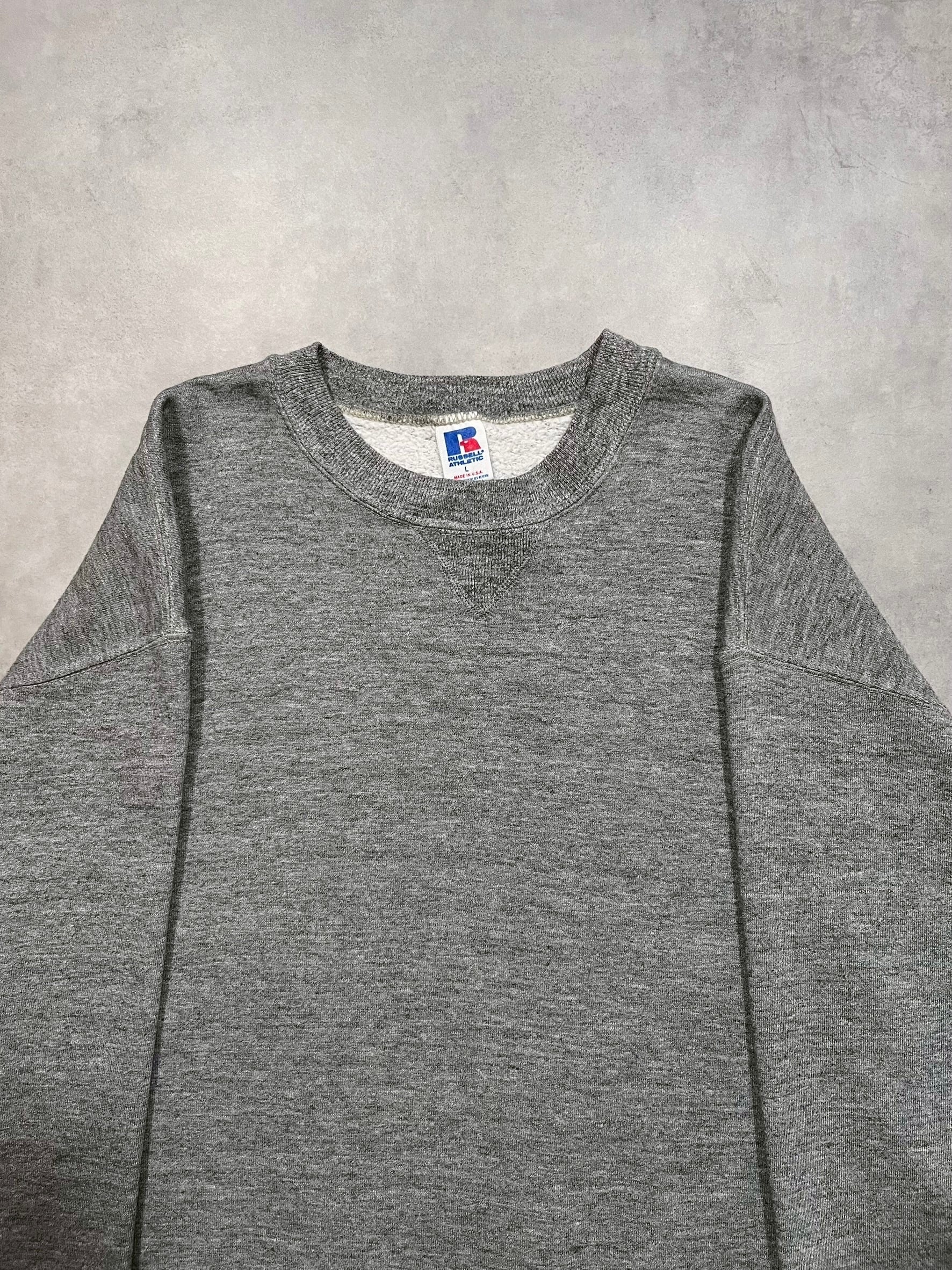 80’s “RUSSELL” Plain Sweat Shirt Made in USA HEATHER GREY L