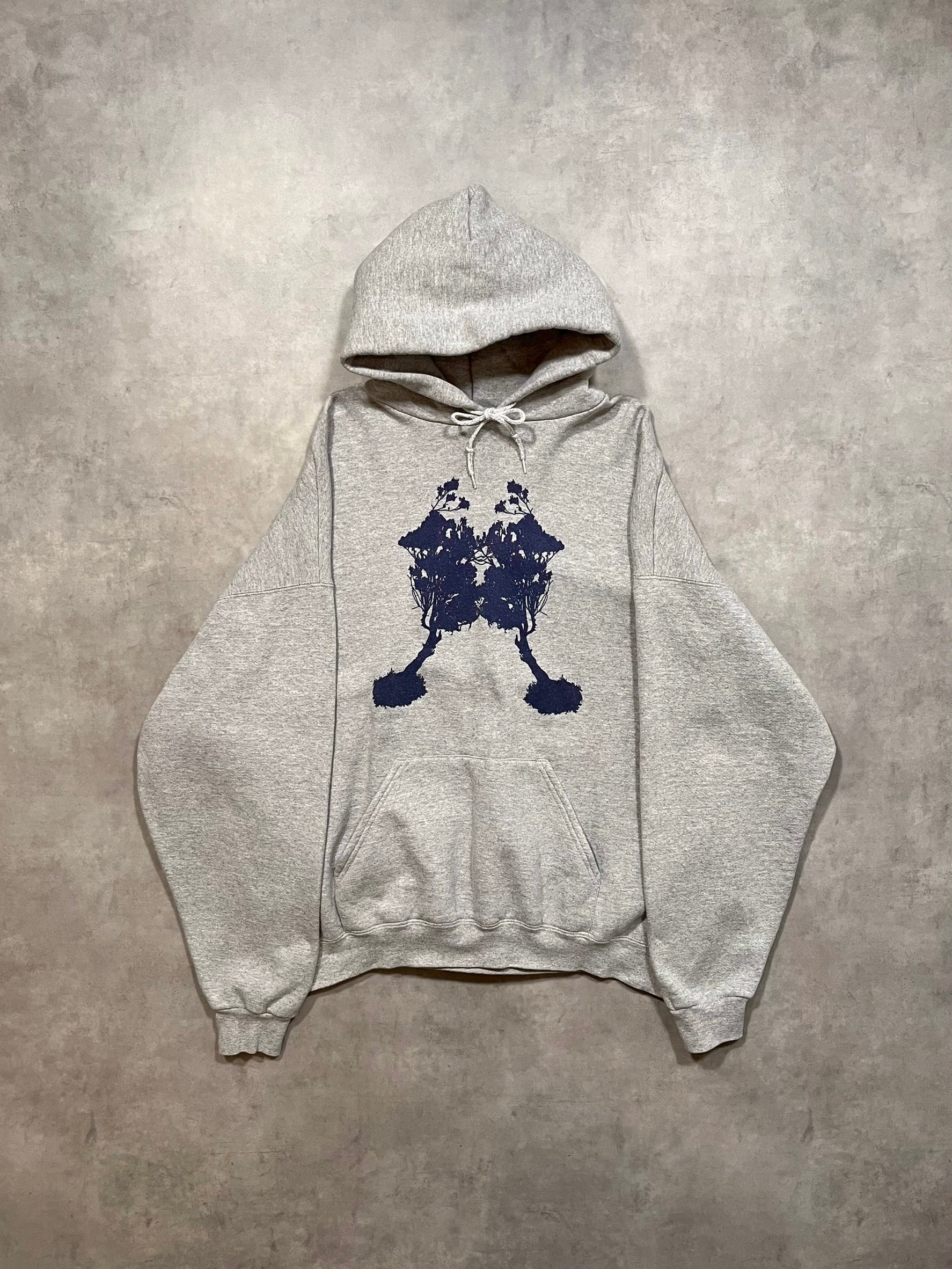 詳細は不明ながらまるでロールシャッハテストの様なプリントが入ったパーカー