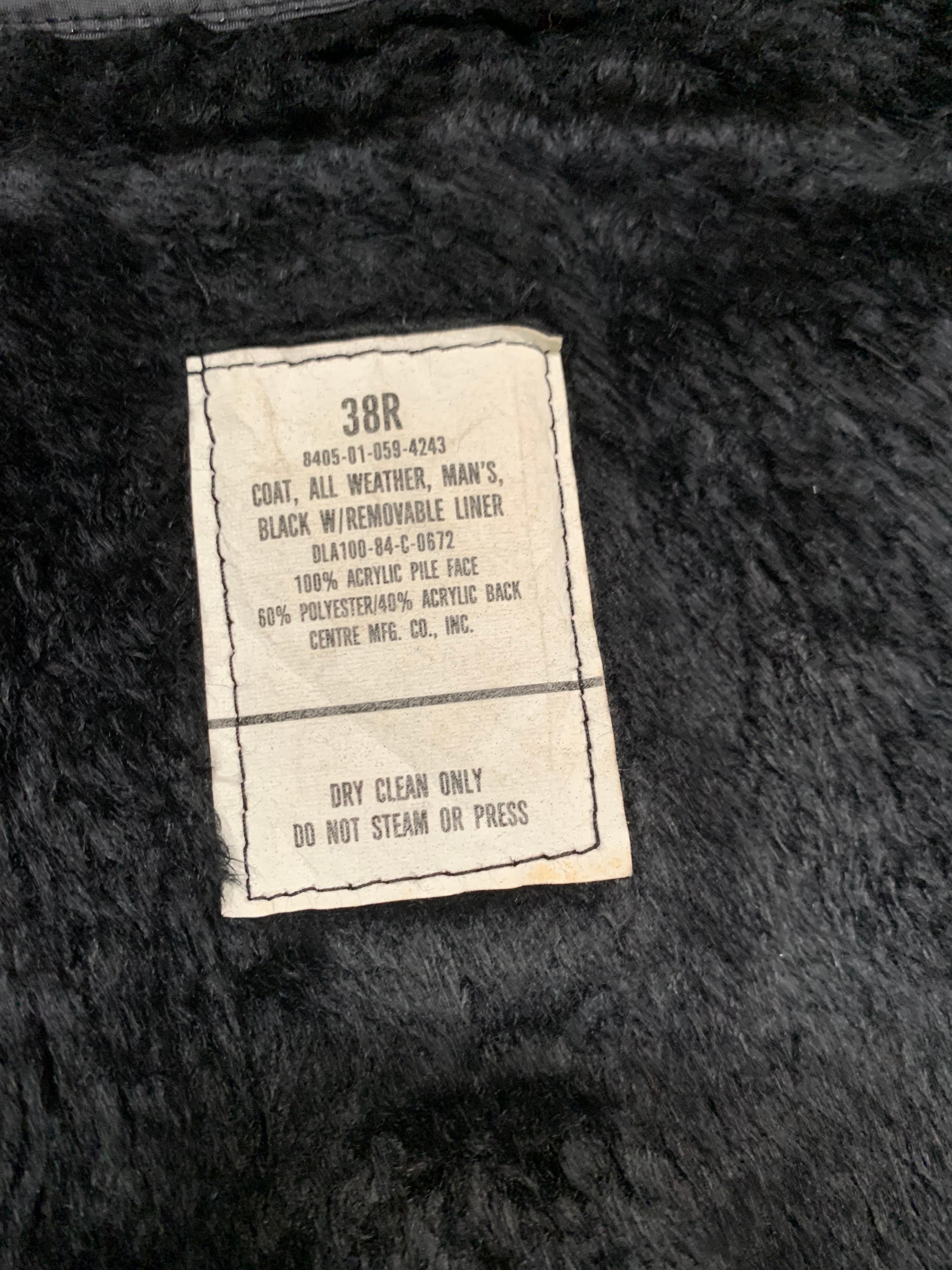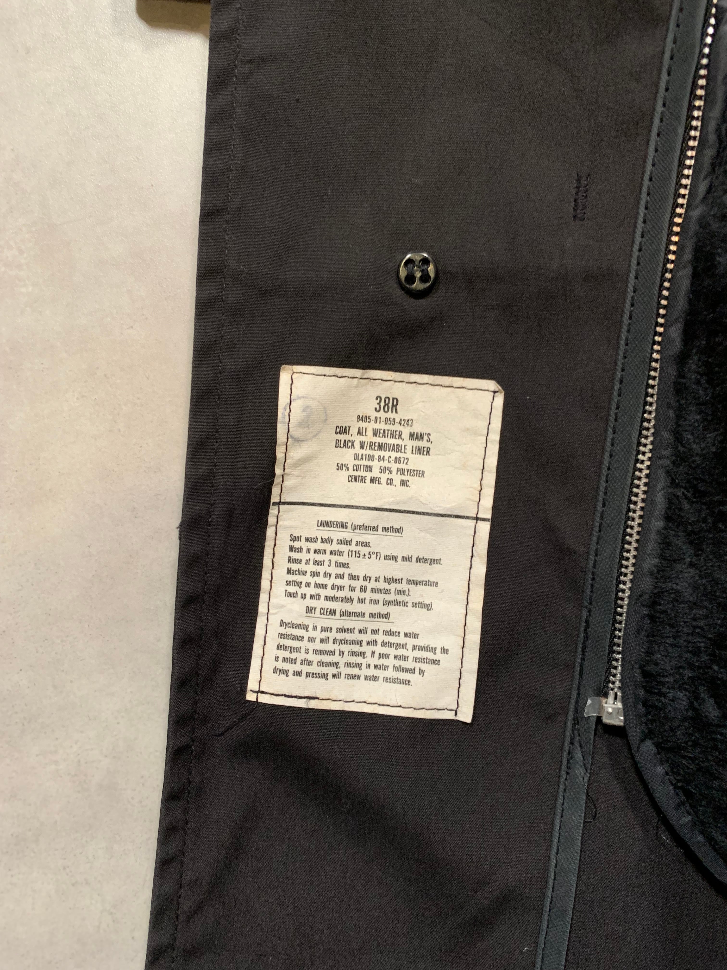 80’s “U.S.Military” Collarless All Weather Coat BLACK with Liner 38R