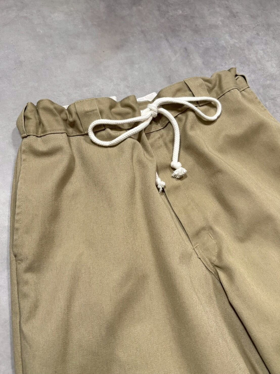 W40をピックアップし、ウエストにアルミのハトメを打ちドローコードを通しています