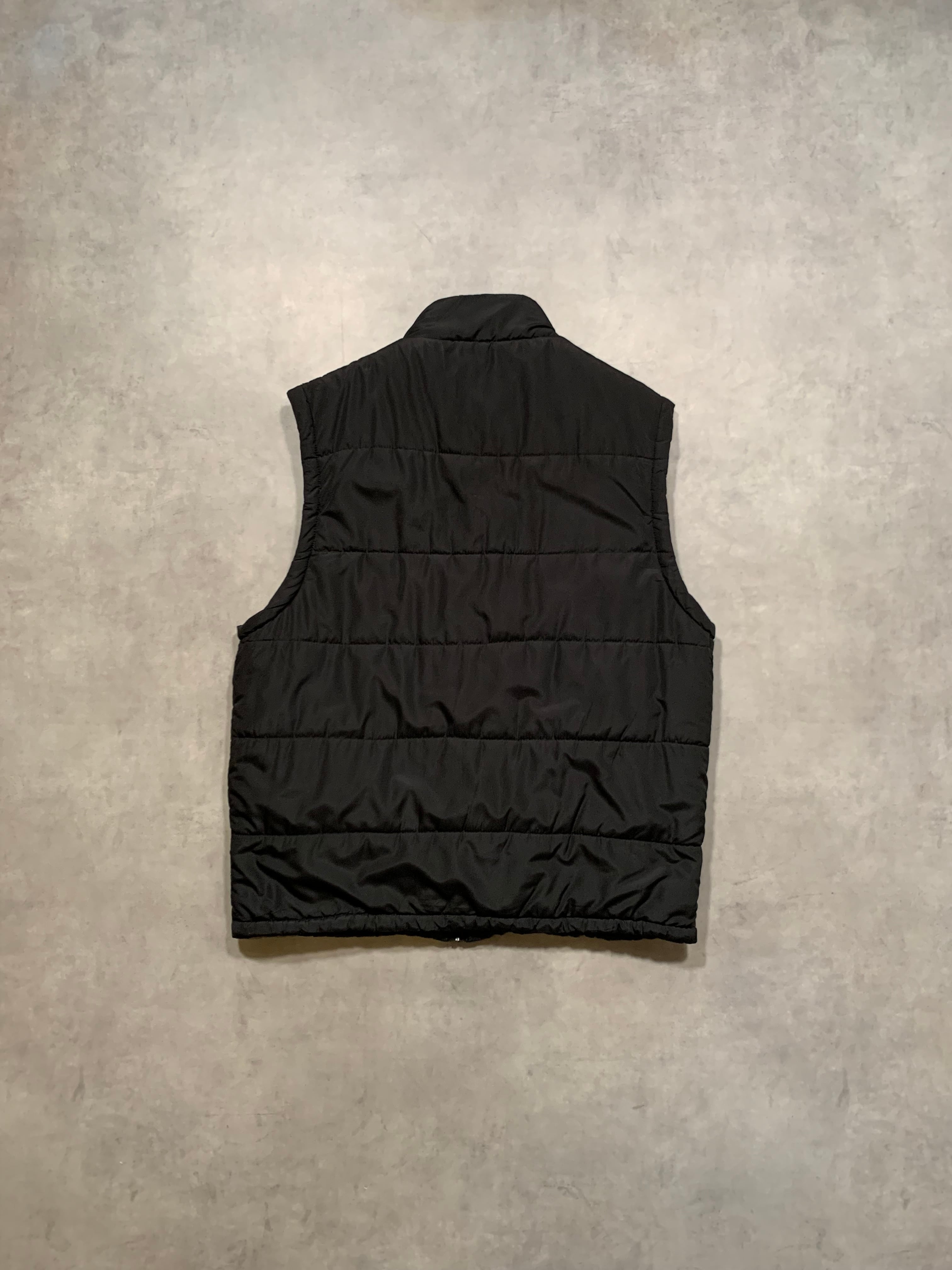 こちらは控えめなワンポイント入りの中綿ベストです