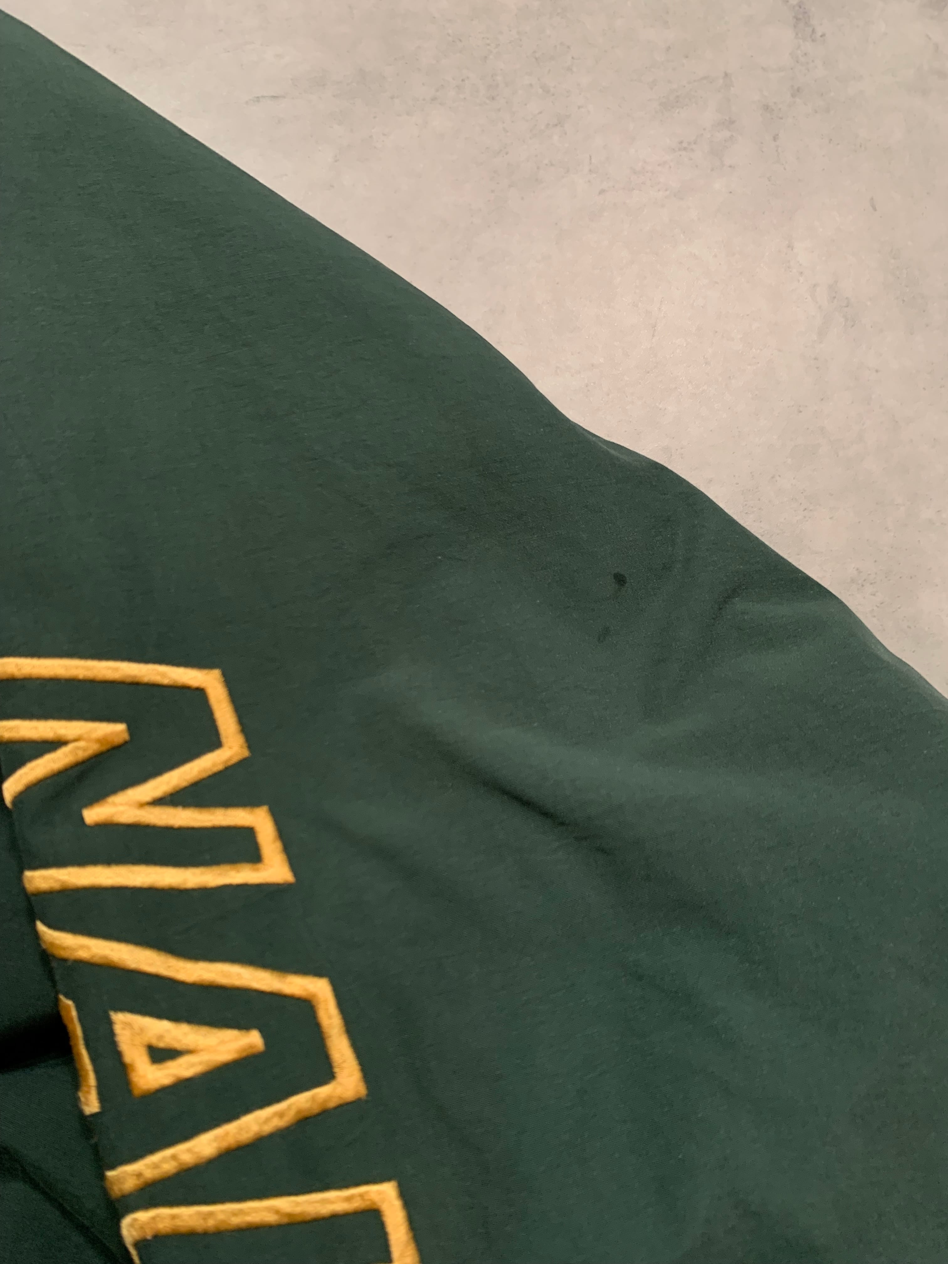 ダークグリーンを基調に袖の切り替えや刺繍が豪華な仕様の1着、対して裏面はフリース仕様でロゴ刺繍が入るシンプルなデザイン