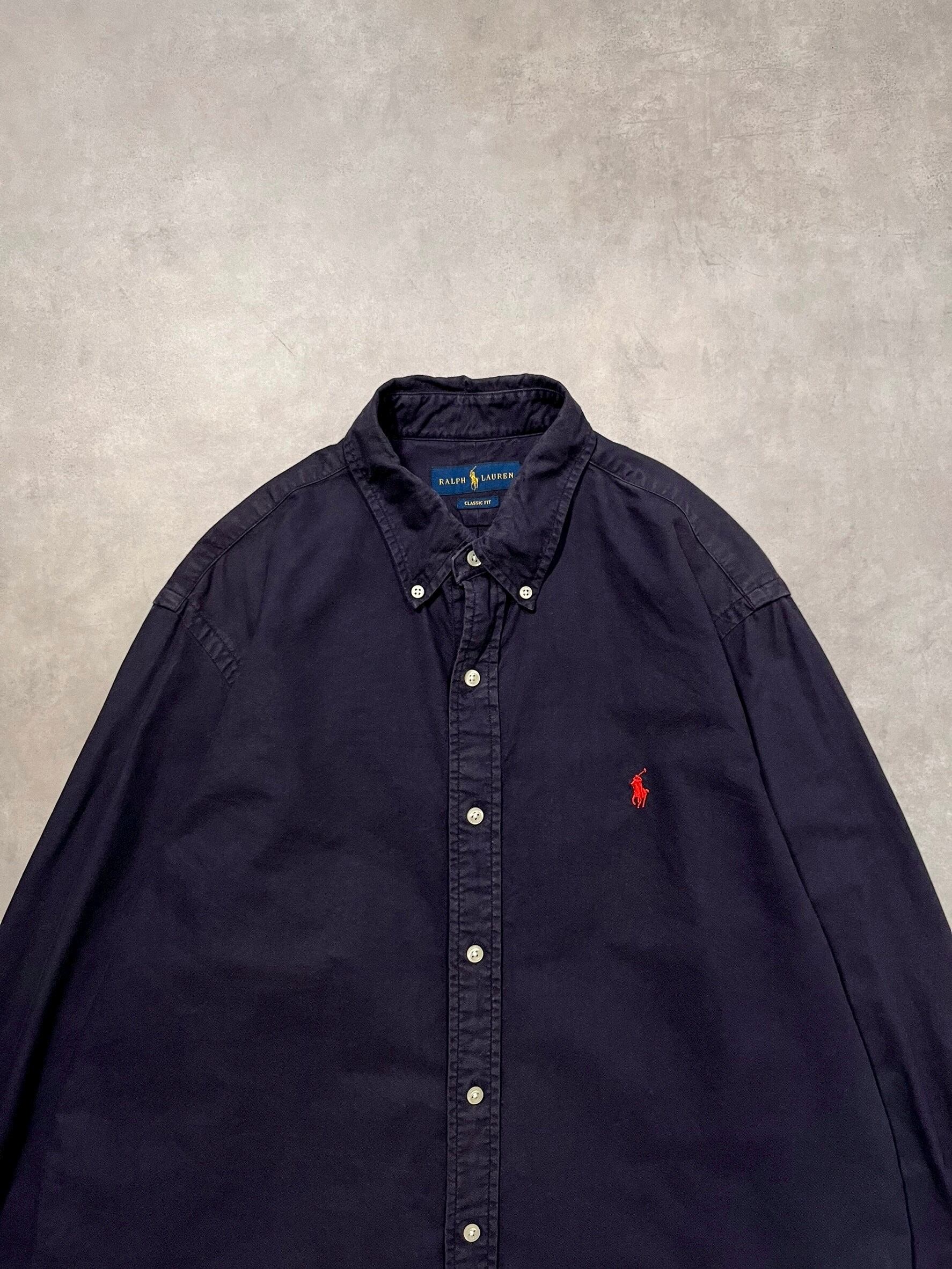 “RALPH LAUREN” L/S One Point Shirt CLASSIC FIT NAVY L