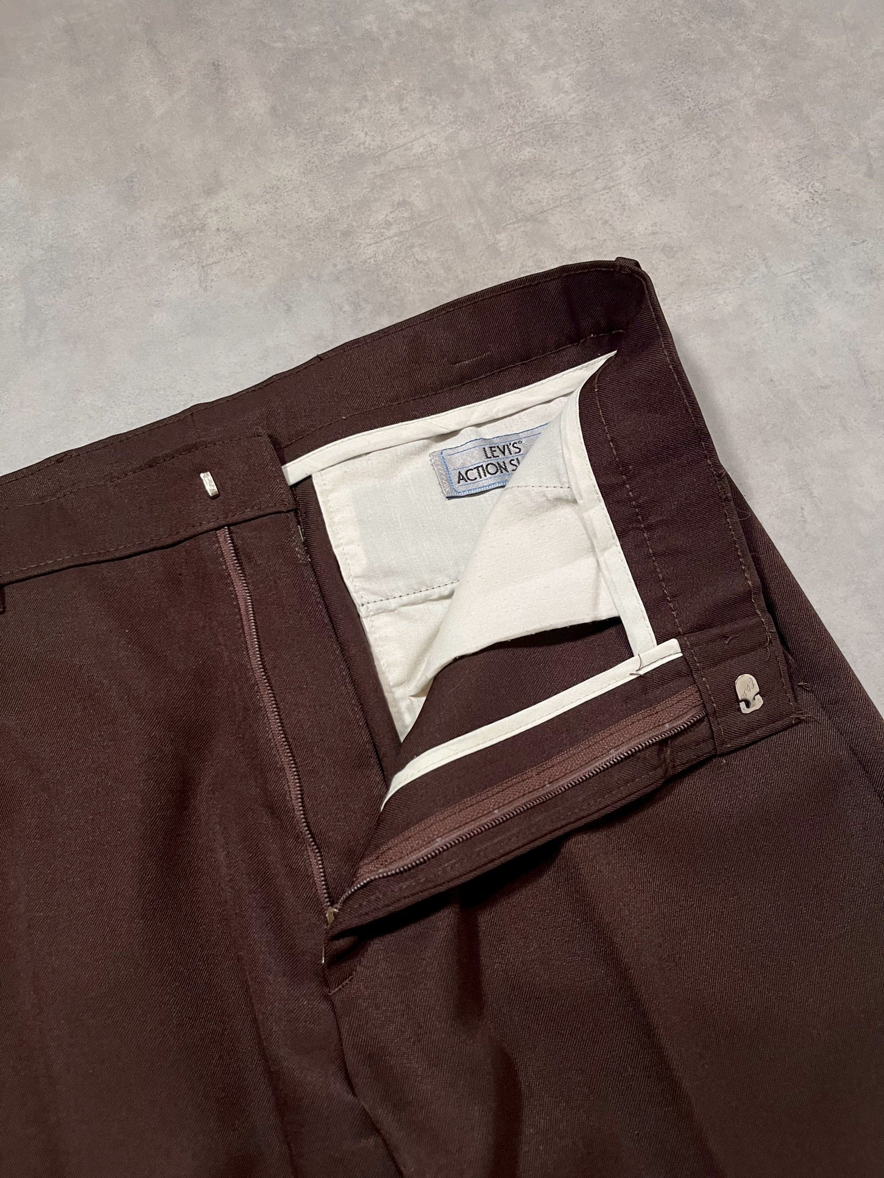 80’s “Levi’s” Action Slacks TALON ZIP BROWN 32×30