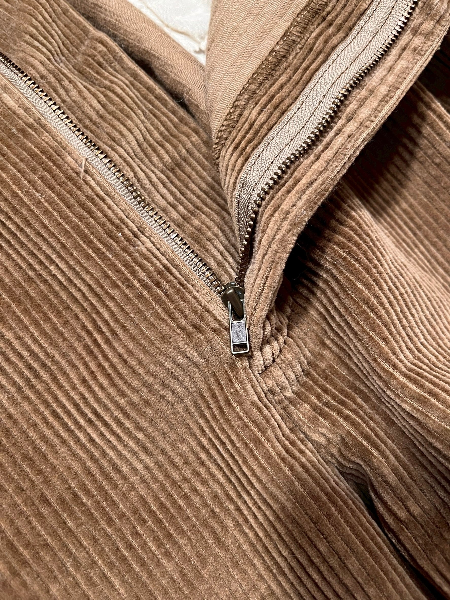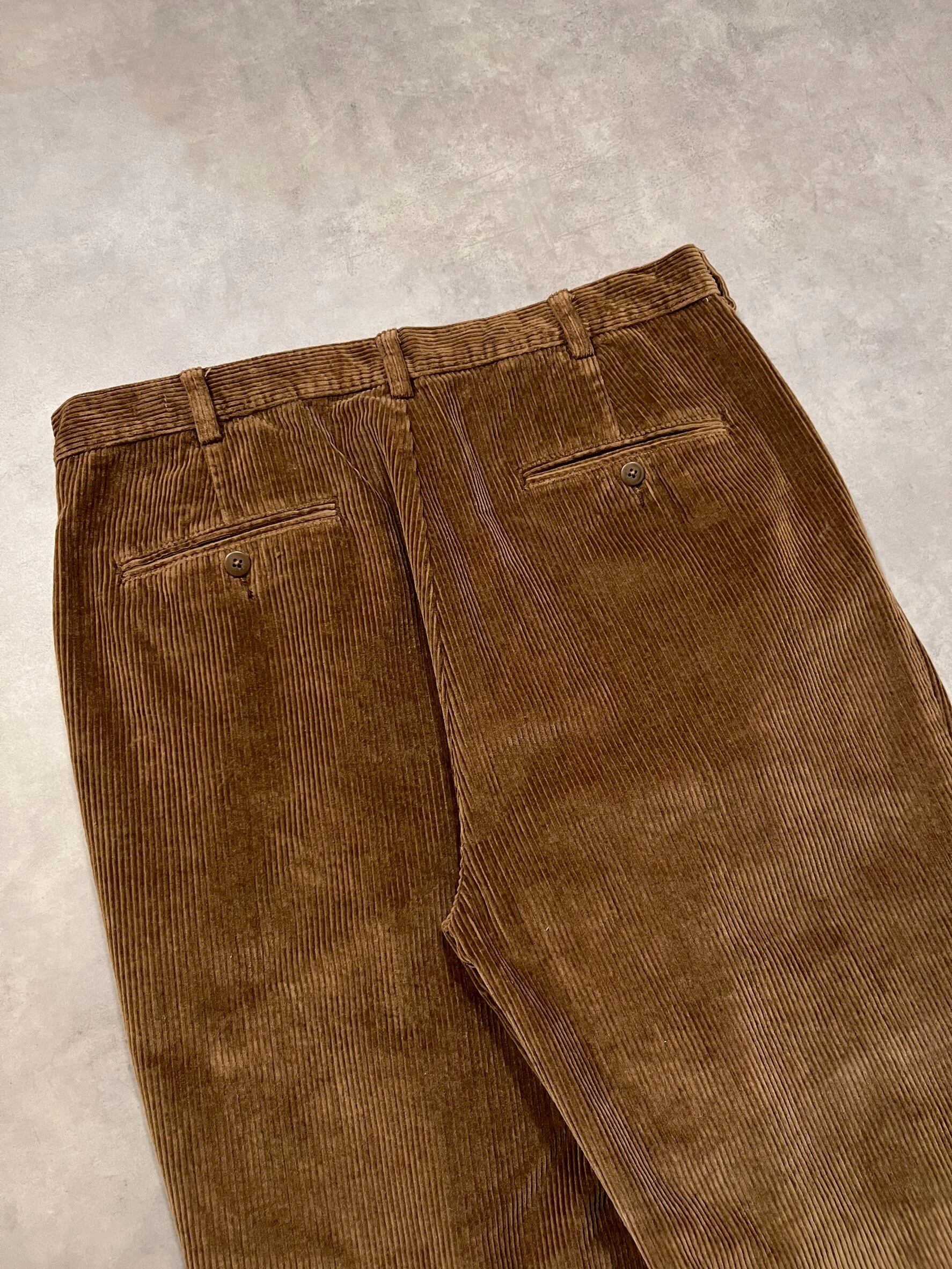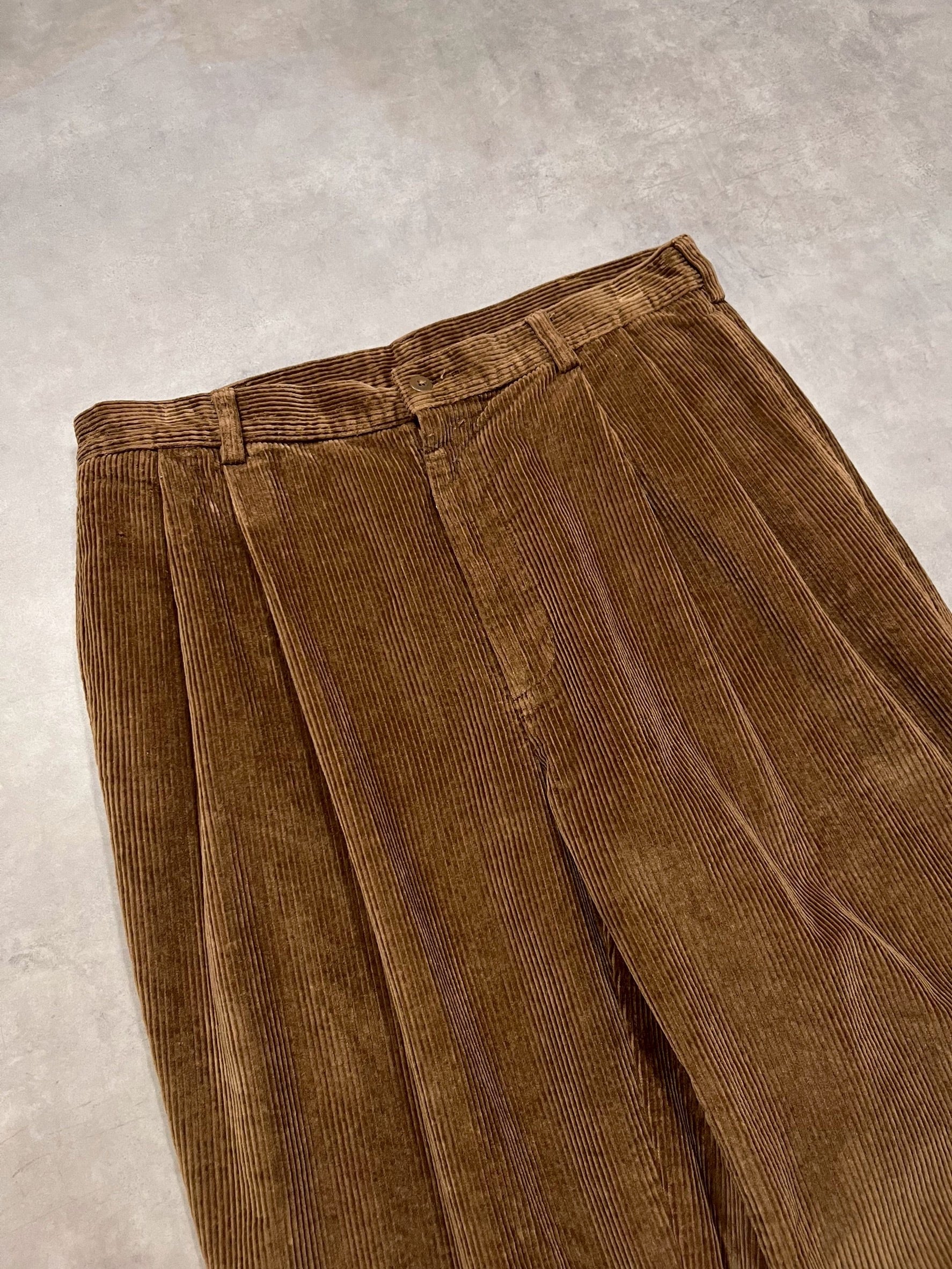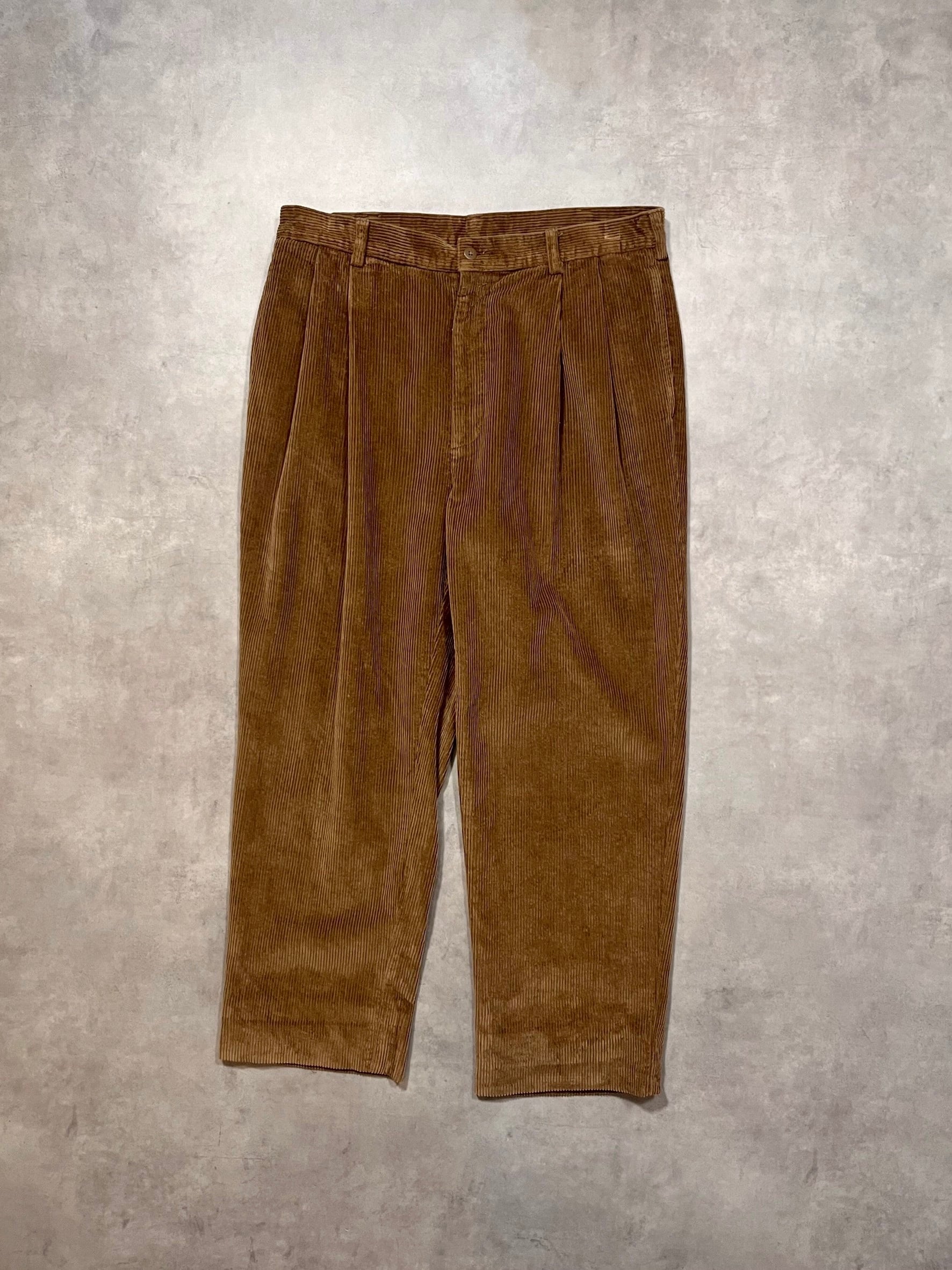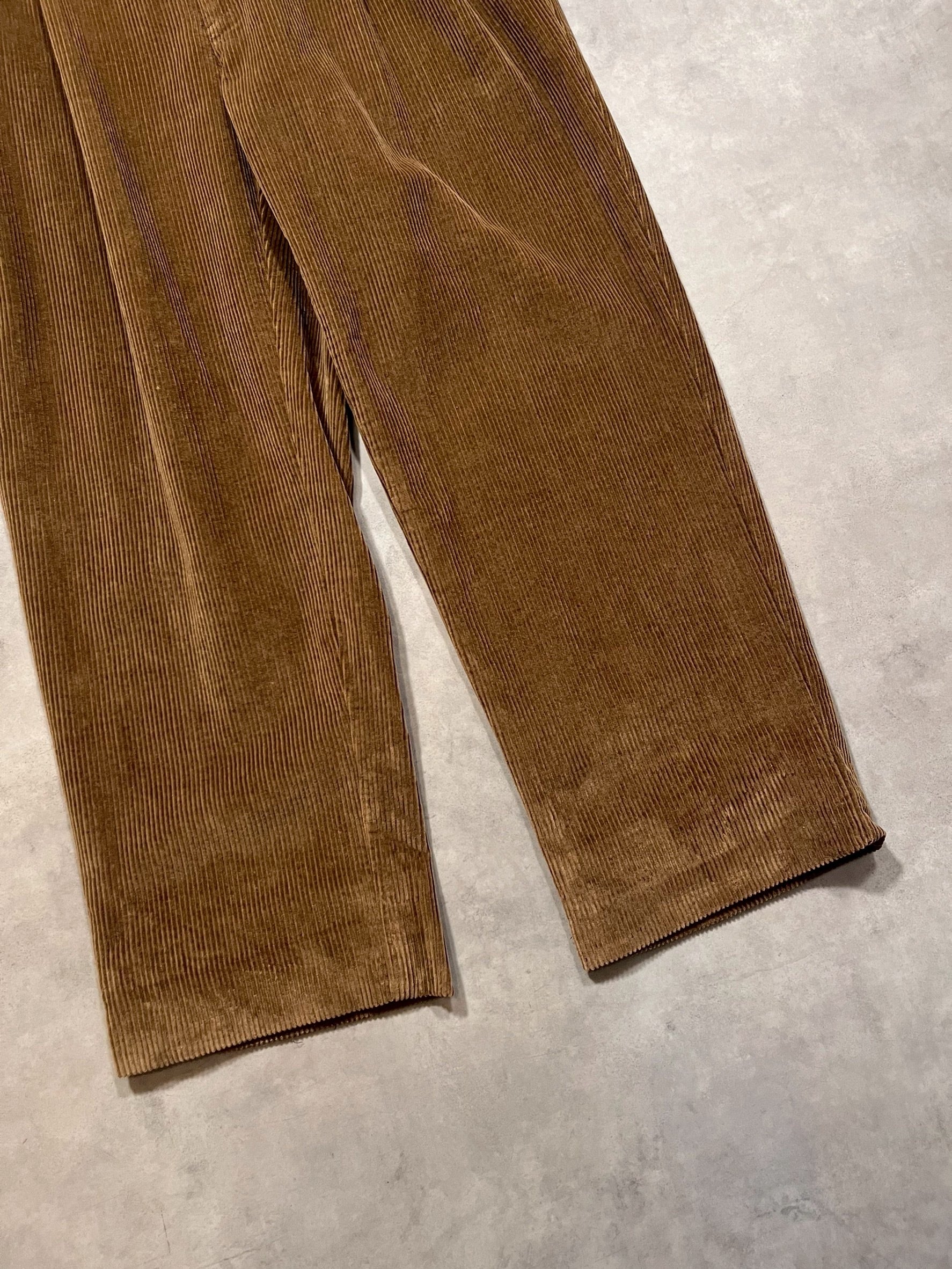 ライトブラウンの太畝コーデュロイが雰囲気良く、2タックのゆとりのあるシルエットもとても良いです