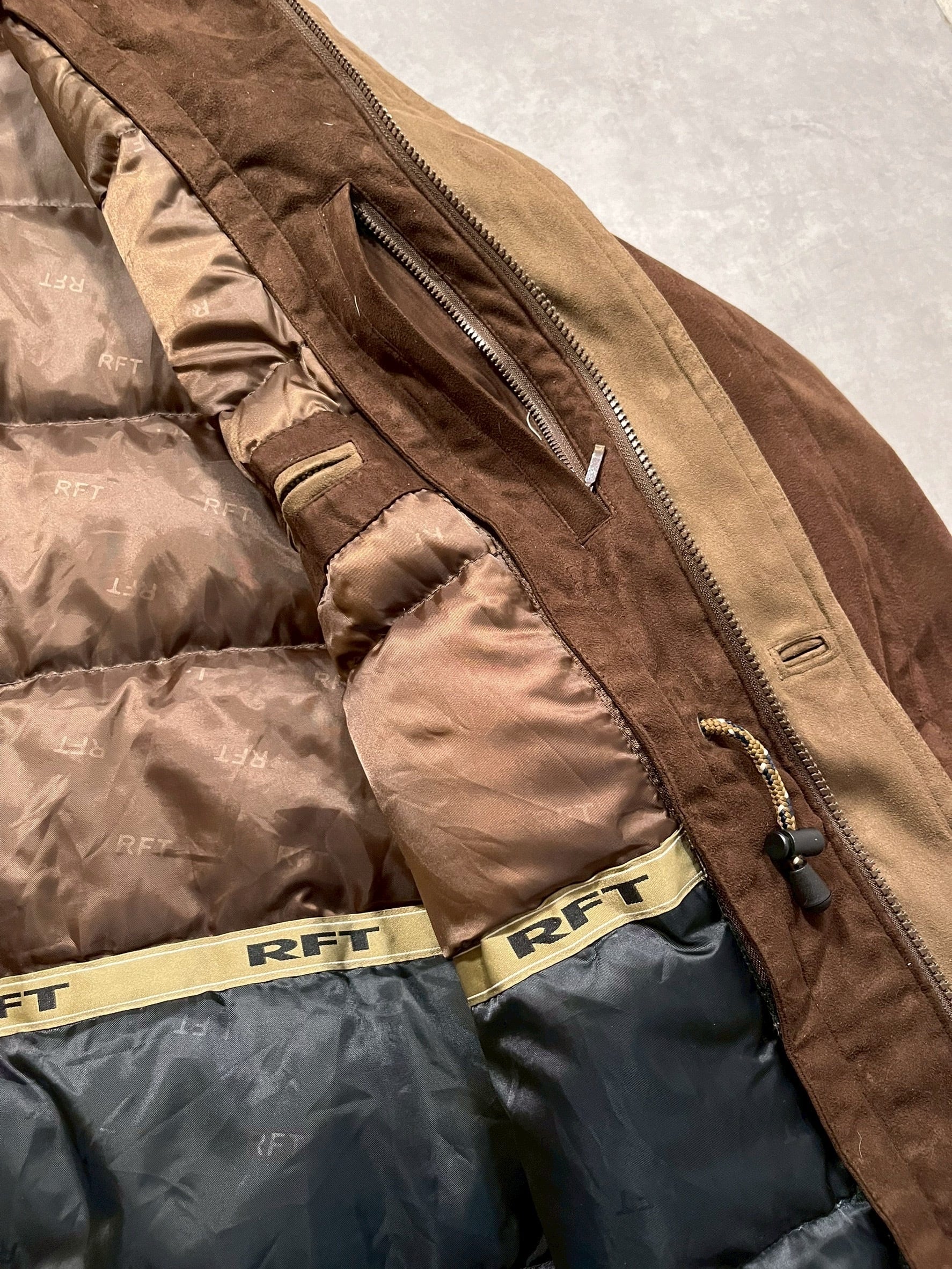 “RAINFOREST” Faux Suede Jacket with Down Liner