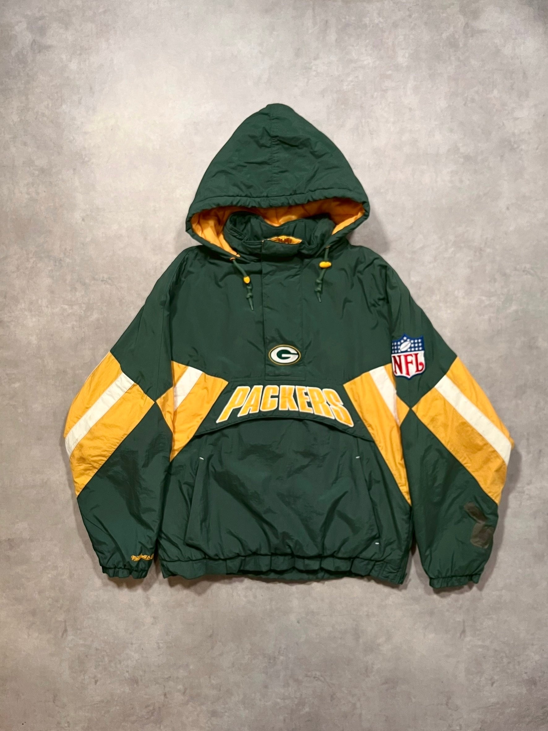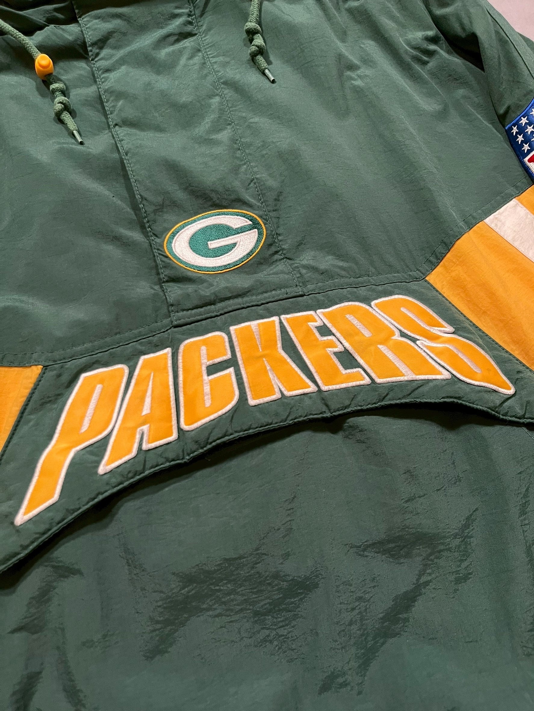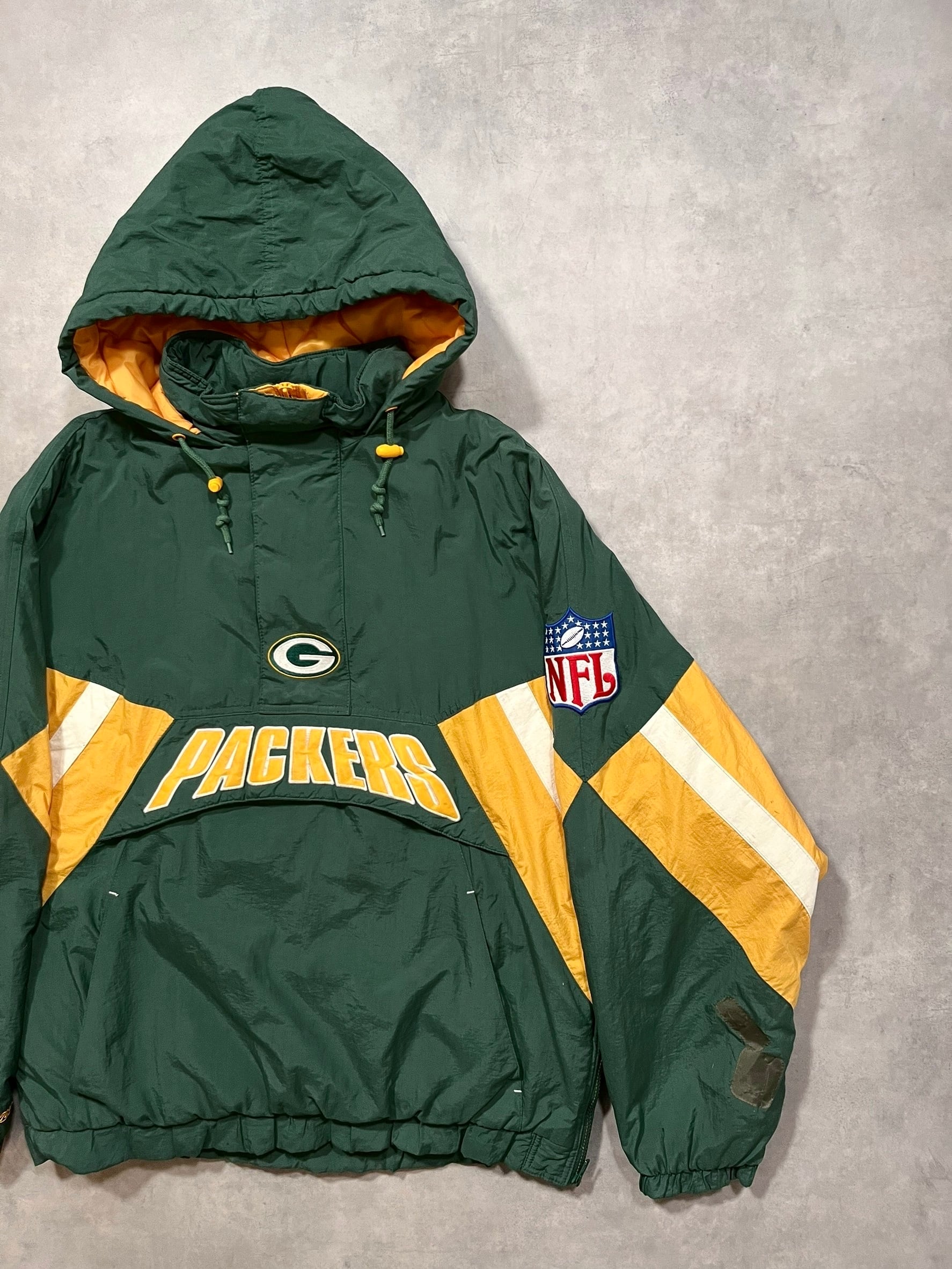 ウィスコンシン州グリーンベイに本拠地をおくNFLチームであるグリーンベイ・パッカーズの中綿プルオーバーナイロンジャケットです