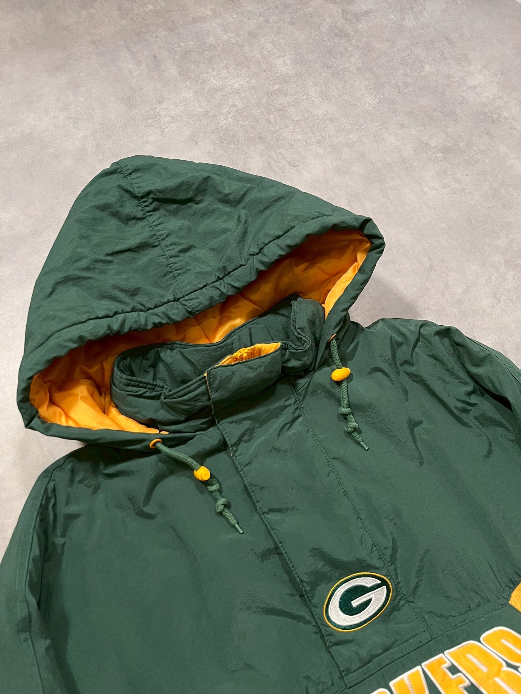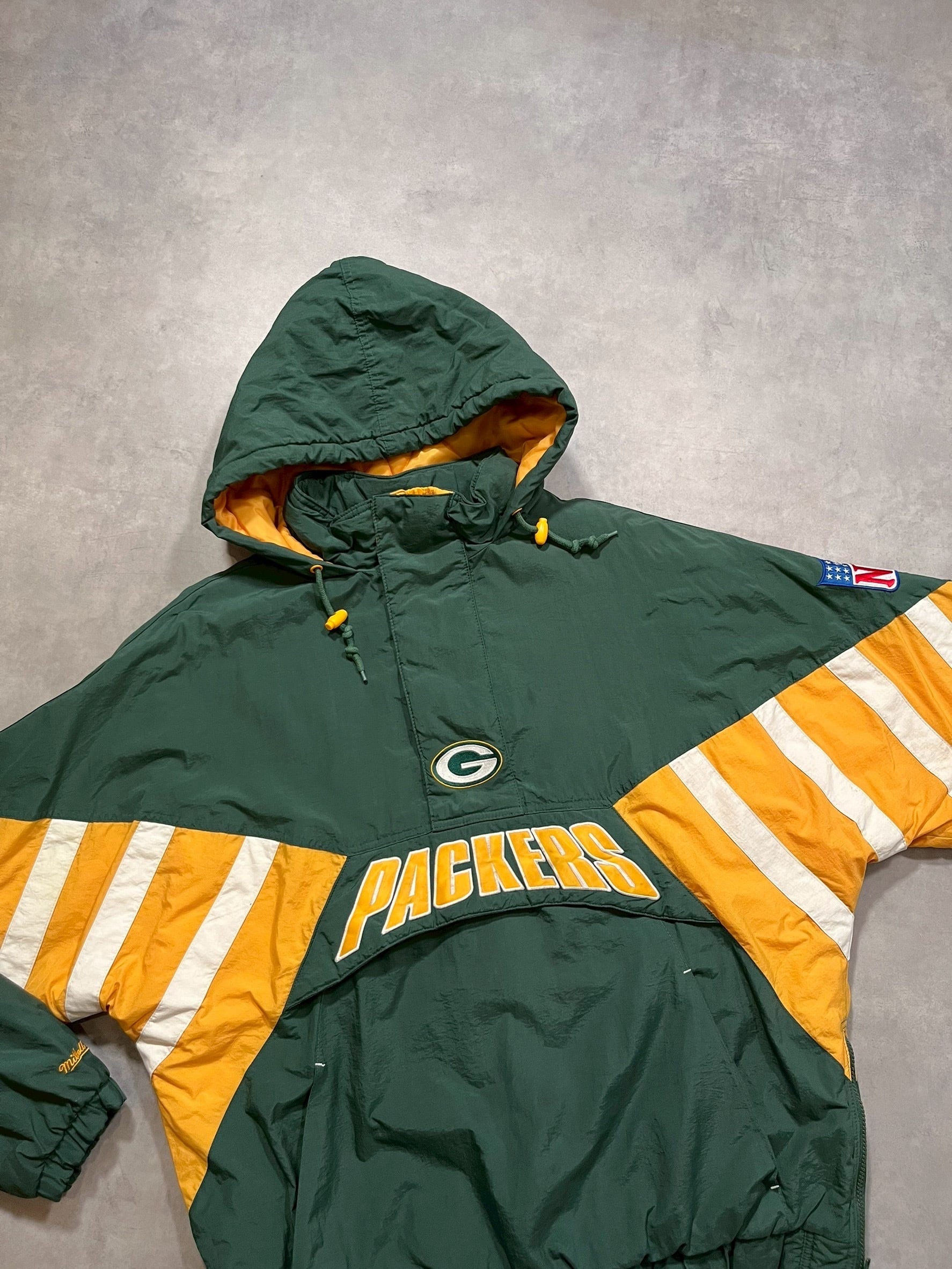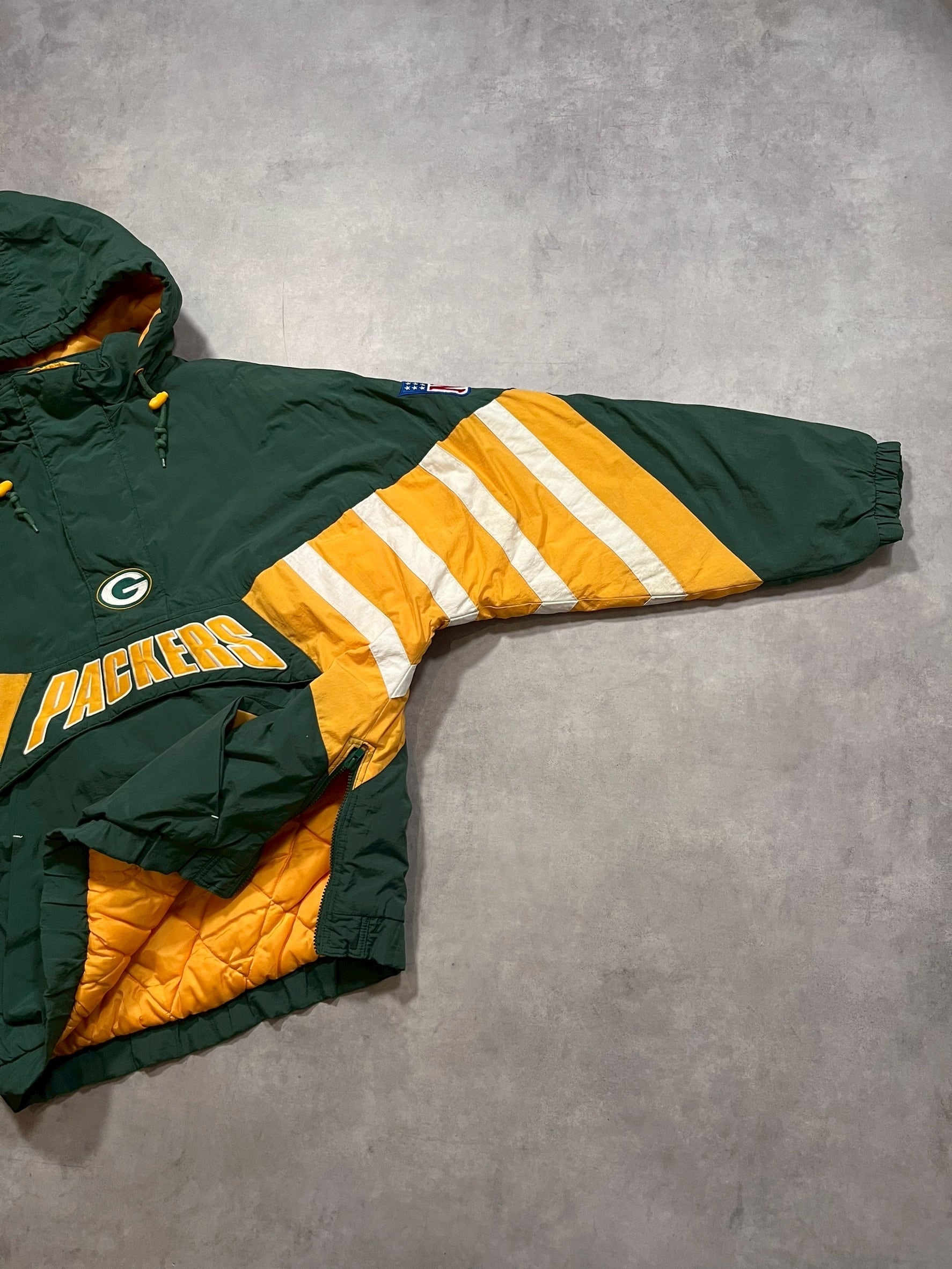 ウィスコンシン州グリーンベイに本拠地をおくNFLチームであるグリーンベイ・パッカーズの中綿プルオーバーナイロンジャケットです