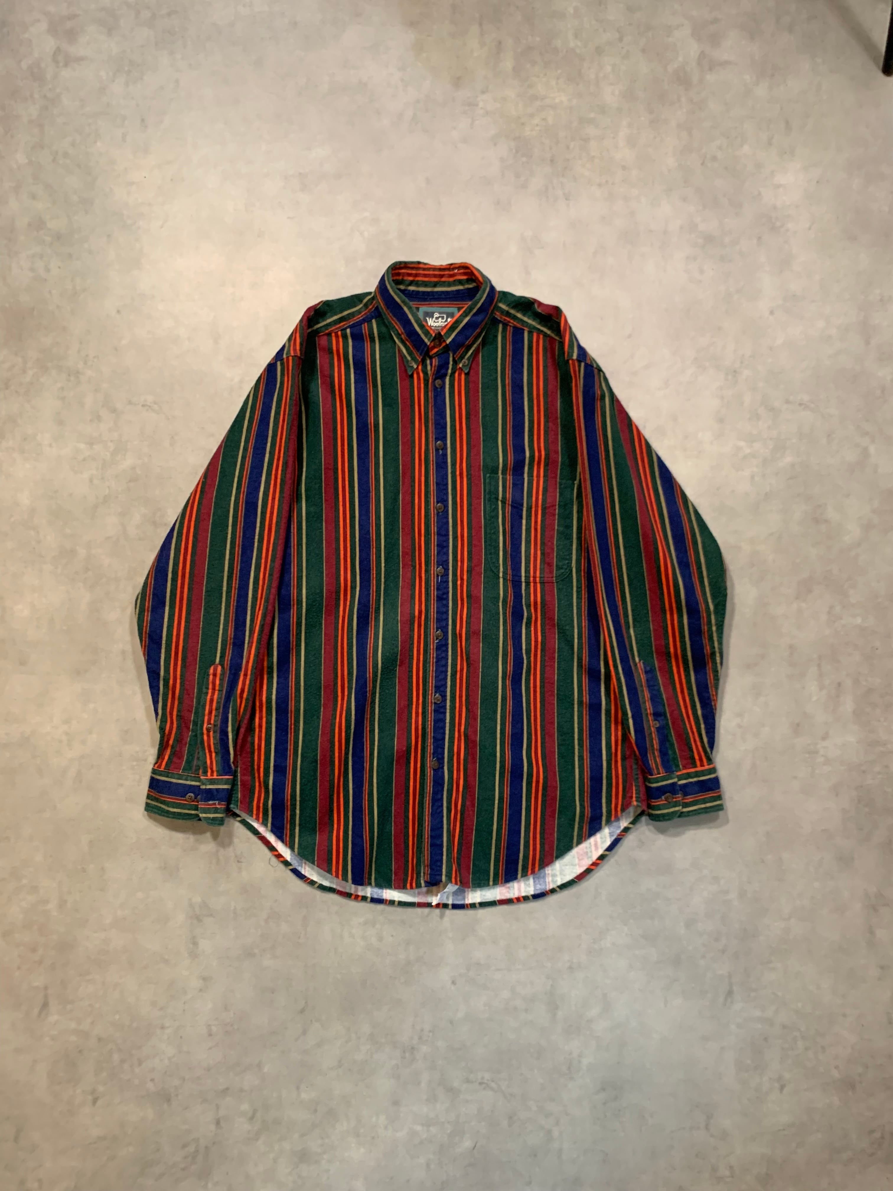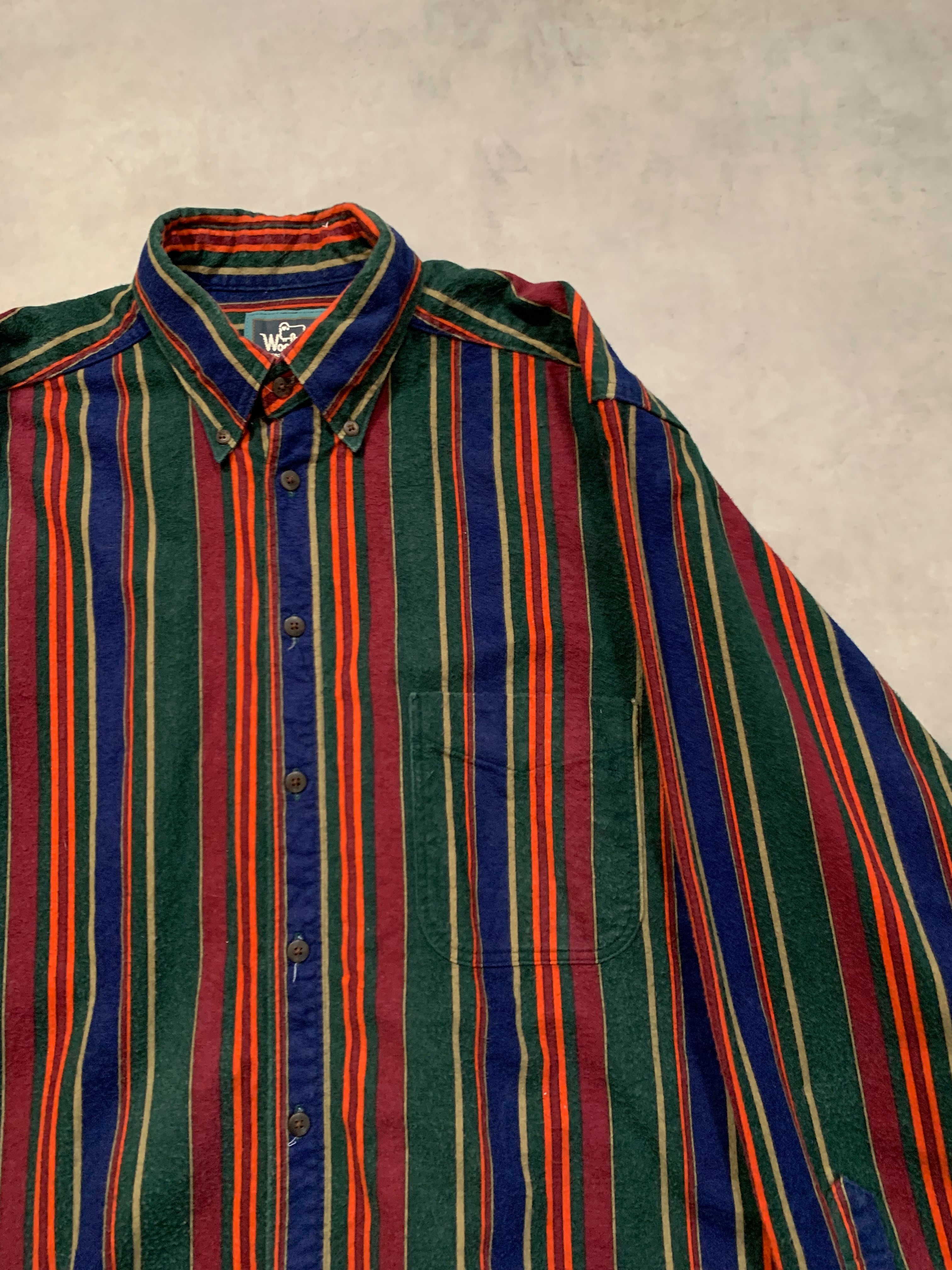 90’s "Woolrich" L/S Stripe Chamois Cloth Shirt Made in USA