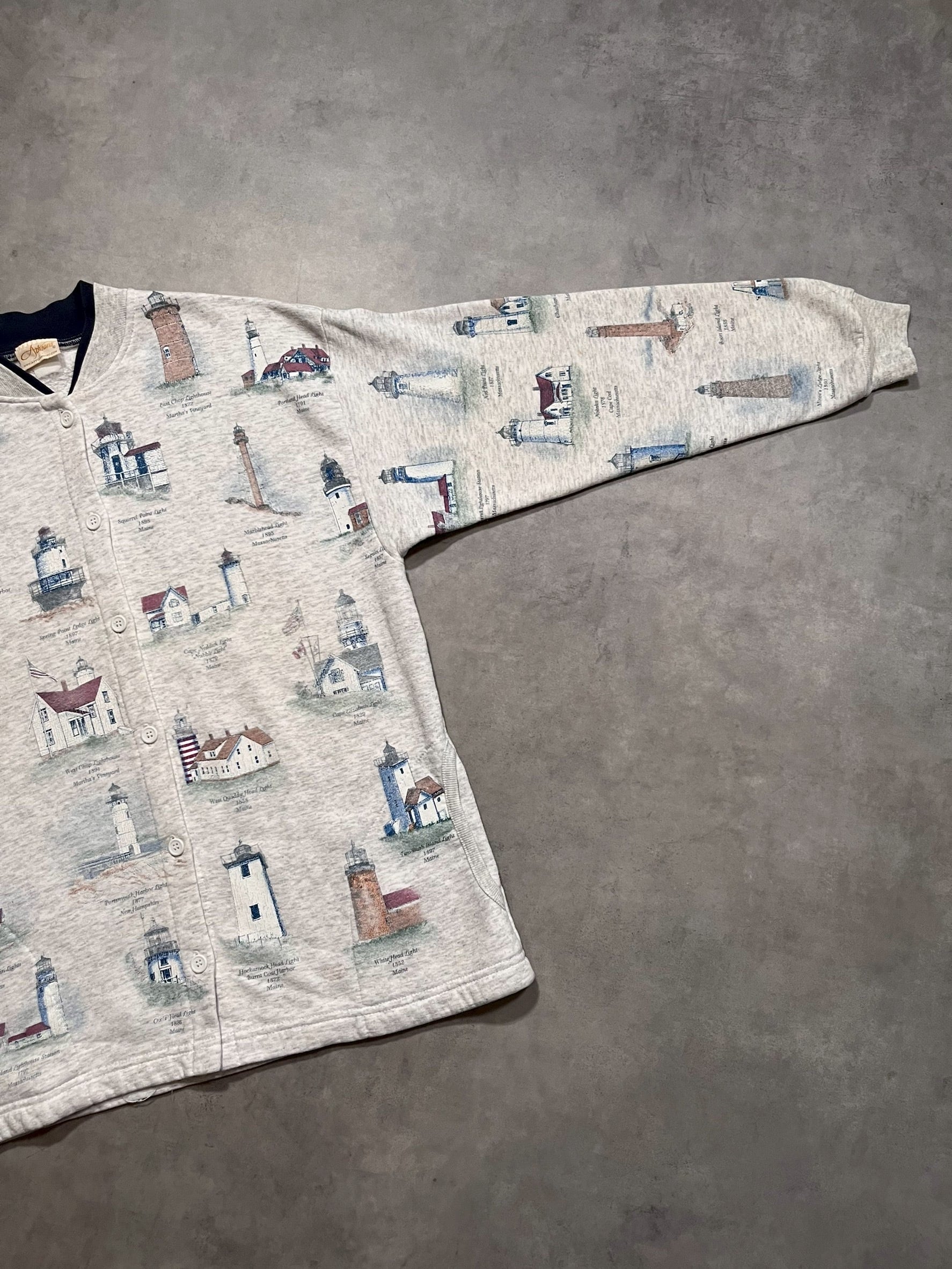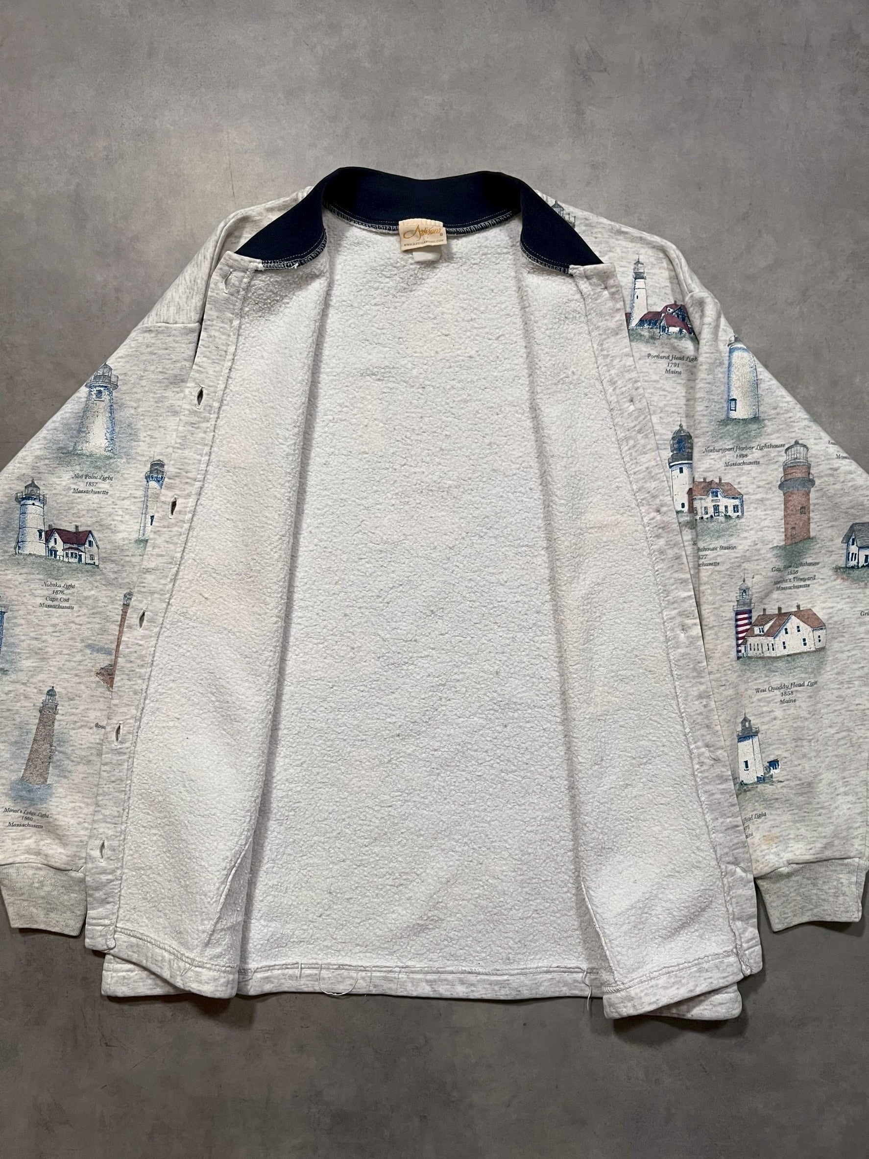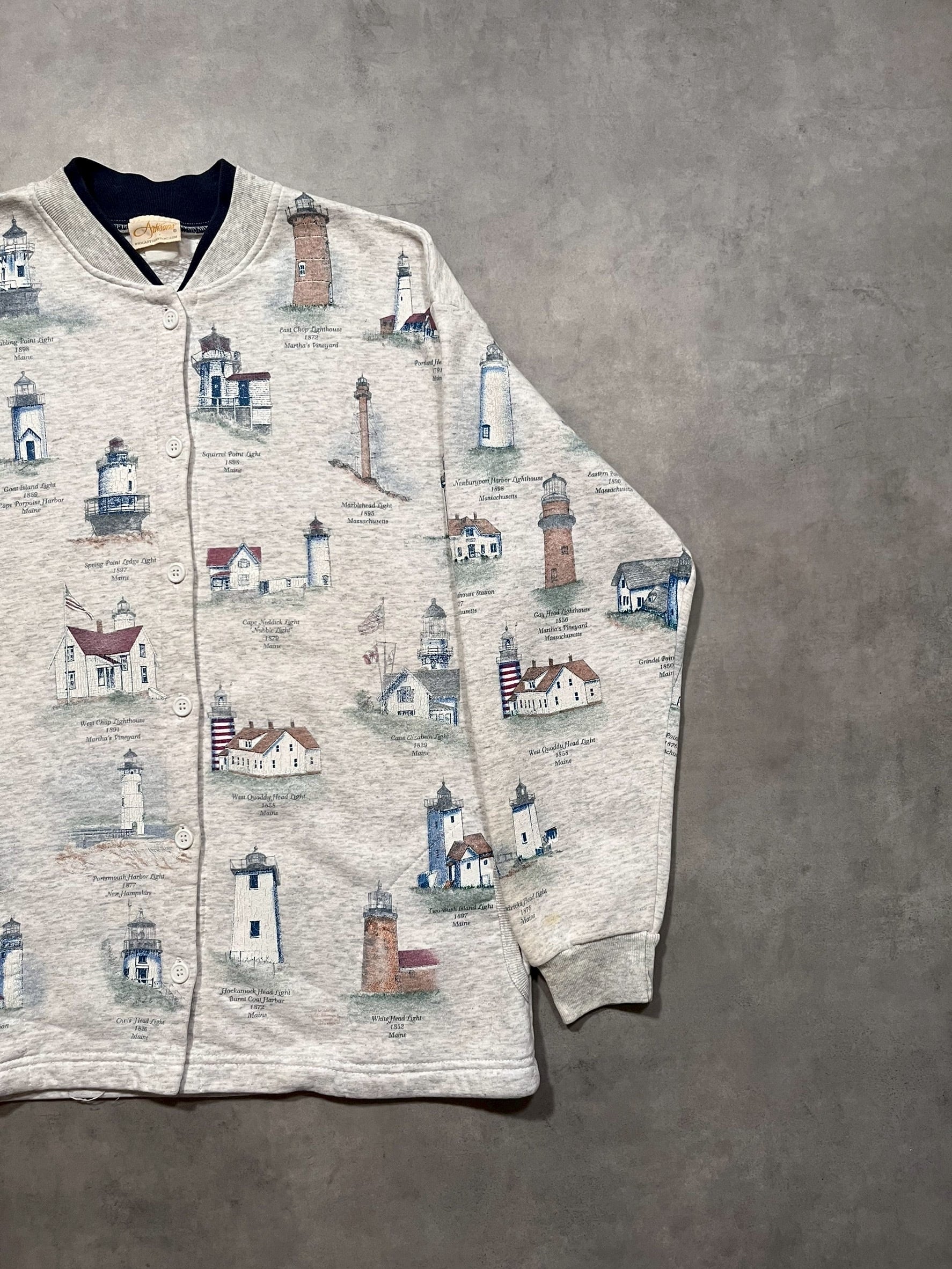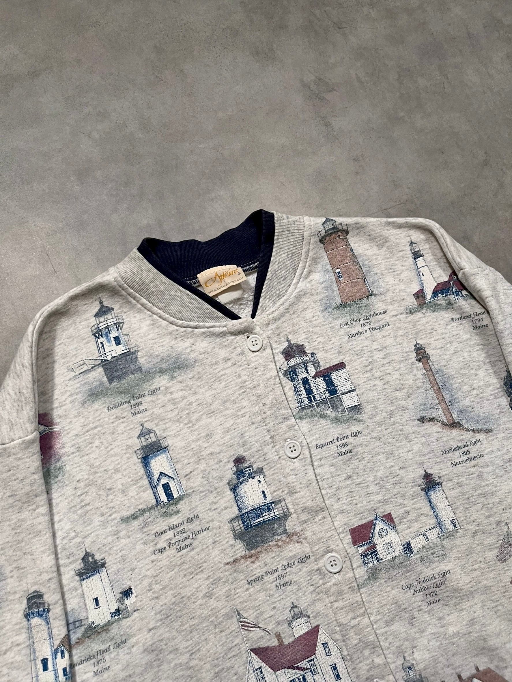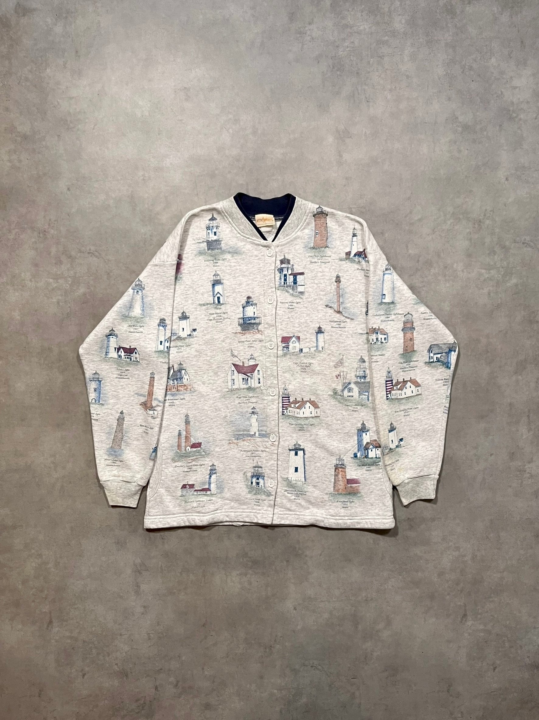 90’s “Artisans” Light Houses Pattern Sweat Cardigan