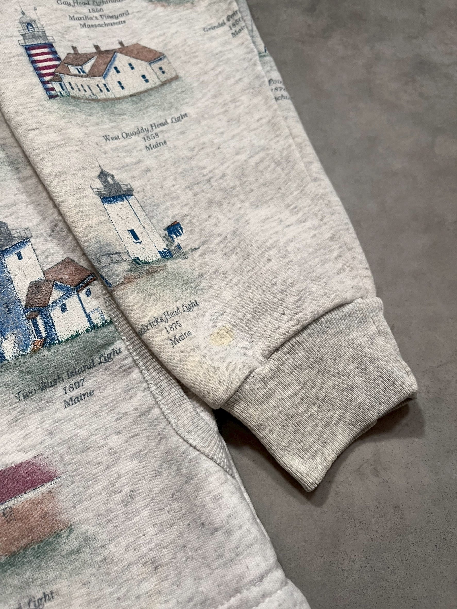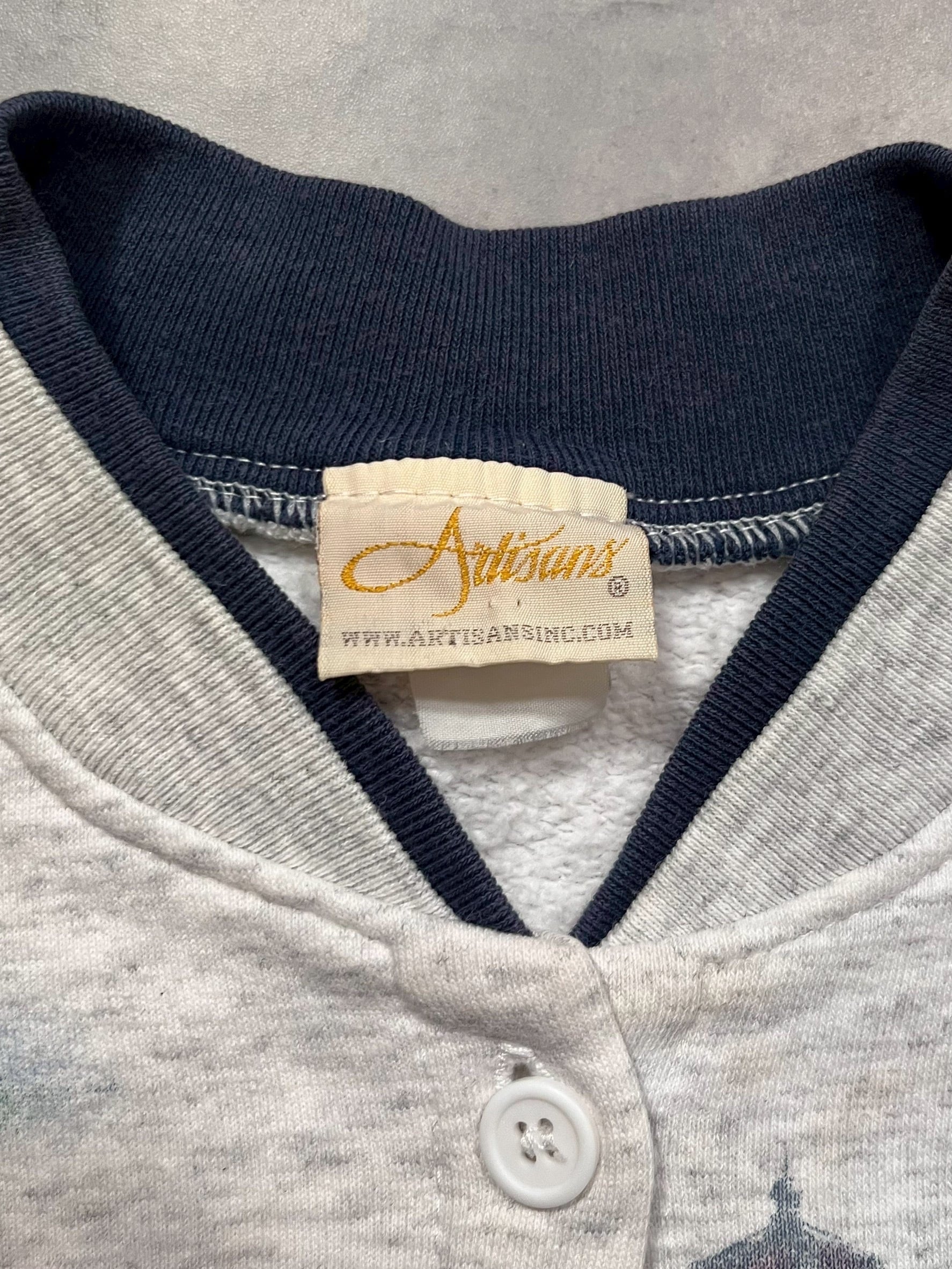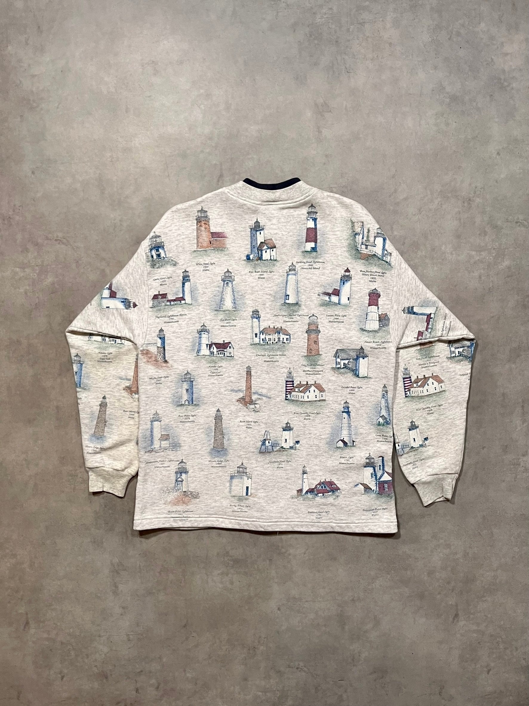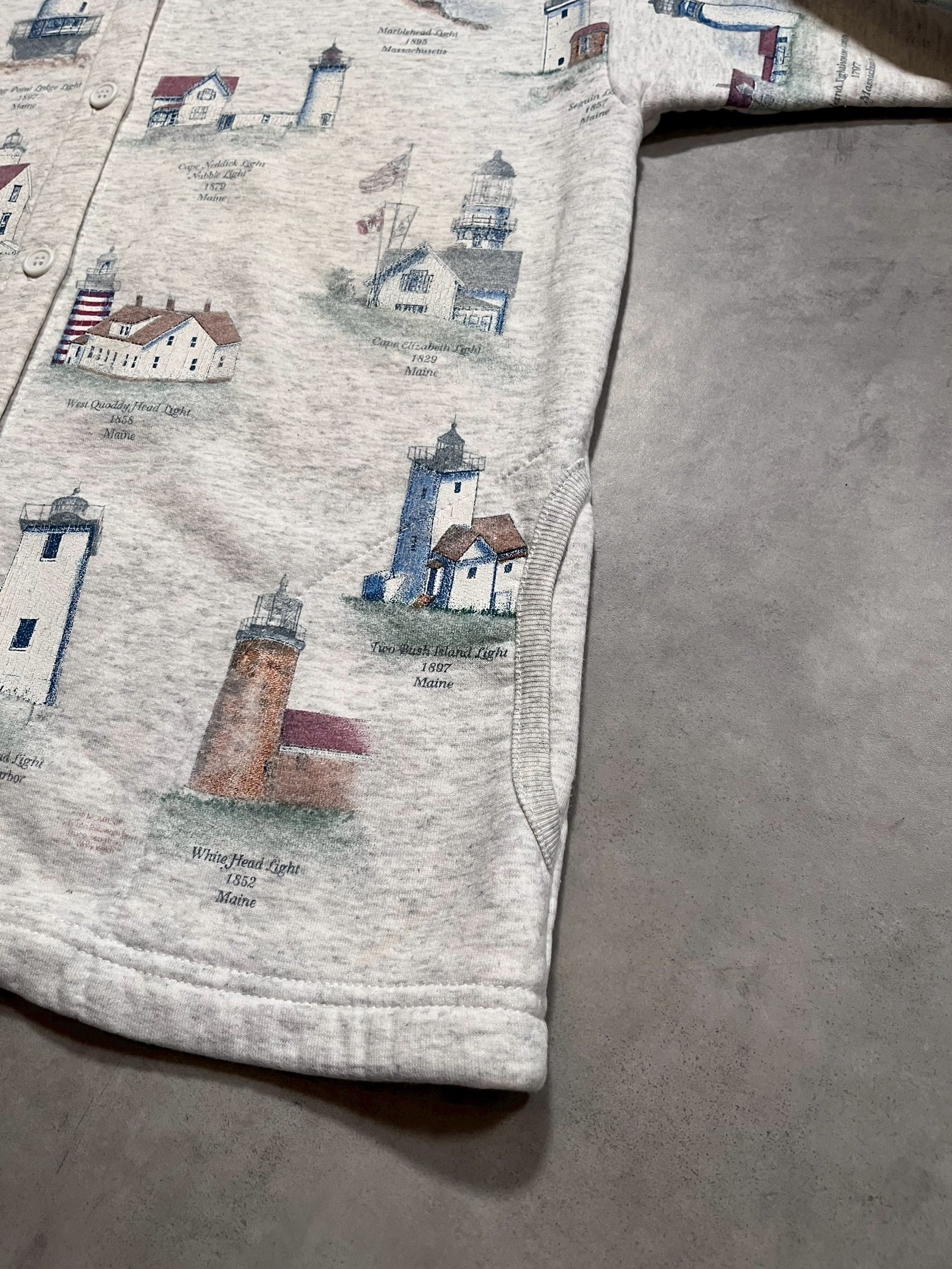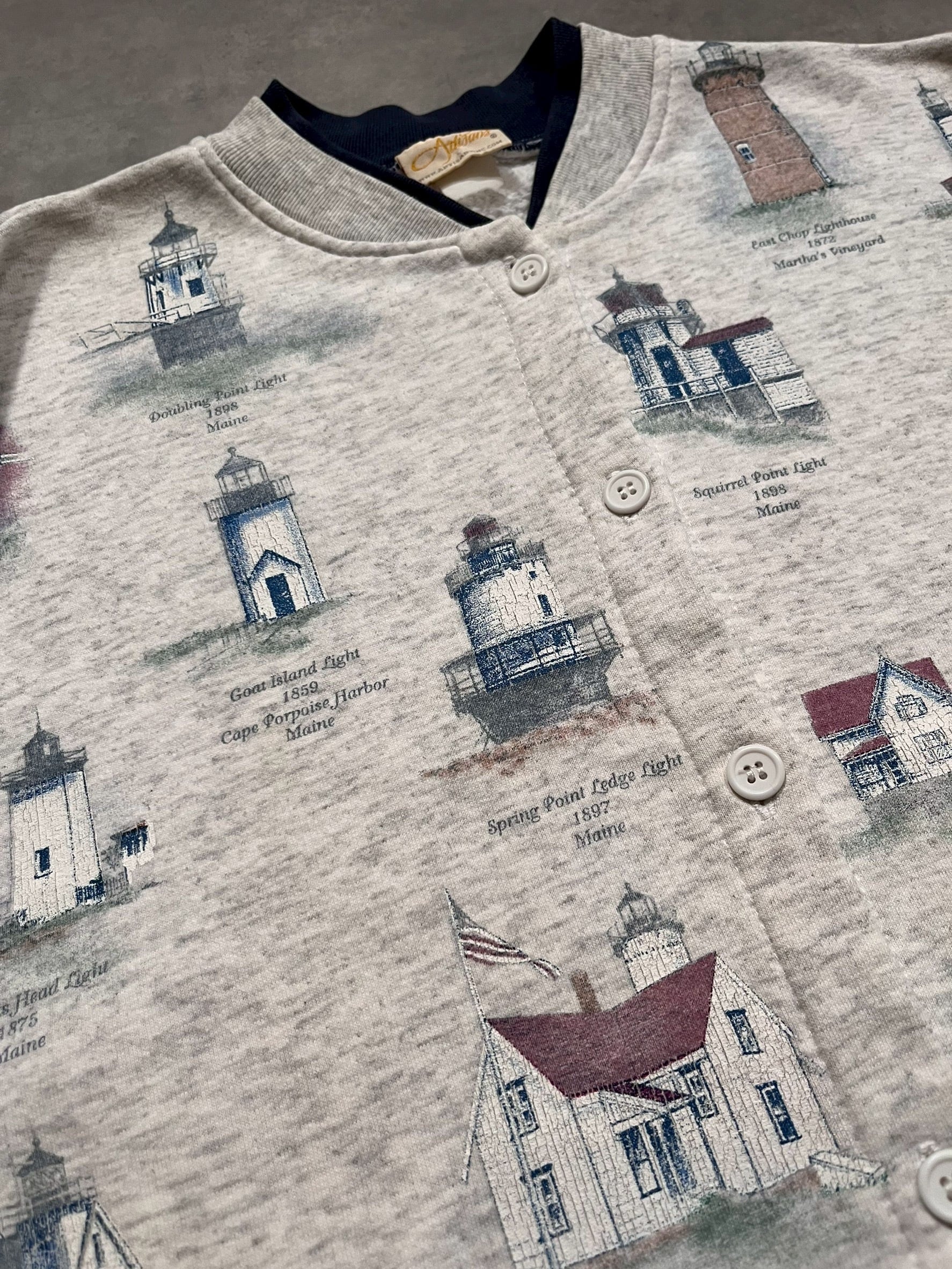 90’s “Artisans” Light Houses Pattern Sweat Cardigan