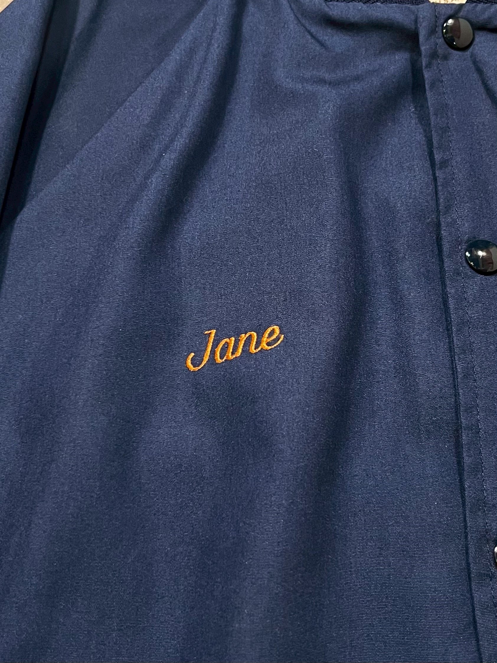 右胸にはネーム刺繍が入ることからスタッフが着用していたアイテムだと思われます