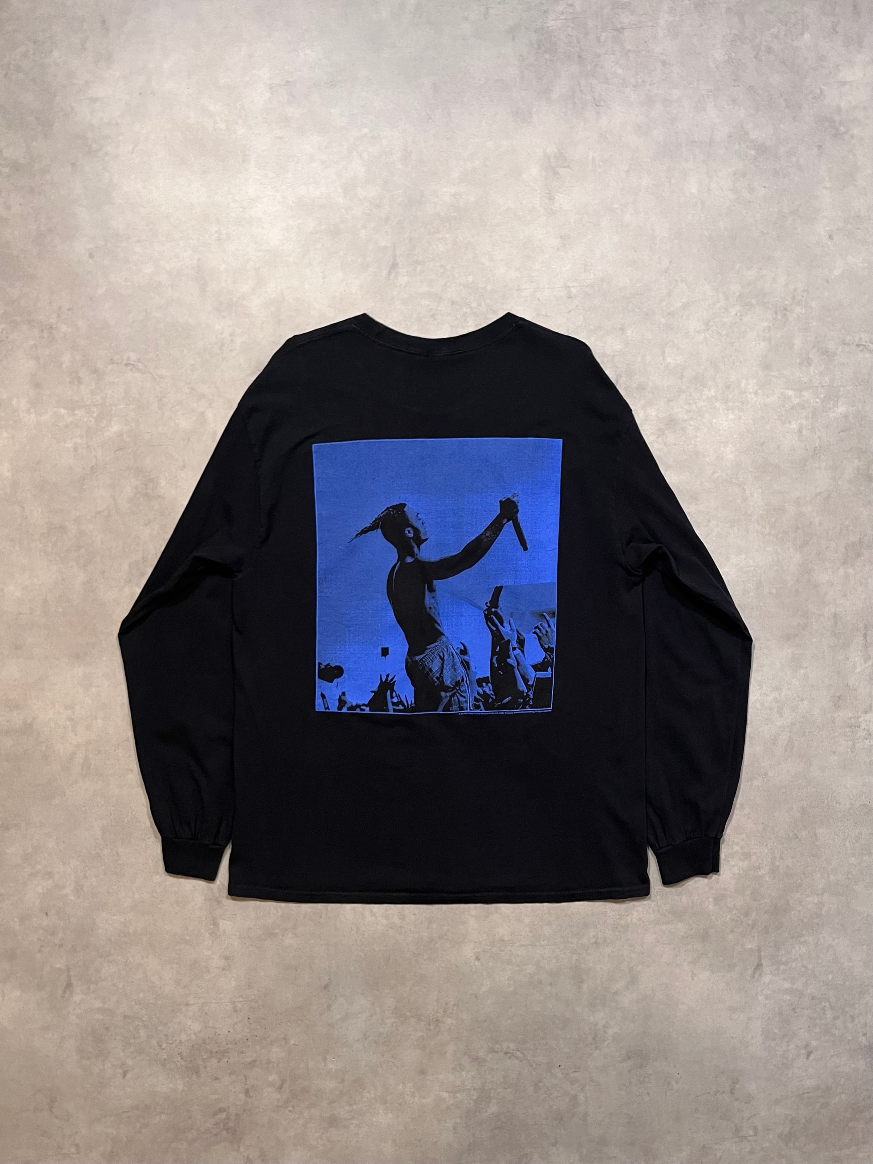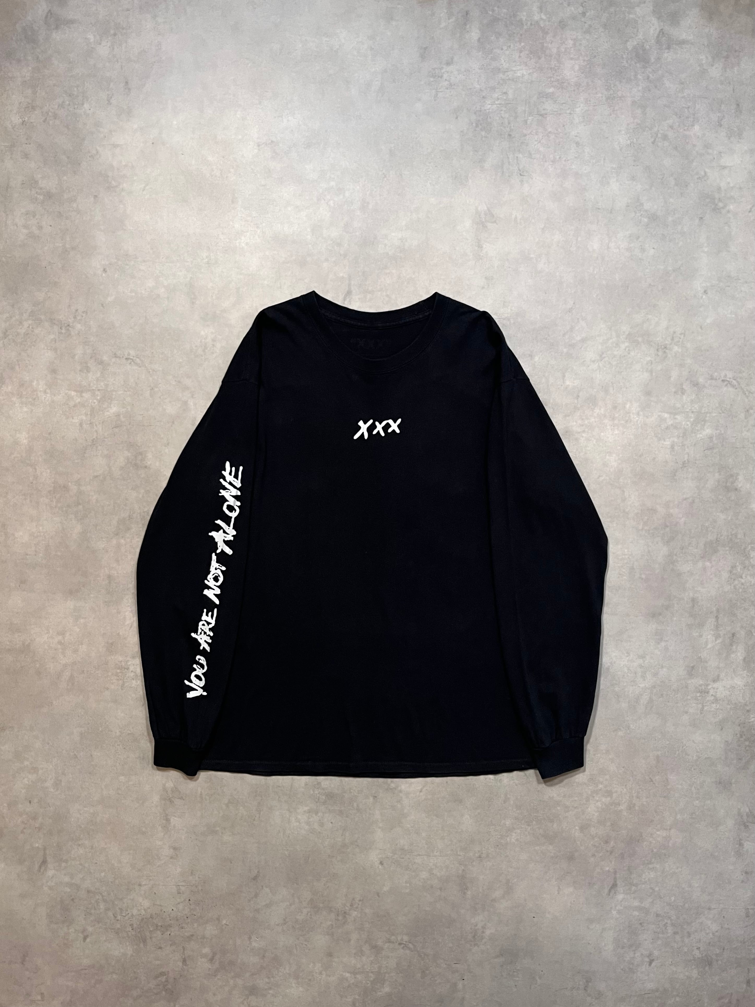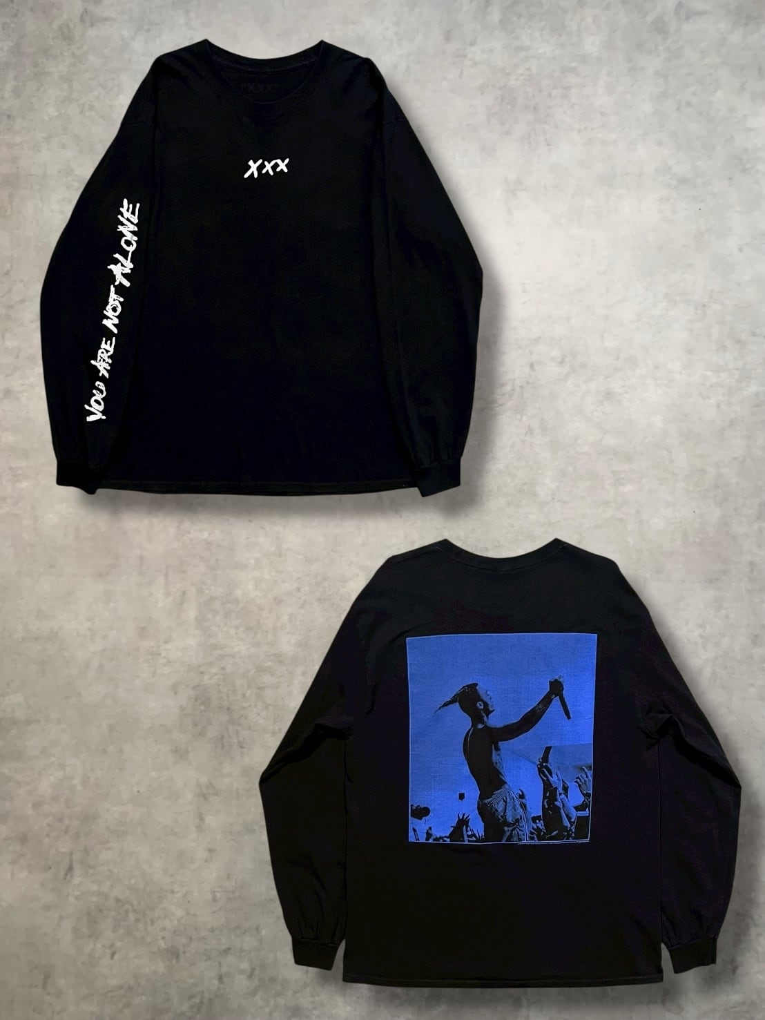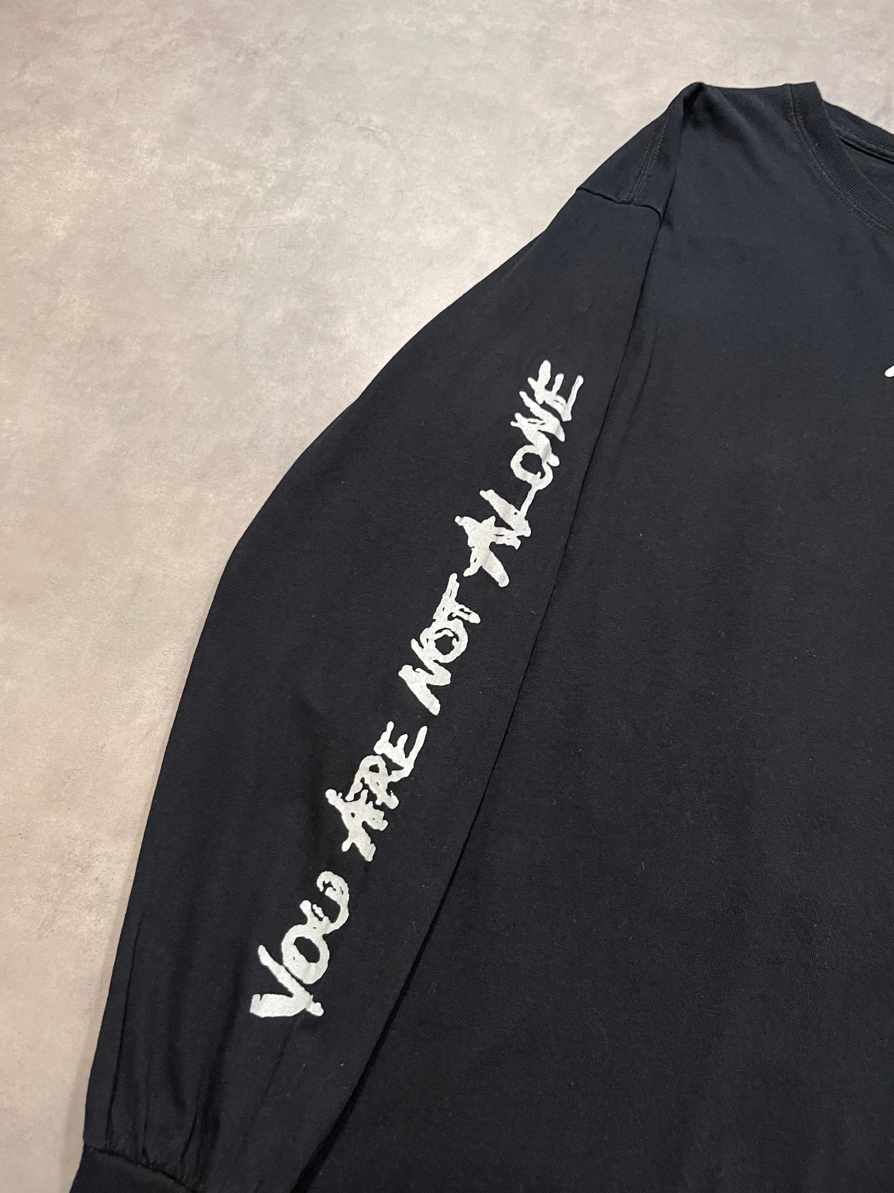 こちらはフロントはXXX、袖プリはYOU ARE NOT ALONEというメッセージ、バックはブルーのフォトプリとセンスを感じる構図で非常にかっこいいです