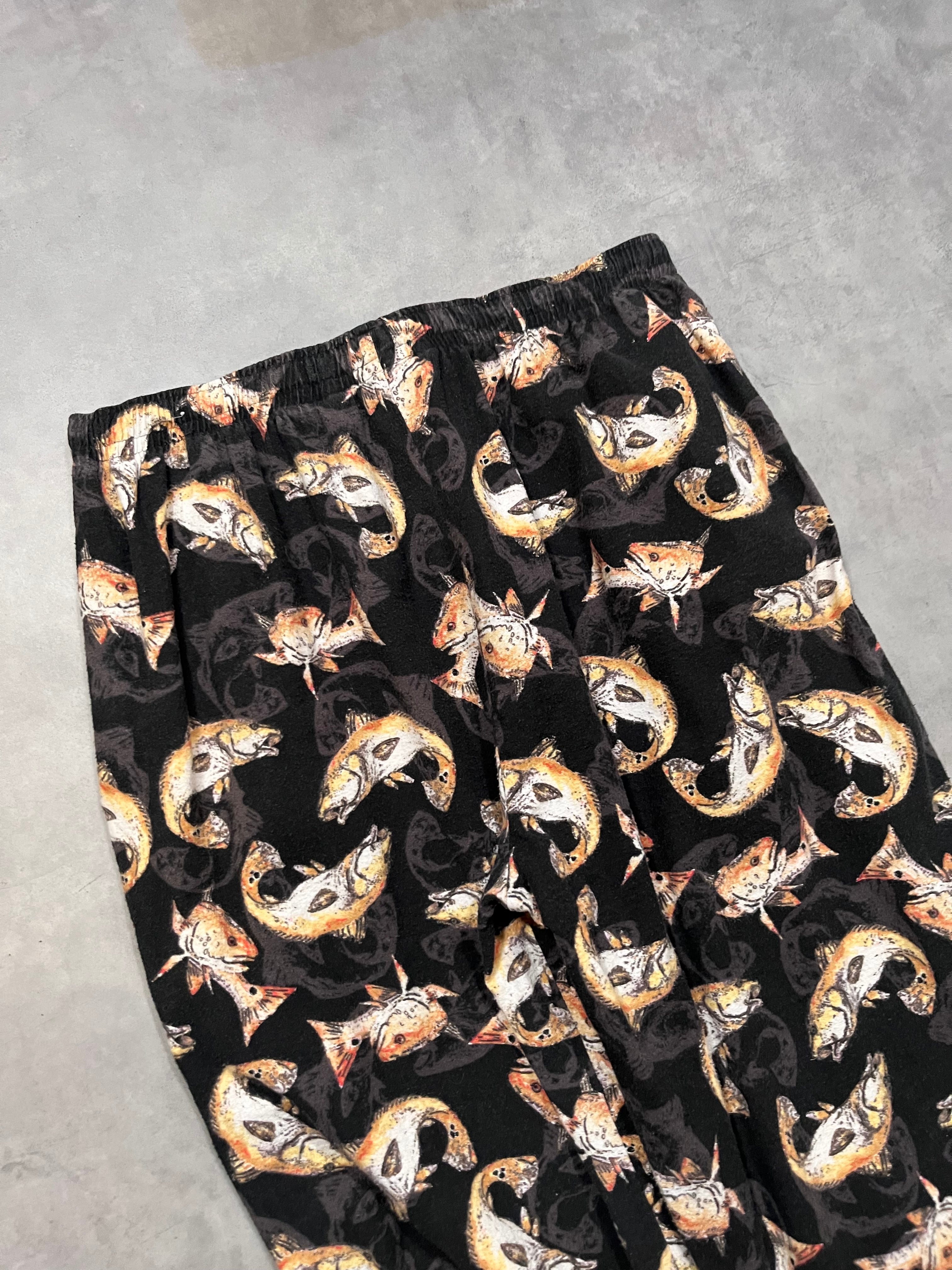 "MAGELLAN" Fish Pattern Flannel Easy Pants