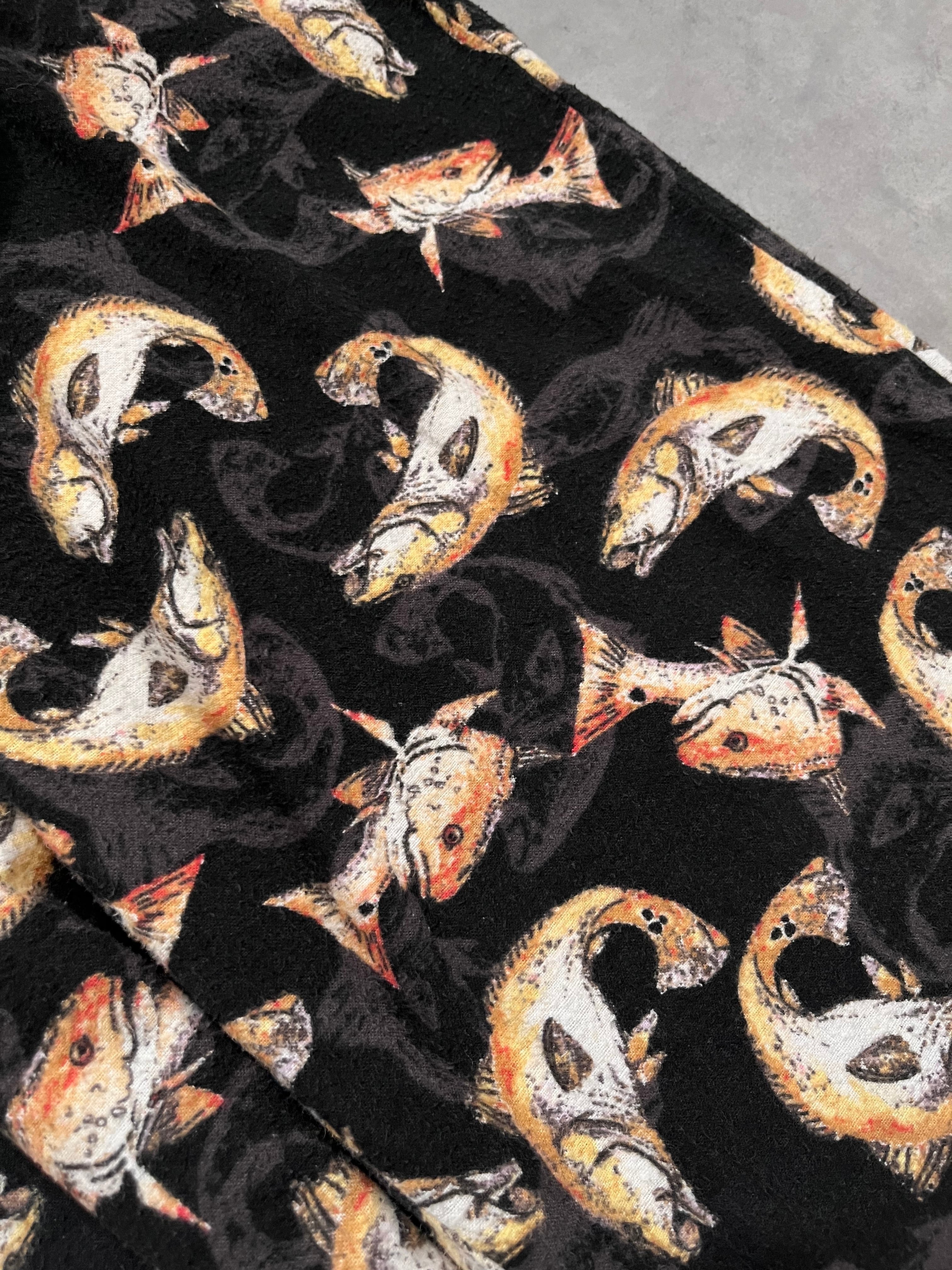 ブラックをベースにした鮭の総柄がとても良いです
