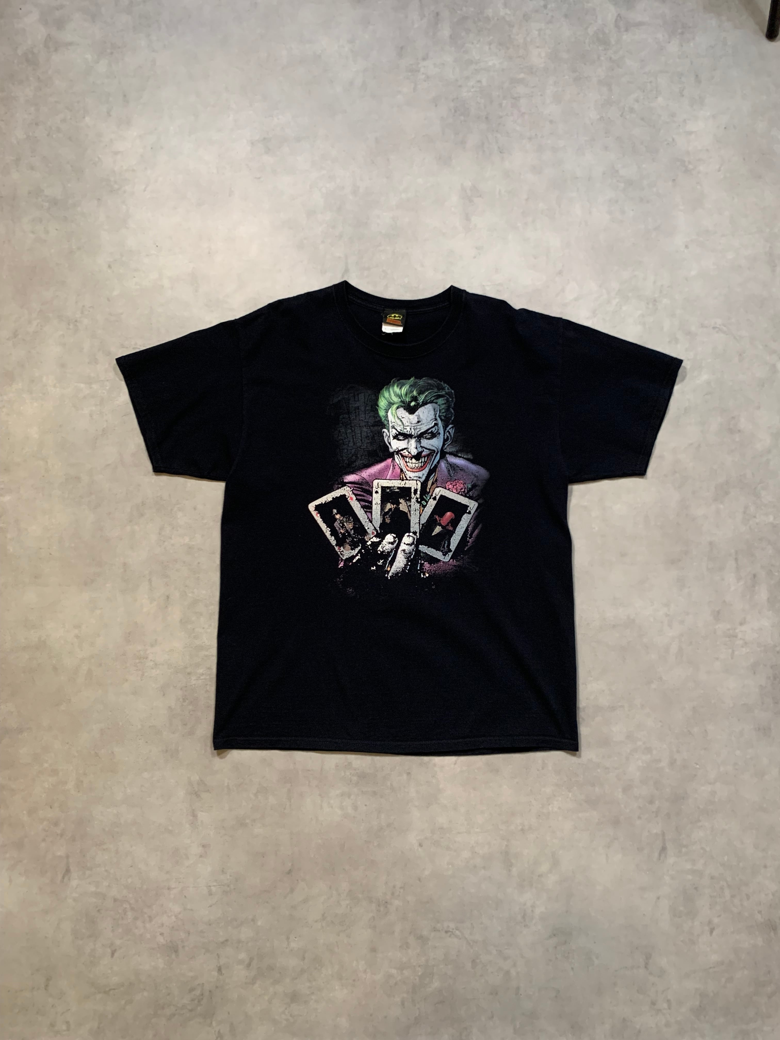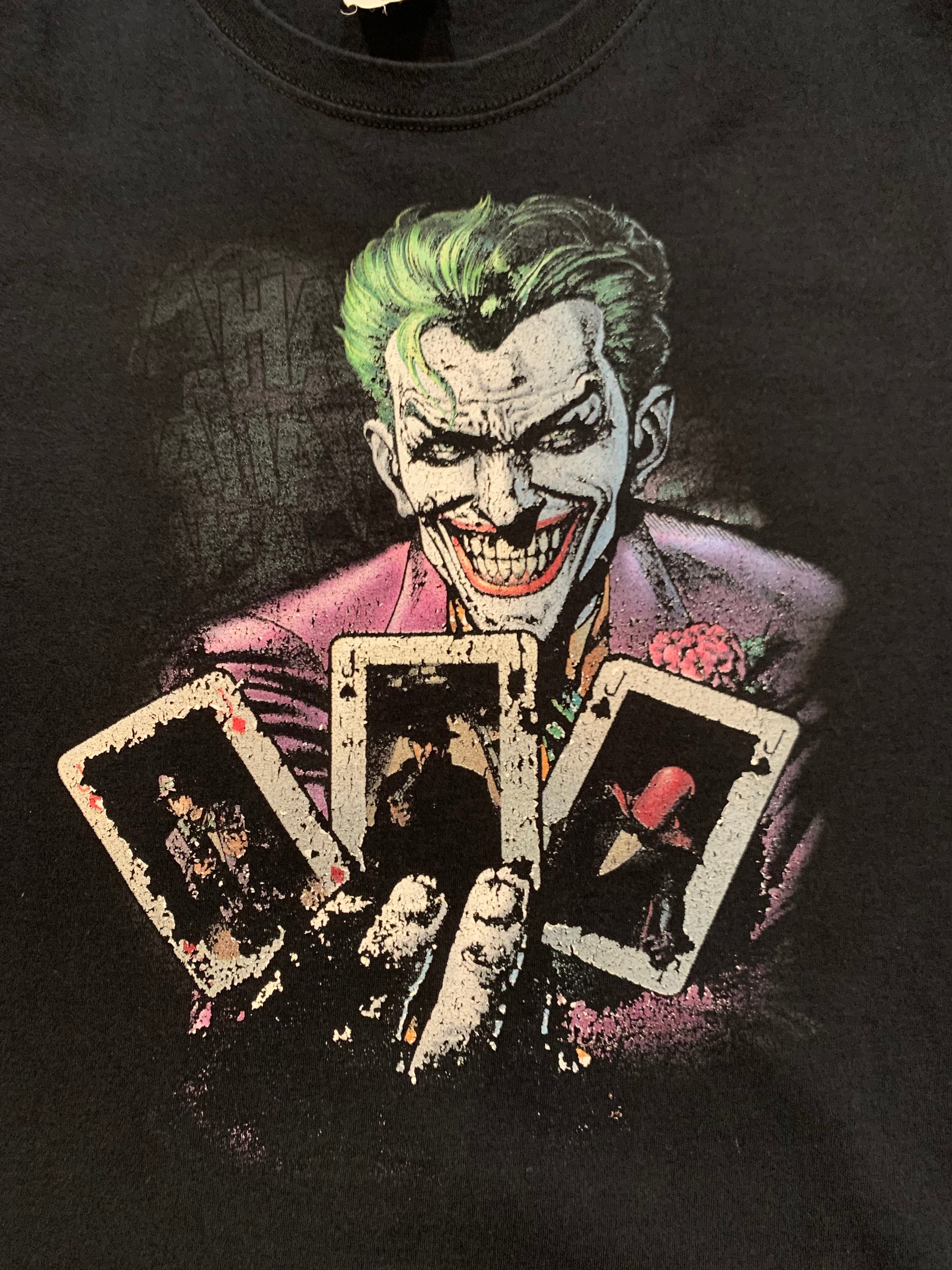 バットマンに登場するキャラクター、ヒールながらも人気の高いジョーカーのプリントTシャツです